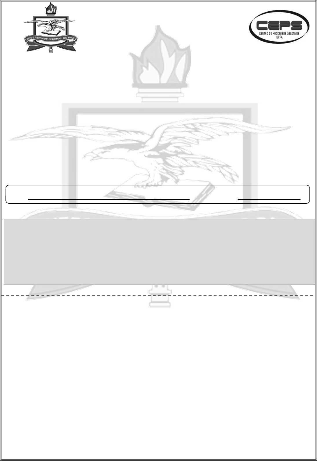 <p>SERVIÇO PÚBLICO FEDERAL</p><p>UNIVERSIDADE FEDERAL DO PARÁ</p><p>CENTRO DE PROCESSOS SELETIVOS</p><p>MOBILIDADE ACADÊMICA 2015</p><p>13 de março de 2016</p><p>BOLETIM DE QUESTÕES</p><p>Nome: Nº de Inscrição:</p><p>ÁREA I – CIÊNCIAS EXATAS E DA TERRA</p><p>Agronomia; Arquitetura e Urbanismo; Ciência da Computação; Ciências Naturais;</p><p>Engenharia Biomédica; Engenharia Civil; Engenharia da Computação; Engenharia de</p><p>Alimentos; Engenharia de Pesca; Engenharia de Telecomunicações; Engenharia</p><p>Elétrica; Engenharia Industrial; Engenharia Florestal; Engenharia Mecânica;</p><p>Engenharia Química; Engenharia Sanitária e Ambiental; Estatística; Física; Geofísica;</p><p>Geologia; Lic. Integ. em Educ. em Ciências, Mat. e Linguagens; Matemática;</p><p>Meteorologia; Oceanografia; Química; Química Industrial e Sistema de Informação.</p><p>LEIA COM MUITA ATENÇÃO AS INSTRUÇÕES SEGUINTES.</p><p>1 Este Boletim de Questões contém 40 questões objetivas, sendo 8 questões de Língua Portuguesa, 8 de Física, 8 de</p><p>Química e 16 de Matemática.</p><p>2 Confira se, além deste boletim, você recebeu o Cartão-Resposta, destinado à marcação das respostas das questões.</p><p>3 Verifique se o seu nome e o número de sua inscrição conferem com os dados contidos no Cartão-Resposta. Em caso de</p><p>divergência, notifique imediatamente o fiscal de sala.</p><p>4 É imprescindível que você marque as respostas das questões de múltipla escolha no Cartão-Resposta com caneta</p><p>esferográfica de tinta preta ou azul, sob pena da impossibilidade de leitura óptica. Na marcação do Cartão-Resposta,</p><p>você não deverá, sob pena de ter a questão anulada, utilizar lápis (grafite) e/ou corretivo de qualquer espécie.</p><p>5 Uma vez entregue pelo fiscal de sala, o Cartão-Resposta é de inteira responsabilidade do candidato e não deverá ser</p><p>dobrado, amassado, rasurado, manchado ou danificado de qualquer modo, sob pena de o candidato arcar com os</p><p>prejuízos advindos da impossibilidade de realização da leitura óptica.</p><p>6 O Cartão-Resposta só será substituído se nele for constatado erro de impressão.</p><p>7 Do Cartão-Resposta não serão computadas as questões cujas alternativas estiverem sem marcação, com mais de uma</p><p>alternativa marcada e/ou com marcação feita com caneta de cor e material diferentes daqueles que constam no item 4.</p><p>8 O tempo disponível para esta prova é de três horas, com início às 14 horas e término às 17 horas, observado o horário</p><p>de Belém/PA.</p><p>9 Os rascunhos e as marcações assinaladas no Boletim de Questões não serão considerados na avaliação.</p><p>10 Ao terminar a prova, você deverá devolver ao fiscal de sala todo o material acima especificado e assinar a lista de presença.</p><p>11 Após às 16h30min você pode solicitar ao fiscal levar este Boletim de Questões.</p><p>EDITAL Nº 5 – COPERPS, DE 16 DE DEZEMBRO DE 2015</p><p>SERVIÇO PÚBLICO FEDERAL</p><p>UNIVERSIDADE FEDERAL DO PARÁ</p><p>CENTRO DE PROCESSOS SELETIVOS</p><p>MOBILIDADE ACADÊMICA – MOBA 2015</p><p>LÍNGUA PORTUGUESA</p><p>Ostra feliz não faz pérola</p><p>1</p><p>2</p><p>3</p><p>4</p><p>5</p><p>6</p><p>7</p><p>8</p><p>9</p><p>10</p><p>11</p><p>12</p><p>13</p><p>14</p><p>15</p><p>16</p><p>17</p><p>18</p><p>19</p><p>20</p><p>21</p><p>22</p><p>23</p><p>24</p><p>25</p><p>26</p><p>27</p><p>28</p><p>29</p><p>30</p><p>31</p><p>Ostras são moluscos, animais sem esqueleto, macias, que representam as delícias dos</p><p>gastrônomos. Podem ser comidas cruas, com pingos de limão, com arroz, paellas, sopas. Sem</p><p>defesas – são animais mansos – , seriam uma presa fácil dos predadores. Para que isso não</p><p>acontecesse, a sua sabedoria as ensinou a fazer casas, conchas duras, dentro das quais vivem. Pois</p><p>havia num fundo de mar uma colônia de ostras, muitas ostras. Eram ostras felizes. Sabia-se que eram</p><p>ostras felizes porque de dentro de suas conchas saía uma delicada melodia, música aquática, como se</p><p>fosse um canto gregoriano, todas cantando a mesma música. Com uma exceção: de uma ostra solitária</p><p>que fazia um solo solitário. Diferente da alegre música aquática, ela cantava um canto muito triste. As</p><p>ostras felizes se riam dela e diziam: “Ela não sai da sua depressão...”. Não era depressão. Era dor. Pois</p><p>um grão de areia havia entrado dentro da sua carne e doía, doía, doía. E ela não tinha jeito de se livrar</p><p>dele, do grão de areia. Mas era possível livrar-se da dor. O seu corpo sabia que, para livrar-se da dor</p><p>que o grão de areia lhe provocava, em virtude de suas asperezas, arestas e pontas, bastava envolvê-lo</p><p>com uma substância lisa, brilhante e redonda. Assim, enquanto cantava seu canto triste, o seu corpo</p><p>fazia o trabalho – por causa da dor que o grão de areia lhe causava. Um dia, passou por ali um pescador</p><p>com o seu barco. Lançou a rede e toda a colônia de ostras, inclusive a sofredora, foi pescada. O</p><p>pescador se alegrou, levou-as para casa e sua mulher fez uma deliciosa sopa de ostras. Deliciando-se</p><p>com as ostras, de repente seus dentes bateram num objeto duro que estava dentro de uma ostra. Ele o</p><p>tomou nos dedos e sorriu de felicidade: era uma pérola, uma linda pérola. Apenas a ostra sofredora</p><p>fizera uma pérola. Ele a tomou e deu-a de presente para a sua esposa.</p><p>Isso é verdade para as ostras. E é verdade para os seres humanos. No seu ensaio sobre O</p><p>nascimento da tragédia grega a partir do espírito da música, Nietzsche observou que os gregos, por</p><p>oposição aos cristãos, levavam a tragédia a sério. Tragédia era tragédia. Não existia para eles, como</p><p>existia para os cristãos, um céu onde a tragédia seria transformada em comédia. Ele se perguntou então</p><p>das razões por que os gregos, sendo dominados por ess