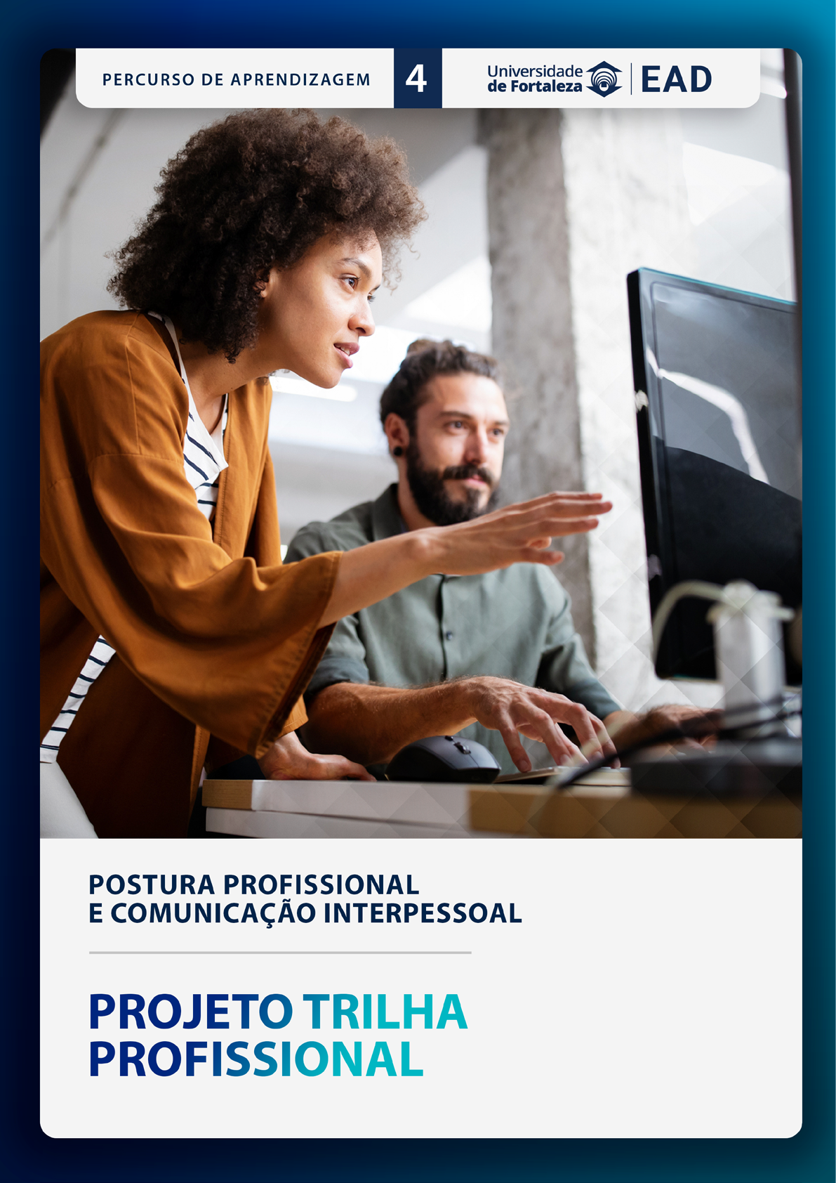 <p>Este trabalho está licenciado com uma Licença Creative Commons</p><p>Atribuição-NãoComercial-SemDerivações 4.0 Internacional.</p><p>A162p Abreu, Cristiane Buhamara.</p><p>Postura profissional e comunicação interpessoal [recurso eletrônico] : projeto trilha profissio-</p><p>nal / Cristiane Buhamara Abreu. -- Fortaleza : Universidade de Fortaleza, [2021].</p><p>15 p. -- ( Percurso de Aprendizagem ; 4)</p><p>1. Carreira profissional. 2. Administração de empresas. I. Título. II. Série.</p><p>CDU 658.3:005.966</p><p>Sumário clicável</p><p>Estruturação de projeto a partir da articulação de</p><p>conceitos, princípios e fundamentos do mundo do</p><p>trabalho1.</p><p>Autoavaliação de desempenho à luz do mindset de</p><p>agilidade2.</p><p>Sumário</p><p>PROJETO TRILHA PROFISSIONAL</p><p>Voltar ao sum</p><p>ário</p><p>4</p><p>OLÁ, ALUNOS E ALUNAS! CHEGAMOS</p><p>AO ÚLTIMO PERCURSO DE APRENDI-</p><p>ZAGEM DO MÓDULO POSTURA PRO-</p><p>FISSIONAL E COMUNICAÇÃO INTER-</p><p>PESSOAL!!!</p><p>Vamos fazer uma retrospectiva do que</p><p>vimos até aqui para entender como e</p><p>qual o papel que o conteúdo do Percurso</p><p>de Aprendizagem IV desempenha</p><p>dentro do Módulo Postura Profissional e</p><p>Comunicação Interpessoal? E também</p><p>poderemos fazer conexões entre os</p><p>assuntos abordados, certo? Então,</p><p>vamos lá!</p><p>Olá</p><p>Iniciamos esse módulo com o Percurso de Aprendizagem I - Desafios contemporâneos</p><p>e o mundo do trabalho, cujos objetivos de aprendizagem eram detalhar os desafios</p><p>contemporâneos, seus impactos no mundo do trabalho e suas implicações sobre a</p><p>construção de carreira e, para alcançar esses objetivos, abordamos sobre a Transformação</p><p>digital: integração on-line/off-line e as Competências para inserção e crescimento</p><p>profissional: adaptabilidade, gestão de mudança e carreira sem fronteiras. Não lembra?!</p><p>Volte à nota de aula do Percurso de Aprendizagem I e dê mais uma lida no conteúdo para</p><p>não avançar na matéria com dúvidas que ficaram para trás.</p><p>Daí, entramos no Percurso de Aprendizagem II - Postura profissional e as relações</p><p>de trabalho, que teve como objetivo de aprendizagem diferenciar os componentes e</p><p>fundamentos da comunicação interpessoal, nos diversos contextos e espaços, com</p><p>postura ética e atuação colaborativa, em equipes de diferentes perfis e com os diversos</p><p>níveis organizacionais. E, claro, para alcançar o objetivo desse Percurso de Aprendizagem ,</p><p>estudamos sobre Marketing pessoal: networking e construção de imagem e Comunicação</p><p>profissional e as relações interpessoais: trabalho em equipe, diversidade, repertório</p><p>cultural e engajamento. Se eu fosse você, voltaria à nota de aula II e revisaria as dicas de</p><p>ouro que demos por lá.</p><p>Passamos para o Percurso de Aprendizagem III - Liderança e desenvolvimento</p><p>profissional, que teve como objetivos de aprendizagem identificar os elementos que</p><p>contribuem para o desenvolvimento das inteligências emocionais e ser proativo para o</p><p>autodesenvolvimento profissional. Vamos combinar?! São tudo de bom esses objetivos,</p><p>não é mesmo? E, para alcançar esses objetivos, trouxemos como pauta, a Inteligência</p><p>Emocional como competência para a liderança, e após conversarmos longamente sobre</p><p>esse assunto, passamos a tratar sobre a Autoliderança e o contexto profissional.</p><p>Voltar ao sum</p><p>ário</p><p>5</p><p>No decorrer do Percurso de Aprendizagem III, colocamos em pauta a autoliderança, na</p><p>qual o profissional está inserido no centro do processo e na condução de sua trajetória</p><p>profissional, fazendo-o compreender que a autoliderança é essencial para acelerar o</p><p>crescimento profissional.</p><p>Agora sim...</p><p>...entendendo que o profissional (você) está no centro de todo o processo de construção</p><p>da sua carreira profissional, podemos iniciar a Percurso de Aprendizagem IV,na qual</p><p>nossa proposta é aplicar os princípios do mundo do trabalho moderno no planejamento</p><p>da carreira profissional por meio da valorização de suas as habilidades interpessoais</p><p>(soft skills) e sua pertinência em cenário de incerteza e adversidade. Convido você a</p><p>assumir o comando da sua carreira profissional para que você possa elaborar a sua trilha</p><p>profissional.</p><p>ENTÃO, VAMOS DESVENDAR AS POSSIBILIDADES NA CONSTRUÇÃO DESSA TRILHA</p><p>PROFISSIONAL?</p><p>O propósito dessa Percurso de Aprendizagem não é entregar a você rotas e dicas para</p><p>a construção da sua trilha profissional, mas fazer você entender que é possível definir</p><p>qual a referência você deseja seguir na condição de profissional, ou seja, qual seu perfil?</p><p>Como você, profissionalmente, pretende construir sua trajetória profissional? Aonde você</p><p>pretende chegar e como fará para conseguir?</p><p>Uma quantidade considerável de questionamentos que você poderá refletir e respondê-</p><p>los durante o processo de estruturação do seu projeto profissional. Qual trilha você quer</p><p>seguir? Pode parecer complicado até o momento de começar a se movimentar.</p><p>Sim. O movimento inspira. Observar seu entorno. As pessoas a sua volta. O fluxo que a</p><p>atividade profissional, na qual você se identifica, está tomando e, para que isso possa</p><p>acontecer, precisaremos articular conceitos, princípios e fundamentos do mundo do</p><p>trabalho, é isso que faremos a partir do primeiro Circuito de Estudo do Percurso de</p><p>Aprendizagem IV.</p><p>Voltar ao sum</p><p>ário</p><p>6</p><p>Estruturação de projeto a partir da articulação de</p><p>conceitos, princípios e fundamentos do mundo do</p><p>trabalho1.</p><p>Para que você possa dar início à construção da sua trilha e à estruturação do seu</p><p>projeto profissional, é importante que busqu