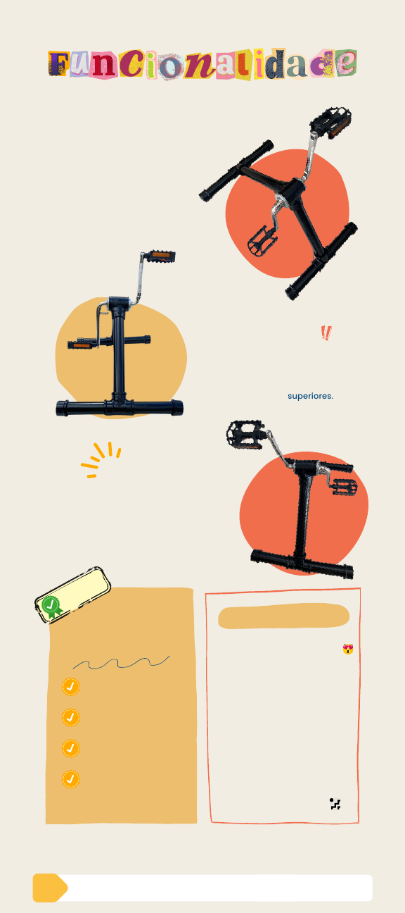 <p>Já pensou em se</p><p>exercitar enquanto</p><p>está no home office?</p><p>Basta colocar o pedalinho</p><p>embaixo de sua escrivaninha e</p><p>se movimentar durante as</p><p>pausas ou enquanto trabalha.</p><p>Bidirecional e</p><p>Bifuncional</p><p>Movimenta-se tanto para</p><p>frente quanto para trás, além</p><p>de trabalhar os membros</p><p>inferiores e superiores.</p><p>PEDALINHO DA</p><p>Estimular a circulação</p><p>sanguínea</p><p>Melhorar a capacidade</p><p>cardiorrespiratória</p><p>Melhorar a amplitude de</p><p>movimento</p><p>Treinar Coordenação</p><p>Motora</p><p>Você sabia?</p><p>PARA MAIORES INFORMAÇÕES VISITE O NOSSO STAND NA EXPOSIÇÃO DA</p><p>SEMANA UBÍQUA UNINASSAU.</p><p>Com o nosso</p><p>recurso você</p><p>consegue:</p><p>ESTE É UM RECURSO VERSÁTIL, PRÁTICO, SEGURO, LEVE E</p><p>COMPACTO. É FÁCIL DE TRANSPORTAR E OCUPA POUCO ESPAÇO.</p><p>DICA!</p><p>Para aumentar a resistência,</p><p>pode-se utilizar tornozeleiras</p><p>de peso. Isso aumentará o</p><p>trabalho muscular,</p><p>favorecendo o fortalecimento</p><p>dos músculos.</p><p>O pedalinho da funcionalidade</p><p>é acessível todos os públicos!</p><p>Atendemos do profissional</p><p>procurando tecnologias para</p><p>melhorar seu atendimento e se</p><p>diferenciar dos demais até ao</p><p>indivíduo que reconhece seu</p><p>protagonismo na busca pela</p><p>qualidade de vida.</p><p>Aqui não há limites para</p><p>imaginação! Use a criatividade</p><p>e insira o recurso durante as</p><p>fases da vida. Quanto mais</p><p>movimento, melhor!!!</p><p>QUALIDADE</p><p>GARANTIDA!</p>