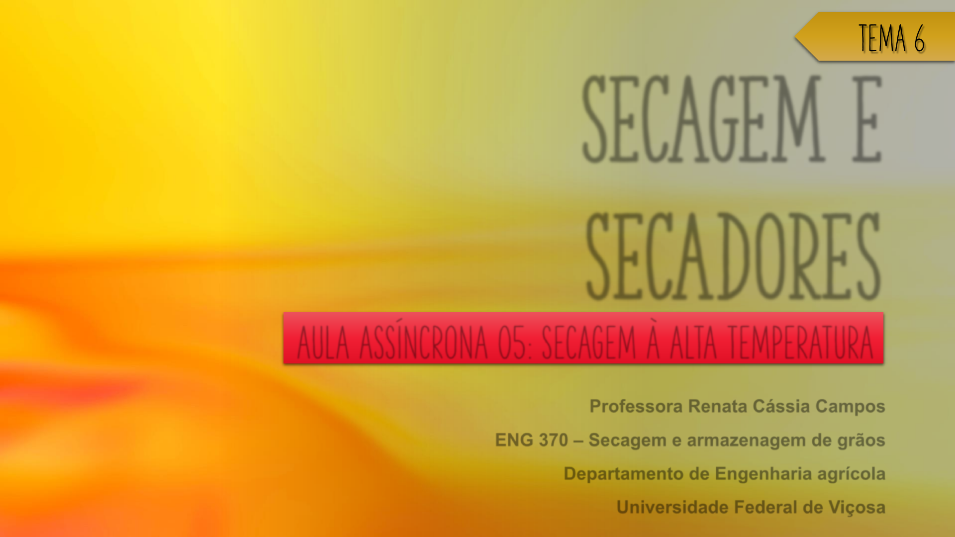 <p>Professora Renata Cássia Campos</p><p>ENG 370 – Secagem e armazenagem de grãos</p><p>Departamento de Engenharia agrícola</p><p>Universidade Federal de Viçosa</p><p>TEMA 6</p><p>Secagem e</p><p>secadores</p><p>AULA ASSÍNCRONA 05: SECAGEM À ALTA TEMPERATURA</p><p>SECAGEM À ALTA TEMPERATURA</p><p>CARACTERÍSTICAS</p><p>▪ Utiliza de ar aquecido a mais de 10 °C acima da temperatura ambiente;</p><p>▪ Utiliza de secadores para o processo.</p><p>❑ QUANTO AOS</p><p>FLUXOS:</p><p>• Camada fixa</p><p>• Cruzados</p><p>• Concorrentes</p><p>• Contra-correntes</p><p>• Mistos</p><p>❑ QUANTO A</p><p>OPERAÇÃO</p><p>• Intermitentes</p><p>• Contínuos</p><p>C</p><p>la</p><p>s</p><p>s</p><p>if</p><p>ic</p><p>a</p><p>ç</p><p>õ</p><p>e</p><p>s</p><p>SECAGEM ARTIFICIAL</p><p>Classificação dos secadores</p><p>• Os secadores agrícolas encontrados no mercado são dos mais variados tipos e sistemas</p><p>de funcionamento. São projetados e construídos para atenderem necessidades das mais</p><p>variadas como pequenos, médios e grandes produtores, para os mais variados tipos de</p><p>produtos.</p><p>• Para atender as mais variadas necessidades, existem secadores de inúmeras formas</p><p>construtivas e operacionais, e podem ser classificados quanto as suas principais</p><p>características, sob vários aspectos:</p><p>o Tipo de fabricação;</p><p>o Sistema de carga;</p><p>o Ventilação;</p><p>o Fluxo de ar;</p><p>o Torre de secagem;</p><p>o Sistema de descarga;</p><p>o Tipo de combustível;</p><p>o Ar da fornalha;</p><p>o Grau de automatização</p><p>SECAGEM ARTIFICIAL</p><p>Classificação dos secadores – Estrutura</p><p>▪ TIPO DE FABRICAÇÃO:</p><p>o Móveis</p><p>o Fixos</p><p>o Silo secador</p><p>o Torre</p><p>▪ SISTEMA DE CARGA:</p><p>o Intermitentes</p><p>o Contínuos</p><p>▪ FLUXO DE AR</p><p>o Concorrente</p><p>o Contracorrente</p><p>o Cruzado</p><p>o Misto</p><p>▪ TORRE DE SECAGEM</p><p>o Calhas paralelas</p><p>o Calhas cruzadas</p><p>o De colunas</p><p>o Câmara de descanso</p><p>▪ SISTEMA DE DESCARGA</p><p>o Descarga de bandeja mecânica</p><p>o Descarga pneumática</p><p>o Descarga de eclusas rotativas</p><p>▪ COMBUSTÍVEL</p><p>o Líquido</p><p>o Sólido</p><p>o Gasoso</p><p>▪ AR DE FORNALHA</p><p>o Direto</p><p>o Indireto</p><p>▪ GRAU DE AUTOMATIZAÇÃO</p><p>o Secagem de controle manual</p><p>o Secagem automatizada</p><p>▪ VENTILAÇÃO:</p><p>o Insuflação de ar</p><p>o Aspiração de ar</p><p>SECAGEM ARTIFICIAL</p><p>Classificação dos secadores – fluxo de ar e grãos</p><p>Legenda</p><p>AS - Fluxo de ar de secagem</p><p>G - Fluxo de grãos</p><p>AE - Fluxo de ar de exaustão</p><p>AS</p><p>G</p><p>AE</p><p>AS AE</p><p>G</p><p>AS</p><p>G</p><p>AE</p><p>Fluxos cruzados Fluxos concorrentes Fluxos contracorrentes</p><p>AS</p><p>AE</p><p>G</p><p>Leito fixo Fluxos mistos</p><p>G</p><p>AS</p><p>AE</p><p>AE</p><p>SECADORES</p><p>SECADOR DE LEITO FIXO</p><p>SECADORES</p><p>SECADOR DE LEITO FIXO</p><p>São construídos de quatro elementos principais:</p><p>▪ Sistema de aquecimento de ar;</p><p>▪ Ventilador;</p><p>▪ Câmara de distribuição de ar ou “plenum”</p><p>▪ Câmara de secagem</p><p>• Para a maioria dos casos, são projetados para secagem de um lote por dia;</p><p>• Após a secagem o produto é resfriado no próprio secador, interrompendo-se o fornecimento</p><p>de energia dos sistema de aquecimento e deixando o ventilador ligado.</p><p>• Utilizados para secagem de milho em espiga, café, raspa de mandioca, feijão em rama,</p><p>arroz, entre outros.</p><p>• Variáveis do sistema:</p><p>▪ Espessura da camada: recomenda-se de 0,4 a 0,6m;</p><p>▪ Teor de água inicial (ideal para produtos com alto teor de água);</p><p>▪ Fluxo de ar: varia de 0,12 a 0,25 m³ / s.m²;</p><p>▪ Temperatura do ar: em torno de 40 a 55 °C; e</p><p>▪ Tempo de secagem</p><p>SECADORES</p><p>SECADOR DE LEITO FIXO - características</p><p>SECADORES</p><p>SECADOR DE LEITO FIXO - características</p><p>SECADORES</p><p>SECADOR DE LEITO FIXO – configurações</p><p>SECADORES</p><p>SECADOR DE LEITO FIXO – configurações</p><p>SECADORES</p><p>SECADOR DE LEITO FIXO – configurações</p><p>ar de</p><p>exaustão</p><p>Aquecedor</p><p>ar de</p><p>secagem</p><p>ar de</p><p>exaustão</p><p>Cabo</p><p>Válvula</p><p>de fluxo</p><p>Modelo empregado principalmente em Unidades de</p><p>beneficiamento de Sementes (UBS)</p><p>SECADORES</p><p>SECADOR DE LEITO FIXO com sistema de revolvimento</p><p>configurações</p><p>Silo secador</p><p>Pré-limpeza</p><p>Queimador</p><p>GLP</p><p>Silo armazenador</p><p>SECADORES</p><p>SECADOR DE LEITO FIXO com sistema de revolvimento</p><p>configurações</p><p>SECADORES</p><p>SECADOR DE LEITO FIXO – secagem de milho em espiga e sementes</p><p>configurações</p><p>CS1 - câmara de secagem 1</p><p>CS2 - câmara de secagem 2</p><p>DS - duto superior</p><p>DI - duto inferior</p><p>- ar de secagem</p><p>- ar de exaustão</p><p>- ar reaproveitado</p><p>1 - descarga de produto</p><p>2 - registro de ar aberto</p><p>3 - registro de ar fechado</p><p>4 - carga de produto</p><p>CS2CS1</p><p>DI</p><p>DI</p><p>1</p><p>2 3</p><p>4</p><p>SECADORES</p><p>SECADOR DE FLUXO CRUZADO</p><p>Nos secadores de fluxos cruzados, o ar atravessa a massa de</p><p>grãos perpendicularmente (90°) à direção de movimento dos grãos.</p><p>SECADORES</p><p>SECADOR DE FLUXO CRUZADO</p><p>Legenda</p><p>AS - Fluxo de ar de secagem</p><p>G - Fluxo de grãos</p><p>AE - Fluxo de ar de exaustão</p><p>AS</p><p>G</p><p>AE</p><p>AS AE</p><p>G</p><p>AS</p><p>G</p><p>AE</p><p>Fluxos cruzados Fluxos concorrentes Fluxos contracorrentes</p><p>AS</p><p>AE</p><p>G</p><p>Leito fixo Fluxos mistos</p><p>G</p><p>AS</p><p>AE</p><p>AE</p><p>• Nesse tipo de secador a camada de grãos geralmente está entre 0,15 m e 0,45</p><p>m;</p><p>• As temperaturas de secagem adotadas nesse tipo de secador variam desde 60</p><p>°C até 110 °C, dependendo do tip