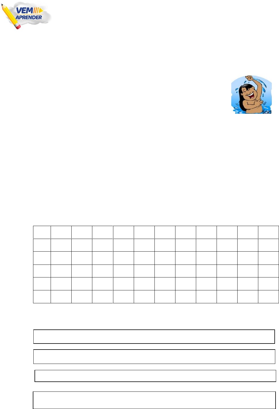 <p>ATIVIDADES HISTÓRIA - UNIDADE 3 - 4º ANO</p><p>NOME:_______________________________________ DATA:____/___/____.</p><p>1)Em nossa aula sobre os primeiros habitantes do Brasil, aprendemos que alguns costumes</p><p>indígenas fazem parte da nossa cultura. Escreva três costumes indígenas que herdamos dos</p><p>povos indígenas.</p><p>______________________________________________________</p><p>______________________________________________________</p><p>______________________________________________________</p><p>2) Encontre no caça-palavras as palavras que completarão as frases.</p><p>a) Os____________________ ao chegarem ao Brasil não respeitaram a terra nem a cultura</p><p>indígena.</p><p>b) A religião indígena tem ligação com seres da _______________________.</p><p>c) O ________________cuida das tomadas de decisões, da estrutura e da segurança da aldeia.</p><p>d) Em nossa região temos registros da passagem dos indígenas ___________________.</p><p>e) As construções de casas__________________, protegia os Kaingang da _______________e</p><p>do ________________.</p><p>C H U V A R T F R I O C</p><p>I V F L N A T U R E Z A</p><p>P O R T U G U E S E S C</p><p>S U B T E R R A N E A S</p><p>U C O C A C I Q U E C U</p><p>K A I N G A N G I T N E</p><p>3) Leia as frases abaixo e pinte os retângulos que possuem informações corretas:</p><p>Os primeiros habitantes do Brasil foram os índios.</p><p>Os portugueses respeitaram os indígenas, respeitaram sua cultura e suas terras.</p><p>É correto dizer que os portugueses “Descobriram o Brasil”.</p><p>Na aldeia as principais lideranças são o Cacique e o Pajé.</p>