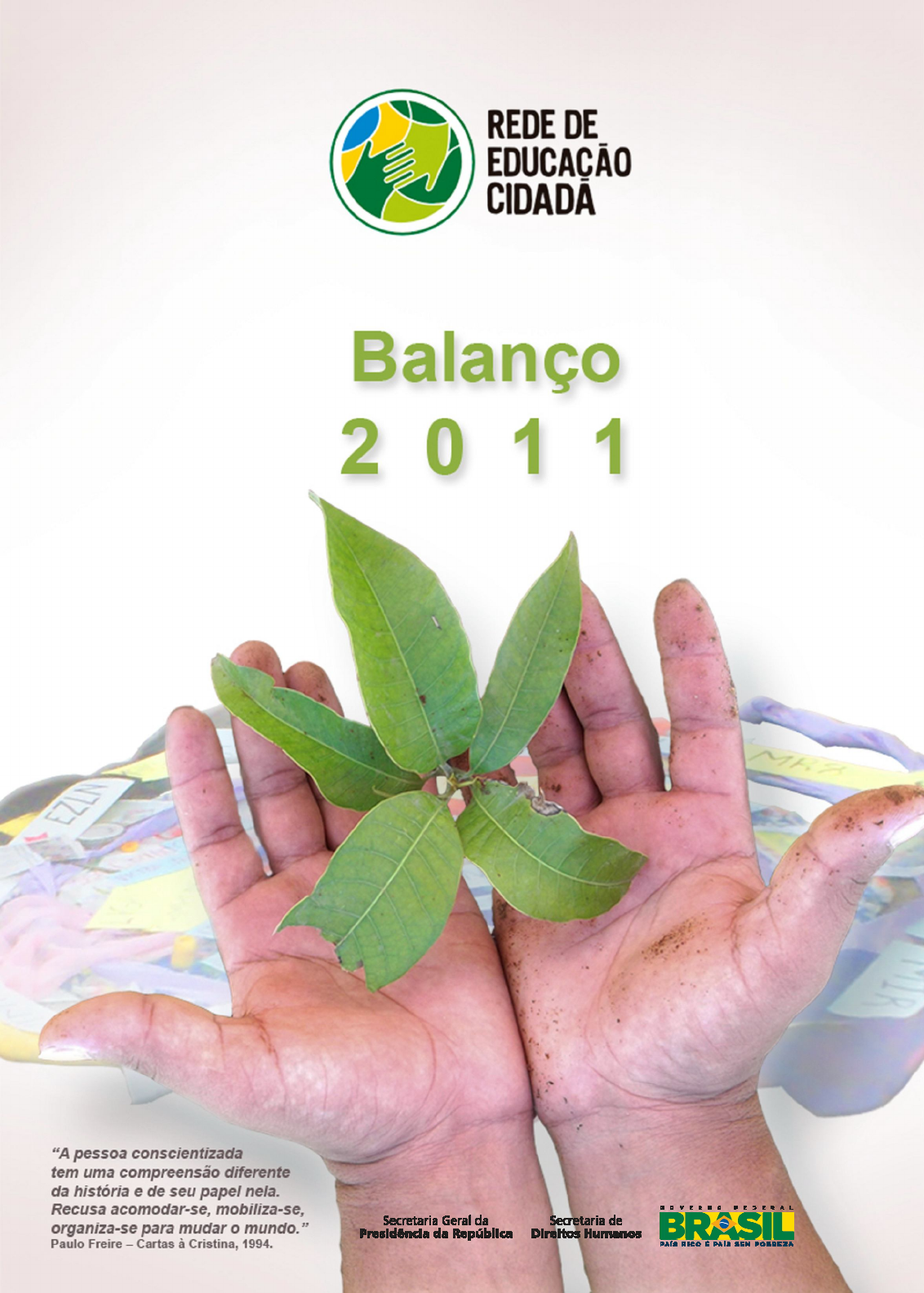 <p>1</p><p>2</p><p>SSUUMMÁÁRRIIOO</p><p>1 - INTRODUÇÃO......................................................................................................3</p><p>2 - O QUE É A REDE DE EDUCAÇÃO CIDADÃ – RECID.....................................3</p><p>3 - ORIGEM E CONTEXTO ATUAL ...........................................................................4</p><p>4 - PROCESSO PEDAGÓGICO E ORGANIZATIVO .................................................6</p><p>5 - ORGANICIDADE: FORMAÇÃO DE BASE</p><p>PARA CIDADANIA E DIREITOS HUMANOS: ......................................................6</p><p>6 - COMUNICAÇÃO: ..................................................................................................8</p><p>7 - GESTÃO COMPARTILHADA: ..............................................................................9</p><p>8 - ATIVIDADES DESENVOLVIDAS PELA RECID EM 2011: ...............................9</p><p>9 - TEMAS TRABALHADOS NOS ENCONTROS E OFICINAS DA RECID EM 2011....16</p><p>10 - AVANÇOS PROMOVIDOS PELAS AÇÕES DA RECID EM 2011....................18</p><p>REFERÊNCIAS.........................................................................................................20</p><p>ANEXO: QUADRO DAS ORGANIZAÇÕES</p><p>E MOVIMENTOS ARTICULADOS NOS ESTADOS.................................................21</p><p>3</p><p>11 -- IINNTTRROODDUUÇÇÃÃOO</p><p>Este documento apresenta um balanço das atividades desenvolvidas pela</p><p>Rede de Educação Cidadã (Recid), em todo Brasil, durante o ano de 2011. No</p><p>mesmo destacamos as ações desenvolvidas, no âmbito da abrangência local,</p><p>estadual, regional e nacional, bem como citamos as principais temáticas trabalhadas</p><p>nestas atividades, seus avanços e abrangência.</p><p>Para efeitos de tornar a comunicação mais compreensível possível, antes de</p><p>apresentar o balanço das atividades 2011, segue uma breve contextualização da</p><p>Recid, na qual destaca-se sua origem, fundamentação teórica e organização política</p><p>e pedagógica. Assim, o mesmo está organizado em três pontos que interagem entre</p><p>si, a) o que é a Recid; b) atividades desenvolvidas em 2011; e c) resultados e</p><p>avanços promovidos.</p><p>22 -- OO QQUUEE ÉÉ AA RREEDDEE DDEE EEDDUUCCAAÇÇÃÃOO CC IIDDAADDÃÃ –– RREECCIIDD</p><p>É uma articulação de diversos atores sociais, entidades, movimentos populares e</p><p>Governo Federal que assumem solidariamente a missão de realizar um processo</p><p>sistemático de sensibilização, mobilização e educação popular, através do diálogo e da</p><p>participação ativa na promoção dos direitos humanos e superação da miséria, afirmando e</p><p>propondo um projeto popular, democrático e soberano de nação.</p><p>A Recid constitui-se uma experiência nova na história da educação popular</p><p>brasileira, na medida em que o Governo Federal constitui uma equipe de</p><p>assessores/as, conhecida como Talher Nacional que, democrática e colegiadamente</p><p>coordena e acompanha, com a sociedade civil, a realização das ações educativas</p><p>desenvolvidas no âmbito da Rede em todo Brasil, primando seu foco na promoção e</p><p>vivência dos direitos humanos e do exercício da cidadania. Por ser uma Rede com a</p><p>singularidade de ter participação da sociedade e do Governo Federal, convencionou-</p><p>se dizer que a Recid é uma rede “pé dentro, pé fora”.</p><p>No âmbito desta nomenclatura – pé dentro, pé fora – o ano de 2011, para a</p><p>Recid, foi um cenário novo de muitos desafios, ajustes, avaliação e aprendizados.</p><p>Na dimensão do “pé dentro” foi seu primeiro ano no Governo Dilma, o que implicou</p><p>uma série de mudanças e ajustes na configuração do papel da equipe Talher.</p><p>Na dimensão do “pé fora”, paralelo ao exercício de adaptação ativa ao novo</p><p>governo, foi um ano marcado pelo encerramento do primeiro biênio do Plano</p><p>Nacional de Formação, com a</p><p>realização da IV Ciranda de Educação</p><p>Popular e a vivência de um amplo</p><p>processo de reavaliação da caminhada</p><p>da Recid, em vista do fortalecimento</p><p>dos processos de formação popular</p><p>que desenvolve, sua sintonia e diálogo</p><p>com os desafios e perspectivas do</p><p>cenário brasileiro e global. Para</p><p>visualizar e compreender estas</p><p>mudanças e atual contexto faz-se</p><p>necessária uma breve memória da</p><p>origem e história da Recid.</p><p>4</p><p>33 -- OORRIIGGEEMM EE CCOONNTTEEXXTTOO AATTUUAALL</p><p>A Recid tem sua origem no inicio do primeiro governo Lula (2003-2006), com</p><p>o lançamento do programa Fome Zero. Frei Betto, chamado para coordenar este o</p><p>processo de mobilização social em torno a esse programa, anunciou: “é preciso</p><p>matar a fome de pão e a sede de beleza”. Para animar e coordenar o trabalho</p><p>formou uma equipe de educadores/as, denominada Talher Nacional que, mais tarde,</p><p>foi vinculada ao Gabinete Pessoal da Presidência da República. Esta equipe tinha</p><p>como função coordenar os processos de educação popular em todo Brasil, em vista</p><p>de alimentar a fome de beleza, dignidade e cidadania, especialmente, junto às</p><p>famílias atendidas pelo programa Fome Zero.</p><p>O desenvolvimento deste trabalho saltou das famílias atendidas pelo</p><p>programa “Fome Zero” e foi agregando a parceria de diversos atores sociais,</p><p>tais como: movimentos, pastorais sociais, igrejas, ong’s, sindicatos, categorias</p><p>excluídas e/ou marginalizadas e organizações populares diversas que tinham e</p><p>tem em comum a luta pela conquista e efetivação de direitos, políticas</p><p>públicas, democratização do Estado, entre outras categorias de lutas e</p><p>exercício da cidadania. É desta iniciativa e trabalho que nasce e vem sendo</p><p>construída a Rede de Educação Cidadã.</p><p>A Recid está presente nos 2
