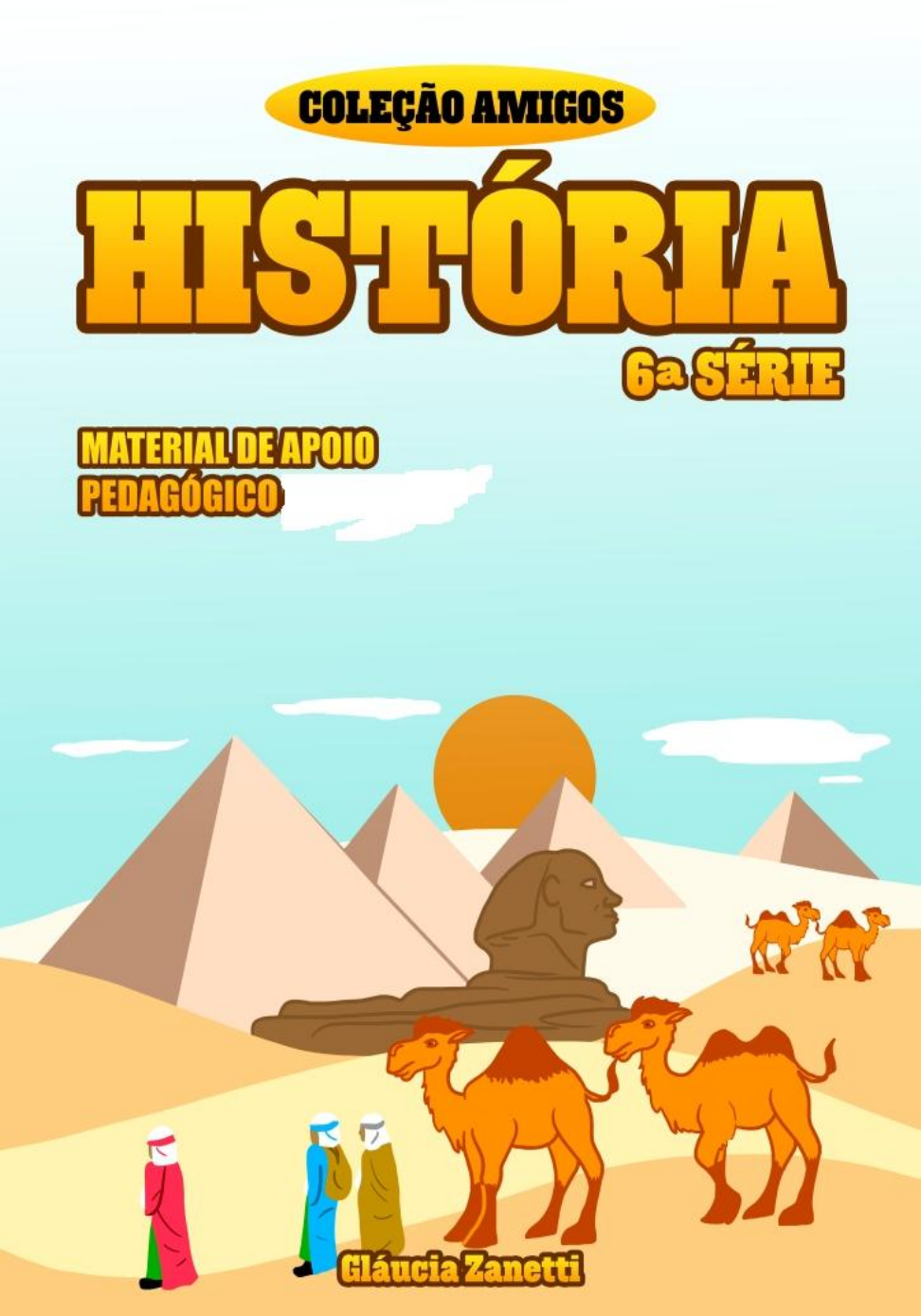 <p>1</p><p>2</p><p>Apresentação</p><p>O presente material tem o objetivo de servir como</p><p>apoio pedagógico no ensino da História. É um livro de</p><p>atividades direcionadas para alunos da 6ª série do Ensino</p><p>Fundamental. São atividades diferenciadas. Atividades de</p><p>desenhos, labirintos, caça-palavras, etc.</p><p>Tem o objetivo de ensinar de uma forma mais lúdica e</p><p>prazerosa. Os assuntos tem como base os conteúdos da</p><p>BNCC.</p><p>Faz parte da Coleção Amigos. A coleção compoe os</p><p>livros das 7ª, 8ª e 9ª Séries do Ensino Fundamental.</p><p>Autora: Gláucia Zanetti</p><p>Ilustradores: Kennedy Belo Pamplona e Michael</p><p>Santana Araújo.</p><p>3</p><p>ÍNDICE</p><p>‘ Capa ............................................................................................. 01</p><p>Apresentação .............................................................................. 02</p><p>Índice ........................................................................................... 03</p><p>Periodização da História ............................................................ 04</p><p>Fontes Históricas ........................................................................ 05 a 12</p><p>Pré-História ................................................................................. 13 a 17</p><p>História da Mesopotâmia ........................................................... 18 a 21</p><p>História do Egito ......................................................................... 22 a 37</p><p>História da Grécia ....................................................................... 38 a 51</p><p>História de Roma......................................................................... 52 a 63</p><p>História Fenícia............................................................................. 64 a 68</p><p>História da Pérsia ........................................................................ 69 a 70</p><p>História dos Hebreus ................................................................... 71 a 74</p><p>O mundo bizantino ....................................................................... 75 a 78</p><p>4</p><p>Periodização da História</p><p>Temos neste mapa mental os períodos históricos estudados na História. Na</p><p>sexta série vamos estudar a Pré-História e a Idade Antiga.</p><p>No mapa mental marque com um x o local onde mostra os assuntos</p><p>que serão estudados na série a qual você estuda.</p><p>5</p><p>OBJETO DO CONHECIMENTO: FONTES HISTÓRICAS</p><p>A História estuda as mudanças ocorridas ao longo do tempo na sociedade. A</p><p>História é uma ciência que estuda a vida do homem através do tempo. Ela investiga o</p><p>que os homens fizeram, pensaram e sentiram enquanto seres sociais. Nesse sentido,</p><p>o conhecimento histórico ajuda na compreensão do homem enquanto ser que constrói</p><p>seu tempo. A História é construída e escrita através da análise e investigação de</p><p>fontes Históricas.</p><p>Observe os desenhos abaixo. Depois circule os objetos</p><p>considerados antigos e que por este motivo são considerados fontes</p><p>históricas:</p><p>6</p><p>FONTES HISTÓRICAS</p><p>7</p><p>Junte as silabas e forme as palavras.</p><p>HIS+ TO+RIA+ DOR:________________________________</p><p>HIS+TÓ+ RIA:______________________________________</p><p>AR+QUE+Ó+LO+GO:________________________________</p><p>PES+QUI+SAS:_____________________________________</p><p>ES+TU+DO:________________________________________</p><p>TRA+BA+LHO:______________________________________</p><p>8</p><p>9</p><p>Objeto do Conhecimento: O tempo histórico</p><p>Nós podemos contar ou medir o tempo de várias formas. Estas formas</p><p>variam de acordo com cada povo e época.</p><p>Circule os instrumentos que medem o tempo:</p><p>10</p><p>Nas imagens abaixo vemos diversos telefones que existiram ao</p><p>longo do tempo. Ligue os telefones iguais.</p><p>0 0</p><p>0 0</p><p>0 0</p><p>0 0</p><p>11</p><p>Nas imagens abaixo temos a foto de diversas TVs que existiram</p><p>ao longo do tempo. Faça um circulo nas TVs que você conhece.</p><p>12</p><p>Nas imagens abaixo temos exemplos de diversos</p><p>carros que existiram ao longo do tempo.</p><p>Abaixo faça um desenho de algum carro que você</p><p>gosta.</p><p>13</p><p>Objeto do Conhecimento: A Pré-história</p><p>Considera-se a Pré-história como o período que compreende a atividade</p><p>humana desde suas origens até o surgimento da escrita.</p><p>O aluno deverá observar as fíguras abaixo e</p><p>posteriormente dizer oralmente o que os primatas estão</p><p>realizando nas imagens:</p><p>14</p><p>Acima temos informações sobre a pré-história, na qual é afirmado que</p><p>podemos representar a evolução da espécie humana através de algo que</p><p>lembra uma árvore. Lembramos também que podemos representar os nossos</p><p>antepassados através da nossa árvore geneálogica.</p><p>Vamos fazer a nossa árvore genealógica. Preencha com os nomes</p><p>de seus familiares</p><p>________________ ____________________</p><p>Nome da avó paterna Nome da avó materna</p><p>_________________ _____________________</p><p>Nome do avô paterno Nome do avô materno</p><p>_________________ ____________________</p><p>Nome do pai Nome da mãe</p><p>_____________________</p><p>Seu nome</p><p>15</p><p>Abaixo temos os diferentes tipos de explicações sobre a</p><p>origem do ser humano.</p><p>Copie as palavras ao lado:</p><p>CRIACIONISMO:________________________________</p><p>DEUS:________________________________________</p><p>EVOLUCIONISMO:______________________________</p><p>ADÃO:________________________________________</p><p>EVA:_________________________________________</p><p>DARWINISMO:_________________________________</p><p>16</p><p>Pinte o desenho abaixo que representa um hominídeo:</p><p>17</p><p>Objeto do Conhecimento: Arte Rupestre</p><p>A arte rupestre significa gravação