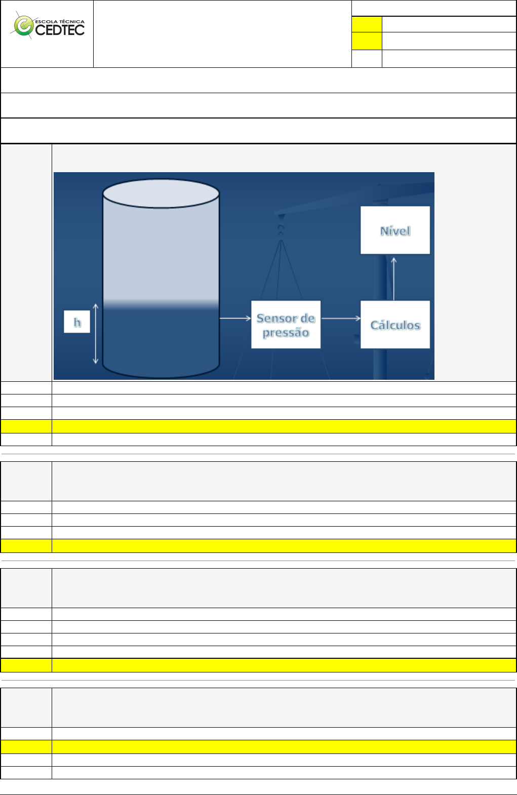 <p>Pincel Atômico - 12/10/2024 12:05:04 1/5</p><p>MARCELA</p><p>NASCIMENTO SOUTO</p><p>Avaliação Presencial (EAD)</p><p>Atividade finalizada em 08/09/2024 19:19:03 (2502228 / 1)</p><p>LEGENDA</p><p>Resposta correta na questão</p><p># Resposta correta - Questão Anulada</p><p>X Resposta selecionada pelo Aluno</p><p>Disciplina:</p><p>AUTOMAÇÃO ELÉTRICA [1029164] - Avaliação com 20 questões, com o peso total de 51,00 pontos [capítulos - Todos]</p><p>Turma:</p><p>Curso Técnico: Eletrotécnica - Grupo: EAD - 02/24 - EAD ELE [113127]</p><p>Aluno(a):</p><p>91577545 - MARCELA NASCIMENTO SOUTO - Respondeu 16 questões corretas, obtendo um total de 40,80 pontos como nota</p><p>[350019_2187</p><p>8]</p><p>Questão</p><p>001</p><p>Para medir o nível de um tanque, utilizou-se um sensor de pressão para medir o valor da pressão da coluna de liquido existente no tanque.</p><p>Através da pressão e utilizando as devidas relações matemáticas determinou-se o nível do tanque.</p><p>Podemos afirmar que é método utilizado é:</p><p>Medição direta de vazão</p><p>Medição direta de nível</p><p>Medição de pressão indireta</p><p>X Medição indireta de nível</p><p>Medição indireta de vazão</p><p>[350019_1353</p><p>]</p><p>Questão</p><p>002</p><p>Sobre o ciclo de “scan” de um PLC, podemos afirmar:</p><p>Acontece após a inicialização e consiste em verificar as entradas, realizar a lógica e verificar as saídas</p><p>Acontece antes da inicialização e consiste em verificar as entradas, verificar as saídas e realizar a lógica</p><p>Acontece após a inicialização e consiste em verificar as entradas, verificar as saídas e realizar a lógica</p><p>X Acontece após a inicialização e consiste em verificar as entradas, realizar a lógica e atuar as saídas</p><p>[350019_1801</p><p>15]</p><p>Questão</p><p>003</p><p>É o conjunto de serviços proporcionados por sistemas tecnológicos integrados como o melhor meio de satisfazer as necessidades básicas</p><p>de segurança, comunicação, gestão energética e conforto de uma habitação, tal definição se trata de:</p><p>Instrumentação residencial</p><p>Automação industrial</p><p>Automação comercial</p><p>Eletrônica residencial</p><p>X Automação residencial</p><p>[350019_8146</p><p>]</p><p>Questão</p><p>004</p><p>O RTD é utilizado para medição de qual variável abaixo.</p><p>Vazão</p><p>X Temperatura</p><p>Pressão</p><p>Nível</p><p>Pincel Atômico - 12/10/2024 12:05:04 2/5</p><p>Pressão diferencial</p><p>[350019_8143</p><p>]</p><p>Questão</p><p>005</p><p>A calibração de manômetros pode ser obtida com:</p><p>Imersão aquosa ou teste de fim de escala.</p><p>X Teste de peso morto ou comparação com padrão.</p><p>Comparação com padrão ou ajuste atmosférico.</p><p>Teste de fim de escala ou teste de peso morto.</p><p>Ajuste atmosférico ou imersão aquosa.</p><p>[350019_8134</p><p>]</p><p>Questão</p><p>006</p><p>A codificação ISA para um instrumento tipo LI representa um :</p><p>X Indicador de nível</p><p>Indicador de vazão</p><p>Transmissão de nível</p><p>Transmissor de vazão</p><p>Analisador químico</p><p>[350019_1801</p><p>53]</p><p>Questão</p><p>007</p><p>Uma das partes que compõem o elevador é o contrapeso cuja definição é:</p><p>É o local onde os passageiros entram, apertam o botão e vão para o andar solicitado.</p><p>X Consiste em uma armação metálica formada por duas longarinas e dois cabeçotes, onde são fixados pesos.</p><p>Mecanismo motorizado situado sobre a porta da cabina, garante abertura e fechamento das portas do elevador ao chegar no pavimento</p><p>determinado, permitindo o embarque e o desembarque dos passageiros.</p><p>É o espaço físico da edificação formado por paredes verticais, fundo do poço e teto, acessado normalmente através das portas de</p><p>pavimento, por onde se movimentam a cabina e o contrapeso.</p><p>É o nome dado ao compartimento do edifício, destinado à colocação da máquina de tração, quadro de comando, painel seletor, limitador de</p><p>velocidade, e de outros componentes da instalação do elevador.</p><p>[350019_9399</p><p>]</p><p>Questão</p><p>008</p><p>A codificação ISA para um instrumento tipo LAHH representa um:</p><p>Alarme de nível baixo</p><p>X Alarme de nível alto</p><p>Nível de alarme alto</p><p>Alarme de nível alto alto</p><p>Elemento primário de vazão</p><p>[350019_1801</p><p>06]</p><p>Questão</p><p>009</p><p>O Dispositivo que emite um sinal de saída padronizado modificado, em relação à natureza do correspondente sinal de entrada, também</p><p>padronizado, é conhecido como:</p><p>Chave</p><p>Válvula de controle</p><p>Relé</p><p>Transmissor</p><p>X Conversor</p><p>[350019_1800</p><p>97]</p><p>Questão</p><p>010</p><p>O transdutor que converte variação de temperatura em variação de tensão é o:</p><p>X Termopar</p><p>Pressostato</p><p>Sensor capacitivo</p><p>PTC</p><p>NTC.</p><p>Pincel Atômico - 12/10/2024 12:05:04 3/5</p><p>[350021_8148</p><p>]</p><p>Questão</p><p>011</p><p>Quais são as principais variáveis medidas na área industrial:</p><p>Resistencia, vazão, pressão e Temperatura</p><p>Nível, vazão, PH e Temperatura</p><p>Nível, vazão, pressão e PH</p><p>X Nível, Vazão, Pressão e Temperatura</p><p>Tensão, Corrente Elétrica, Viscosidade e Temperatura</p><p>[350021_7742</p><p>3]</p><p>Questão</p><p>012</p><p>Sobre um CLP, é correto afirmar que:</p><p>Durante um ciclo de execução (ciclo de Scan) o estado lógico das entradas é constantemente verificado.</p><p>O Watchdog Timer é reinicializado a cada três ciclos de Scan.</p><p>Os pontos de saída são atualizados constantemente independente do ciclo de Scan que o programa é executado.</p><p>X A execução do programa Ladder é feito a partir do primeiro rung (linha de código), executando-o da esquerda para direita e de cima para</p><p>baixo.</p><p>O tempo de duração de um ciclo de Scan depende apenas do desempenho da CP