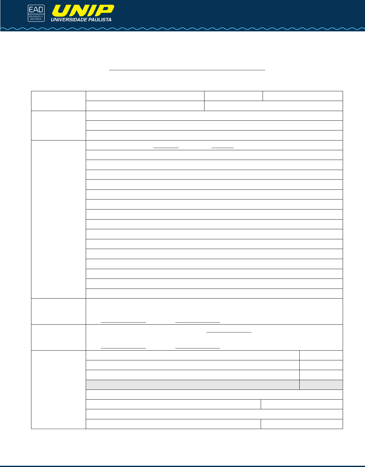 Serviço Social ICSC – INSTITUTO DE CIÊNCIAS SOCIAIS E COMUNICAÇÃO – CURSO DE ADMINISTRAÇÃO – UNIP TERMO DE CONVALIDAÇÃO DE ESTÁGIO CURRICULAR ATIVIDADES PRÁTICAS DE ESTÁGIO CONTRATADO Aluno Nome: RA: Polo: E-mail: Fones: Organização Razão social/nome fantasia: Ramo de atividade: Endereço e telefones: Funções ou atividades Tempo de exercício: início em e término em_______ (quando aplicável) Principais atividades: Assinatura do aluno Declaro que as informações acima são a expressão da verdade. Data:______________ Assinatura:______________ Parecer do orientador Quantidade de horas válidas para o estágio curricular:______________ Data:______________ Assinatura:______________ Validação da Universidade Etapas do relatório de estágio Validação Formulário “Termo de Realização de EC” (Art. 9º, § 5, da Lei 11.788/2008) Relatório de mapeamento Nota final: Professor avaliador: Assinatura: Data: Coordenação: Assinatura: Data: *Este documento deverá ser anexado nas páginas finais do relatório. Não deverá ser enviado para a coordenação ou setor de estágios. Nome: RA: Polo: Email: Fones: Razão SocialNome Fantasia: Ramo de atividade: Endereço e telefones: Tempo de exercício início em: Principais atividadesFunções ou atividades: Principais atividadesFunções ou atividades_2: Principais atividadesFunções ou atividades_3: Principais atividadesFunções ou atividades_4: Principais atividadesFunções ou atividades_5: Principais atividadesFunções ou atividades_6: Principais atividadesFunções ou atividades_7: Principais atividadesFunções ou atividades_8: Principais atividadesFunções ou atividades_9: Principais atividadesFunções ou atividades_10: Principais atividadesFunções ou atividades_11: Principais atividadesFunções ou atividades_12: Principais atividadesFunções ou atividades_13: Principais atividadesFunções ou atividades_14: ValidaçãoFormulário Termo de Realização de EC Art 9 5 da Lei 1178808: ValidaçãoRelatório de mapeamento: ValidaçãoNota final: Professor avaliador: Data: Coordenação: Data_2: Principais atividadesFunções ou atividabb des: Tempo de exercício início em8: Data3: Data4: qth: