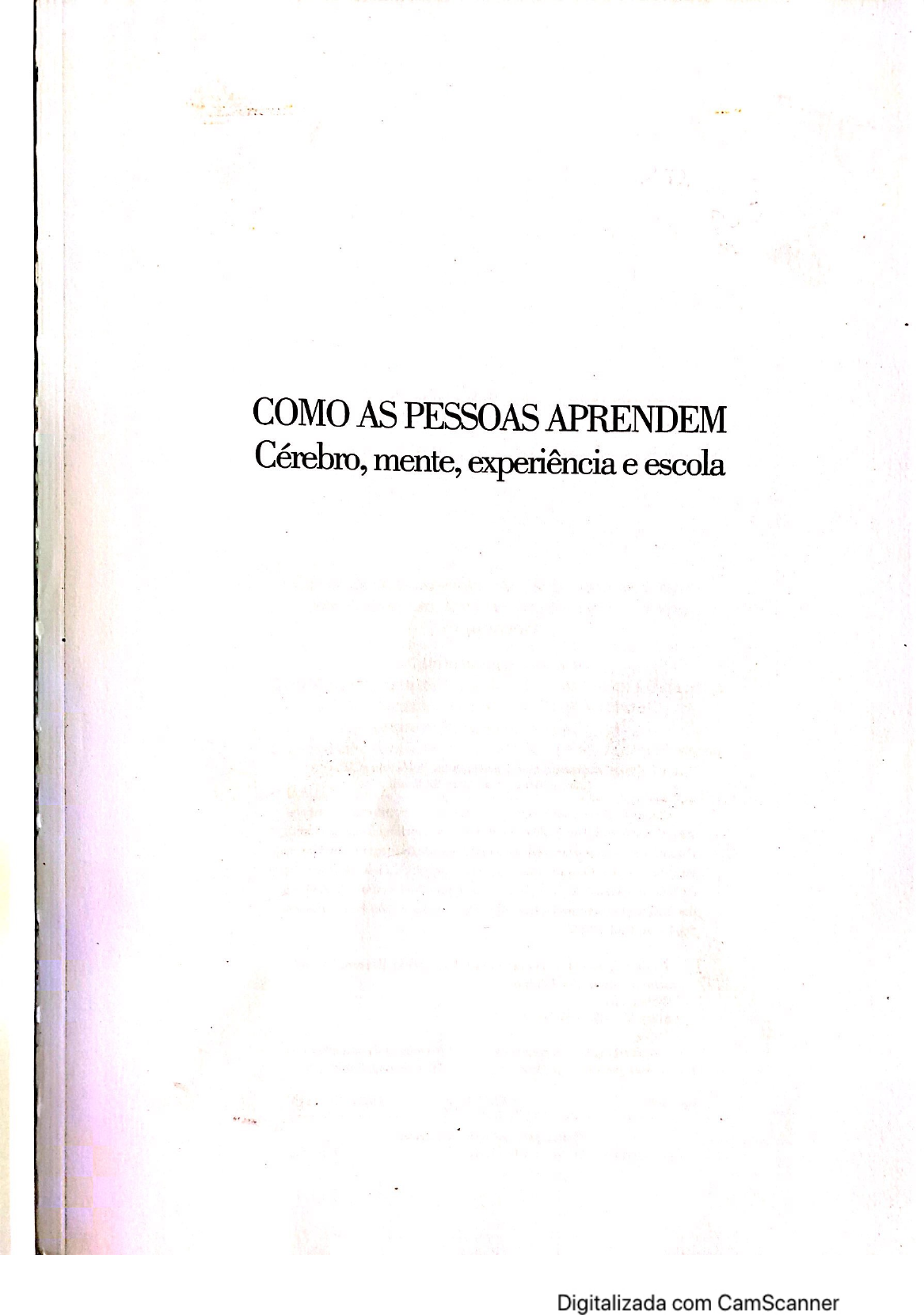 <p>COMO AS PESSOAS APRENDEM Cérebro, mente, experiência e escola Digitalizada com CamScanner</p><p>Aprendizagem: da especulação à ciência A essência da matéria, as origens do universo, a natureza da mente humana: através dos séculos, essas são as questões profundas que envolveram os pensadores. Até recente- mente, compreender a mente - assim como o pensamento e a aprendizagem possibili- tados pela mente era uma tarefa árdua, em parte por causa da falta de ferramentas de pesquisa eficazes. Atualmente, o mundo vive uma expansão expressiva dos estudos cien- tíficos sobre a mente e o cérebro, sobre os processos de pensamento e aprendizagem, sobre os processos neurais que acontecem durante o pensamento e a aprendizagem e sobre o desenvolvimento da competência. A revolução no estudo da mente ocorrida nas últimas três ou quatro décadas tem importantes para a educação. Como mostraremos, está entrando em foco uma nova teoria da aprendizagem, que conduz a abordagens muito diferentes das encontradas muitas vezes nas escolas atuais, em relação ao projeto do currículo, do ensino e da avaliação. Igualmente importante, o crescimento das investigações interdisciplinares e os novos tipos de colaborações científicas começaram a tornar mais visível, se não mais fácil de percorrer, o caminho que leva da pesquisa básica à prática educacional. Trinta anos atrás, os educadores prestavam pouca atenção ao tra- balho dos cientistas cognitivos, e os pesquisadores do nascente campo da ciência cognitiva trabalhavam bastante afastados das salas de os pesquisadores cognitivos estão dedicando mais tempo ao trabalho com professores, testando e refinando suas teorias em salas de aulas reais, onde podem ver como os diversos ambientes e as interações nas salas de aula influenciam as aplicações das suas teorias. Hoje, o que talvez seja mais extraordinário são as diversas abordagens e técnicas de pesquisa que foram desenvolvidas, e a maneira pela qual começam a convergir as desco- bertas provenientes de ramos muito distintos da ciência. A história que podemos contar Digitalizada com CamScanner</p><p>Introdução agora sobre a aprendizagem é muito mais rica do que foi até então, e promete evoluir consideravelmente na próxima geração. Por exemplo: A pesquisa concernente à psicologia cognitiva ampliou a compreensão da natureza do desempenho competente, assim como dos princípios da organização do co- nhecimento em que se baseiam nossas capacidades para solucionar problemas em diversas áreas, como matemática, ciências, literatura, estudos sociais e história. Os pesquisadores do desenvolvimento mostraram que as crianças mais novas têm uma boa compreensão dos princípios básicos da biologia e da causalidade física, dos números, das narrativas e dos objetivos pessoais, e que essas aptidões tornam possível a criação de currículos inovadores, que introduzem conceitos importantes para raciocínio avançado em idades precoces. A pesquisa sobre a aprendizagem e a transferência revelou princípios importantes para a estruturação das experiências de aprendizagem, que permitem que as pessoas utilizem o que aprenderam em novos cenários. Os estudos de psicologia social, de psicologia cognitiva e de antropologia evidenciam que toda aprendizagem acontece em cenários que apresentam conjuntos específi- de normas e expectativas culturais e sociais, e que esses cenários influenciam a aprendizagem e a transferência de maneira marcante. A neurociência começa a fornecer provas dos diversos princípios de aprendizagem que surgiram a partir da pesquisa de laboratório, e está mostrando como a apren- dizagem modifica a estrutura física do cérebro e, por meio disso, a sua organização funcional. Os estudos referentes ao projeto e à avaliação dos ambientes de aprendizagem, envolvendo a colaboração entre psicólogos e educadores cognitivos e de desenvol- vimento, estão produzindo conhecimento novo sobre a natureza da aprendizagem e do ensino que ocorrem em diversos cenários. Além disso, os pesquisadores estão descobrindo maneiras de aprender a partir da "sabedoria da prática", graças a pro- fessores bem-sucedidos, que são capazes de partilhar sua competência. As tecnologias emergentes conduzem à criação de muitas oportunidades novas inimagináveis alguns anos atrás para orientar e intensificar a aprendizagem. Todos esses desenvolvimentos no estudo da aprendizagem dão início a uma época em que a ciência ganha nova relevância para a prática. Em resumo, o investimento em pesquisa básica está retornando em aplicações práticas. Esses avanços na compreensão de como os seres humanos aprendem são particularmente importantes quando se levam em conta as mudanças naquilo que se espera dos sistemas educacionais do país. Nos primeiros anos do século XX, a educação focalizava a aquisição das habilida- des de letramento: leitura, escrita e cálculos básicos. Para os sistemas educacionais, a regra geral não era treinar as pessoas para pensar e ler criticamente, para se expressar com clareza e de modo convincente, para solucionar problemas complexos de ciências 20 Digitalizada com CamScanner</p><p>Aprendizagem: da especulação à ciência e matemática. Hoje em dia, esses aspectos do letramento avançado são exigidos de quase todos, para que possam lidar com sucesso com as complexidades da vida con- exigências de qualificação para o trabalho aumentaram sensivelmente, assim como a necessidade de que as organizações e os trabalhadores mudem para atender às pressões competitivas do ambiente de trabalho. A participação consciente no processo democrático também se tornou cada vez mais complexa, à medida que o foco da atenção se deslocou do interesse local para o nacional e o global. Acima de tudo, as informações e o conhecimento crescem a um ritmo muito mais acelerado do que jamais visto na história da humanidade. Como sab