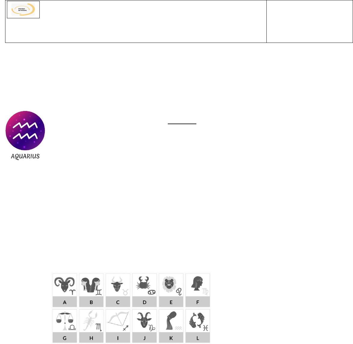 <p>1- Match the meaning words in English to their meaning words in Portuguese:</p><p>a. cantina grande ( ) modern computer lab</p><p>b. espaço maker ( ) sports activities</p><p>c. sistema de segurança ( ) maker space</p><p>d. sala de informática moderna ( ) big cafeteria</p><p>e. piscina ( ) security system</p><p>f. atividades esportiva ( ) swimming pool</p><p>2- Read the predictions and answer the questions bellow</p><p>Aquarius</p><p>This week you will have good news from friends. Love will be perfect. Pay attention</p><p>to the words you will say to your loved ones. Work will bring good results.</p><p>A) According to the prediction, what will happen to Aquarius today?</p><p>R:______________________________</p><p>B) What will pay attention?</p><p>R:______________________________</p><p>C) What is the prediction for the Work?</p><p>R:______________________________</p><p>3- Circule as ações futuras nas previsões que você leu:</p><p>Aries will have a nice surprise today.</p><p>Taurus won´t be available for business.</p><p>Capricorn will receive extra money this week.</p><p>Leo won´t be patient with obstacles.</p><p>4- Match the images to the correspondent zodiac sign.</p><p>( ) Virgo ( ) Taurus ( ) Aries ( ) Leo</p><p>( ) Scorpio ( ) Libra ( ) Sagittarius</p><p>( ) Pisces ( ) Capricorn ( ) Aquarius</p><p>5- Observe a previsão do tempo e responda:</p><p>a) What will the weather be like on Tuesday ?</p><p>R:______________________________</p><p>EE Arnolfo Azevedo</p><p>Avaliação MENSAL</p><p>English Teacher: Késia Grade: ______</p><p>Name: __________________________________________________________ Nº_____</p><p>Note:_____________</p><p>_________________________</p><p>Assinatura do Responsável</p><p>b) What will the weather be like on Wednesday?</p><p>R:______________________________</p><p>c) What will the weather be like on Thursday ?</p><p>R:______________________________</p><p>7- Escolham a opção que melhor traduz os termos sublinhados a seguir.</p><p>The weather is sunny.</p><p>A. Chuvoso</p><p>B. Ensolarado</p><p>C. Frio</p><p>It's cloudy here today.</p><p>A. Ensolarado</p><p>B. Nublado</p><p>C. Quente</p><p>8. Is it warm over there?</p><p>A. Frio</p><p>B. Nublado</p><p>C. Quente</p><p>dead in stormy weather in Philippines.</p><p>A. Com tempestades</p><p>B. Com neve</p><p>C. Com chuva</p><p>9- Responda:</p><p>How is the weather today? (Como está o clima hoje?)</p><p>R:</p><p>10- Leia o texto sobre a previsão do tempo</p><p>Weather reporter: Welcome to the weather forecast. Now, let's see what the weather</p><p>will be like today. In the north of the state, it will be rainy and cold. The temperature will</p><p>be around 8º centigrade. There will be a thunderstorm in the afternoon. The</p><p>temperature is a bit higher, at around 13º. In the west and middle of the state, the</p><p>weather will be cloudy. The south of the country will be cloudy most of the time but</p><p>sunny this afternoon. The temperature is around 12º</p><p>True or False</p><p>( ) The temperature will be around 16º in the north of the state.</p><p>( ) It will be rainy and cold in the north.</p><p>( ) In the south of the country, it will be cloudy only in the morning.</p><p>( ) There will be a thunderstorm in the afternoon.</p>
