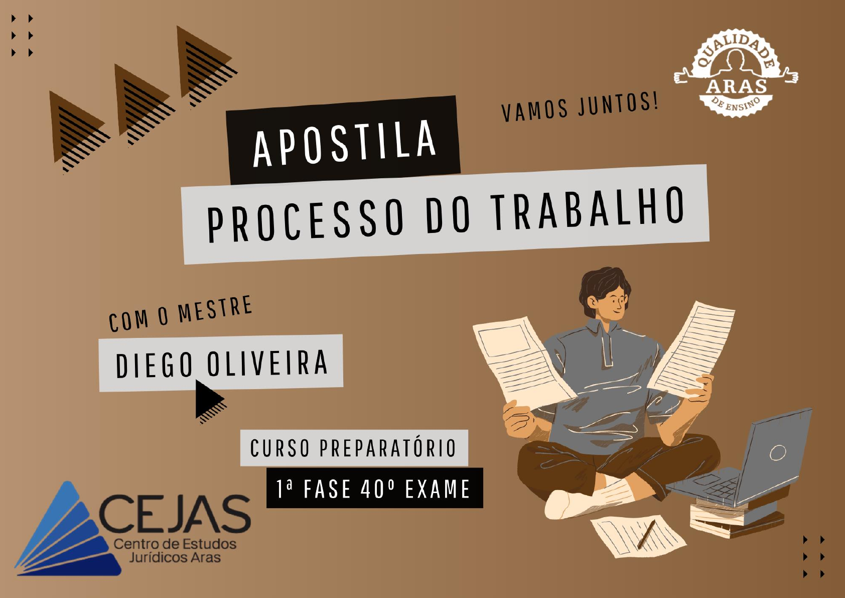 <p>Curso Preparatório para a 1ª Fase da OAB</p><p>Prof. Diego Oliveira | Processo do Trabalho</p><p>ANOTAÇÕES</p><p>2</p><p>_____________________________________________________________________________________</p><p>https://www.cejasonline.com.br/</p><p>SUMÁRIO</p><p>Capítulo 1. Princípios Processuais Trabalhistas ........................................................................... 3</p><p>Capítulo 2. Organização da Justiça do Trabalho ........................................................................... 10</p><p>Capítulo 3. Jurisdição e Competência da Justiça do Trabalho ................................................. 13</p><p>Capítulo 4. Ação e Procedimentos Processuais ........................................................................... 20</p><p>Capítulo 5. Reclamação Trabalhista (Inicial) ........................................................................................ 28</p><p>Capítulo 6. Notificação Processual ..................................................................................................... 33</p><p>Capítulo 7. Audiência Trabalhista e Fase Instrutória ........................................................................... 34</p><p>Capítulo 8. Das Provas no Processo do Trabalho ........................................................................... 40</p><p>Capítulo 9. Resposta do Réu .................................................................................................................. 48</p><p>Capítulo 10. Contestação .................................................................................................................. 52</p><p>Capítulo 11. Recursos no Processo do Trabalho ........................................................................... 55</p><p>Capítulo 12. Recursos em Espécie ..................................................................................................... 64</p><p>Capítulo 13. Execução Trabalhista.......................................................................................................... 71</p><p>Capítulo 14. Processo de Homologação de Acordo Extrajudicial ................................................. 77</p><p>Capítulo 15. Justiça Gratuita ..................................................................................................... 78</p><p>Capítulo 16. Honorários Advocatícios ........................................................................................ 79</p><p>Capítulo 17. Atos, Termos e Prazos Processuais ........................................................................... 81</p><p>Capítulo 18. Da Prescrição .................................................................................................................. 89</p><p>Capítulo 19. Melô da Linha do Tempo ........................................................................................ 91</p><p>Capítulo 20. Prova de Inexistência de Débitos Trabalhistas ................................................. 93</p><p>Capítulo 21. Dissídio Coletivo ..................................................................................................... 98</p><p>Capítulo 22. Poder Normativo ..................................................................................................... 100</p><p>Capítulo 23. Inquérito para Apuração de Falta Grave .............................................................. 105</p><p>Curso Preparatório para a 1ª Fase da OAB</p><p>Prof. Diego Oliveira | Processo do Trabalho</p><p>ANOTAÇÕES</p><p>3</p><p>_____________________________________________________________________________________</p><p>https://www.cejasonline.com.br/</p><p>CAPÍTULO 1. PRINCÍPIOS PROCESSUAIS</p><p>TRABALHISTAS.</p><p>PRINCÍPIOS APLICÁVEIS AO DIREITO PROCESSUAL DO TRABALHO:</p><p>1. PRINCÍPIO DA PROTEÇÃO AO TRABALHADOR</p><p> Este princípio tem suma relevância no Direito do Trabalho, na medida em que visa atenuar as</p><p>diferenças processuais existentes entre as partes, em razão da hipossuficiência do empregado,</p><p>equiparando-o ao seu empregador.</p><p> Deve-se ter maior atenção aos interesses do trabalhador na relação processual, em face da sua</p><p>hipossuficiência.</p><p> Súmula n 212 do TST – O ônus de provar o término do contrato de trabalho, quando negados a</p><p>prestação de serviço e o despedimento, é do empregador, pois o princípio da continuidade da relação</p><p>de emprego constitui presunção favorável ao empregado.</p><p>O Direito Processual do Trabalho é conceituado como um conjunto</p><p>de princípios, normas, regras e institutos jurídicos próprios</p><p>destinadas a regular a atividade dos órgãos jurisdicionais do</p><p>Estado na solução dos dissídios, individuais e coletivos,</p><p>decorrentes das relações de trabalho.</p><p>Curso Preparatório para a 1ª Fase da OAB</p><p>Prof. Diego Oliveira | Processo do Trabalho</p><p>ANOTAÇÕES</p><p>4</p><p>_____________________________________________________________________________________</p><p>https://www.cejasonline.com.br/</p><p> Esse princípio se divide nos princípios da (I) aplicação da norma</p><p>mais favorável, (II) condição mais benéfica e (III) in dubio pro operário.</p><p>2. PRINCÍPIO DA ORALIDADE</p><p> Consubstancia-se na predominância da prática de atos processuais de forma verbal.</p><p> Como exemplo à aplicação deste princípio, temos:</p><p>I. A leitura da reclamação de forma verbal – art. 847, CLT;</p><p>II. Ajuizamento a reclamação trabalhista de forma verbal – art. 840, CLT;</p><p>III. Tentativas de conciliação – art. 846 e 850, CLT;</p><p>IV. A apresentação de defesa oral em 20 minutos – art. 847, CLT;</p><p>V. Produção de provas, oitivas de partes e testemunhas;</p><p>VI. Razões finais em 10 minutos – art. 850, CLT;</p><p>VII. Somente no procedimento ordinário, há uma 2ª tentativa de conciliação.</p><p>3. PRINCÍPIO DA C