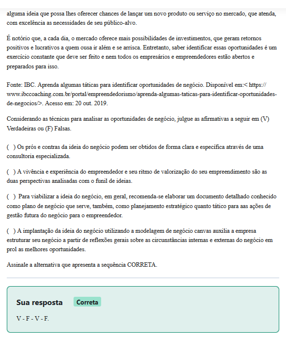 <p>alguma ideia que possa lhes oferecer chances de lançar um novo produto ou serviço no mercado, que atenda, com excelência as necessidades de seu público-alvo. É notório que, a cada dia, o mercado oferece mais possibilidades de investimentos, que geram retornos positivos e lucrativos a quem ousa além e se arrisca. Entretanto, saber identificar essas oportunidades é um constante que deve ser feito e nem todos empresários e empreendedores estão abertos e preparados para isso. Fonte: IBC. Aprenda algumas táticas para identificar oportunidades de negócio. Disponível em:</p>