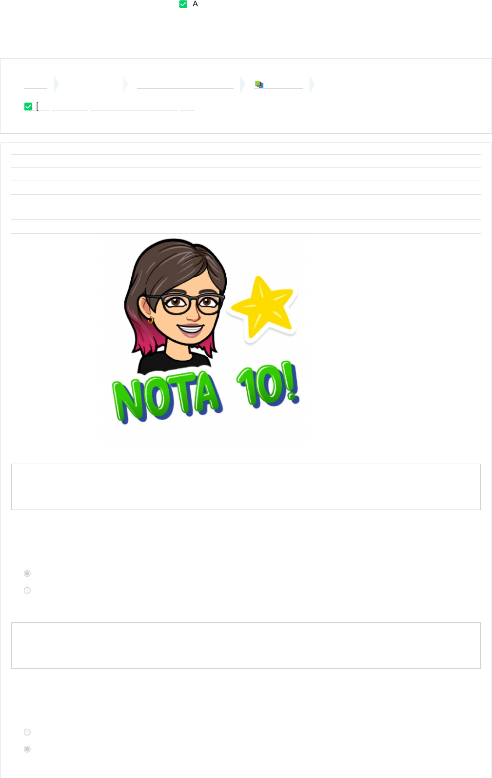 <p>Painel Meus cursos 32010001755-T01-2024-2 📚 Módulo 2</p><p>✅ [A2] – Avaliação do Módulo 2 – Funções</p><p>Iniciado em terça, 8 out 2024, 15:31</p><p>Estado Finalizada</p><p>Concluída em terça, 8 out 2024, 18:16</p><p>Tempo</p><p>empregado</p><p>2 horas 44 minutos</p><p>Avaliar 10,00 de um máximo de 10,00(100%)</p><p>Comentários</p><p>Questão 1</p><p>Correto</p><p>Atingiu 1,00 de 1,00</p><p>Questão 2</p><p>Correto</p><p>Atingiu 1,00 de 1,00</p><p>Uma função logarítmica com base 0 1 é estritamente decrescente e contínua em R* .</p><p>Escolha uma opção:</p><p>Verdadeiro</p><p>Falso </p><p>+</p><p>08/10/2024, 18:16 ✅ [A2] – Avaliação do Módulo 2 – Funções: Revisão da tentativa</p><p>https://ava.ufms.br/mod/quiz/review.php?attempt=1127321&cmid=849189 1/4</p><p>https://ava.ufms.br/my/</p><p>https://ava.ufms.br/course/view.php?id=60717</p><p>https://ava.ufms.br/course/view.php?id=60717#section-3</p><p>https://ava.ufms.br/mod/quiz/view.php?id=849189</p><p>Questão 3</p><p>Correto</p><p>Atingiu 1,00 de 1,00</p><p>Questão 4</p><p>Correto</p><p>Atingiu 1,00 de 1,00</p><p>Questão 5</p><p>Correto</p><p>Atingiu 1,00 de 1,00</p><p>Consideremos f e g funções de R em R e seja R o conjunto dos números reais, dadas por f(x) = 2x – 3 e f(g(x)) =</p><p>-4x + 1. Nestas condições, g(-2) é igual a:</p><p>a. 0</p><p>b. -4</p><p>c. 6</p><p>d. 4</p><p>e. -5</p><p>Consideremos a função f(x) = (m – 4) , sabendo que essa função é decrescente, o valor de m está entre:</p><p>a. 5 e 6</p><p>b. 2 e 3</p><p>c. 3 e 4</p><p>d. 1 e 2</p><p>e. 4 e 5</p><p>x</p><p>Se a função f(x) = 20x – 60 será igual a 300 quando x assumir o valor de:</p><p>a. 18,00</p><p>b. 15,00</p><p>c. 16,75</p><p>d. 17,25</p><p>e. 17,50</p><p>08/10/2024, 18:17 ✅ [A2] – Avaliação do Módulo 2 – Funções: Revisão da tentativa</p><p>https://ava.ufms.br/mod/quiz/review.php?attempt=1127321&cmid=849189 2/4</p><p>Questão 6</p><p>Correto</p><p>Atingiu 1,00 de 1,00</p><p>Questão 7</p><p>Correto</p><p>Atingiu 1,00 de 1,00</p><p>Questão 8</p><p>Correto</p><p>Atingiu 1,00 de 1,00</p><p>Dada a função de grau três f(x) = x + 3x – 2x – 9, o valor de f(2) + f(–3) é:</p><p>a. 3</p><p>b. 7</p><p>c. 4</p><p>d. 10</p><p>e. -3</p><p>3</p><p>2</p><p>Quando definimos uma função ímpar, dizemos que a função f é considerada ímpar quando f(–x) = f(x),</p><p>qualquer que seja o valor de x D(f).</p><p>Escolha uma opção:</p><p>Verdadeiro</p><p>Falso </p><p>∈</p><p>Considere a função logarítmica , encontre o valor de x desta função</p><p>a. 31</p><p>b. 26</p><p>c. 33</p><p>d. 30</p><p>e. 25</p><p>08/10/2024, 18:17 ✅ [A2] – Avaliação do Módulo 2 – Funções: Revisão da tentativa</p><p>https://ava.ufms.br/mod/quiz/review.php?attempt=1127321&cmid=849189 3/4</p><p>Questão 9</p><p>Correto</p><p>Atingiu 1,00 de 1,00</p><p>Questão 10</p><p>Correto</p><p>Atingiu 1,00 de 1,00</p><p>Determine o vértice da função quadrática y = 8x – 3x – 5.</p><p>a. -3/16, -169/32</p><p>b. 3/16, -169/32</p><p>c. 3/16, -151/32</p><p>d. 3/16, 32/169</p><p>e. 1/16, -13/32</p><p>2</p><p>A função exponencial f(x) = 2 é uma função contínua em R e é uma função crescente.</p><p>Escolha uma opção:</p><p>Verdadeiro </p><p>Falso</p><p>x</p><p>Atividade anterior</p><p>◄ 📍 [Checkout de Presença] Módulo 2 – Funções</p><p>Seguir para...</p><p>Próxima atividade</p><p>▶ [Videoaula] Apresentação do Módulo 3 ►</p><p>Manter contato</p><p>Suporte Técnico ao Usuário</p><p> https://suporteagetic.ufms.br</p><p> (67) 3345-7613</p><p> suporte.agead@ufms.br</p><p></p><p>08/10/2024, 18:17 ✅ [A2] – Avaliação do Módulo 2 – Funções: Revisão da tentativa</p><p>https://ava.ufms.br/mod/quiz/review.php?attempt=1127321&cmid=849189 4/4</p><p>https://ava.ufms.br/mod/assign/view.php?id=849187&forceview=1</p><p>https://ava.ufms.br/mod/url/view.php?id=849190&forceview=1</p><p>https://suporteagetic.ufms.br/</p><p>tel:(67) 3345-7613</p><p>mailto:suporte.agead@ufms.br</p><p>https://api.whatsapp.com/send?phone=556733457613</p>