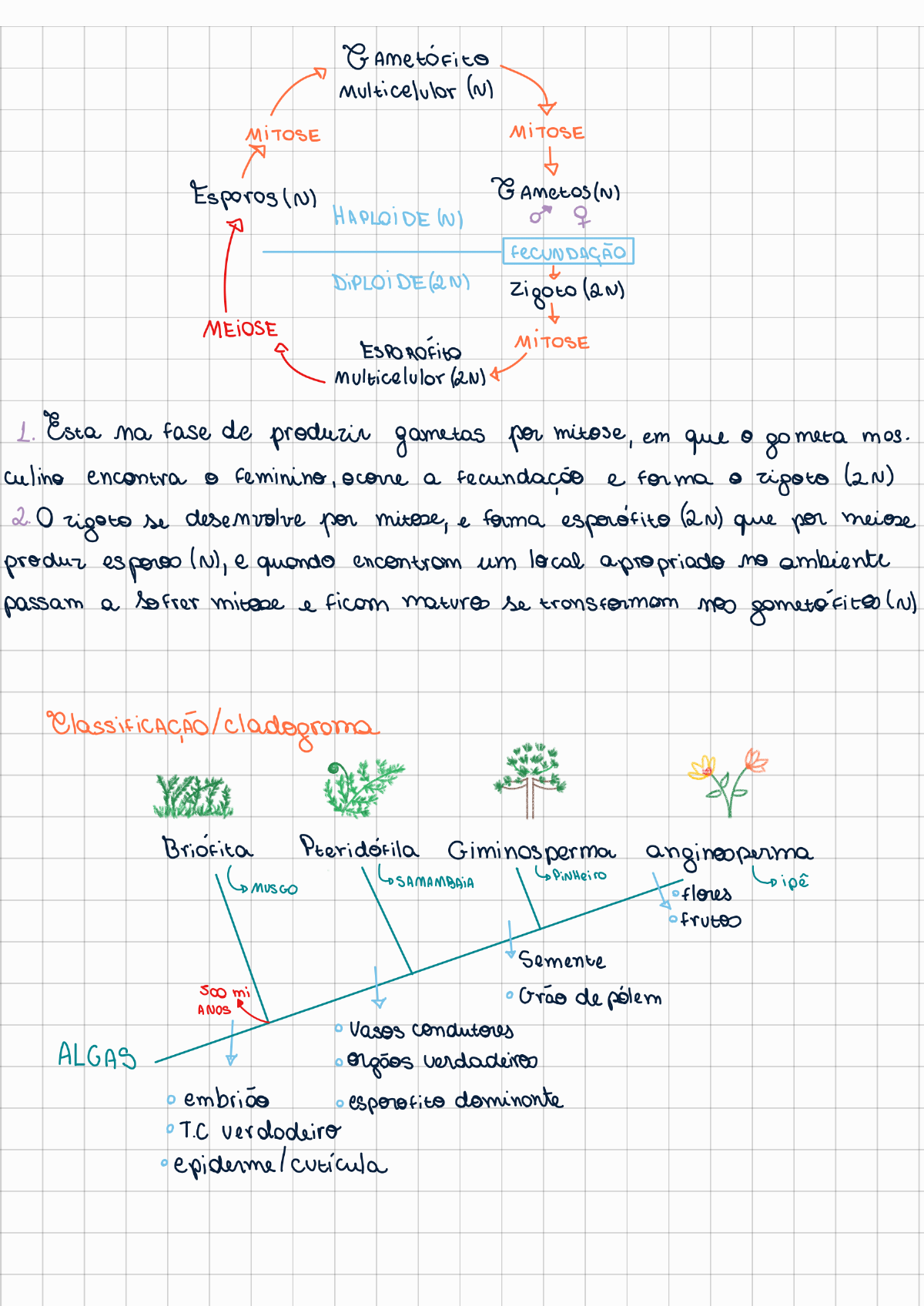 <p>Esporos(N) HAPLOIDE Zigoto (2N) (2N) Csta ma fase de produzir gametas per mitose, em que mos. culino encontra Q e zigoto (2N) 2.0 se desenvolve per e forma (2N) que per meiose produz (N), e encontrom um local ambiente passam a mitose matures se Briofita Giminosperma angineoperma MUSGO PiNHeiro flores ipe Semente 500 mi de polem ANOS Vasos condutores ALGAS esperofito dominonte T.C verdodeiro</p><p>- ORGANIZACAO esporos(n) TALO Gametofito - ORGANIZACAO CORPORAL Esporofito Dominonte (2N) PROTALO SORO folha Germinacoo doo CAULE (BACULO) RAiz ORGANIZACAO CORPORAL flor = ocorre Dupla Estome ESTIGMA tilete feminina Petola COROLA SEPALA RECEPTACLO FLORAL CALICE</p><p>ESTOMATO: Abertura e fechamento trocas GASOSAS K ESTOMATO ESTOMATO ABERTO FECHADO Cel. OSTÍOLO Cél. GUARDA</p>