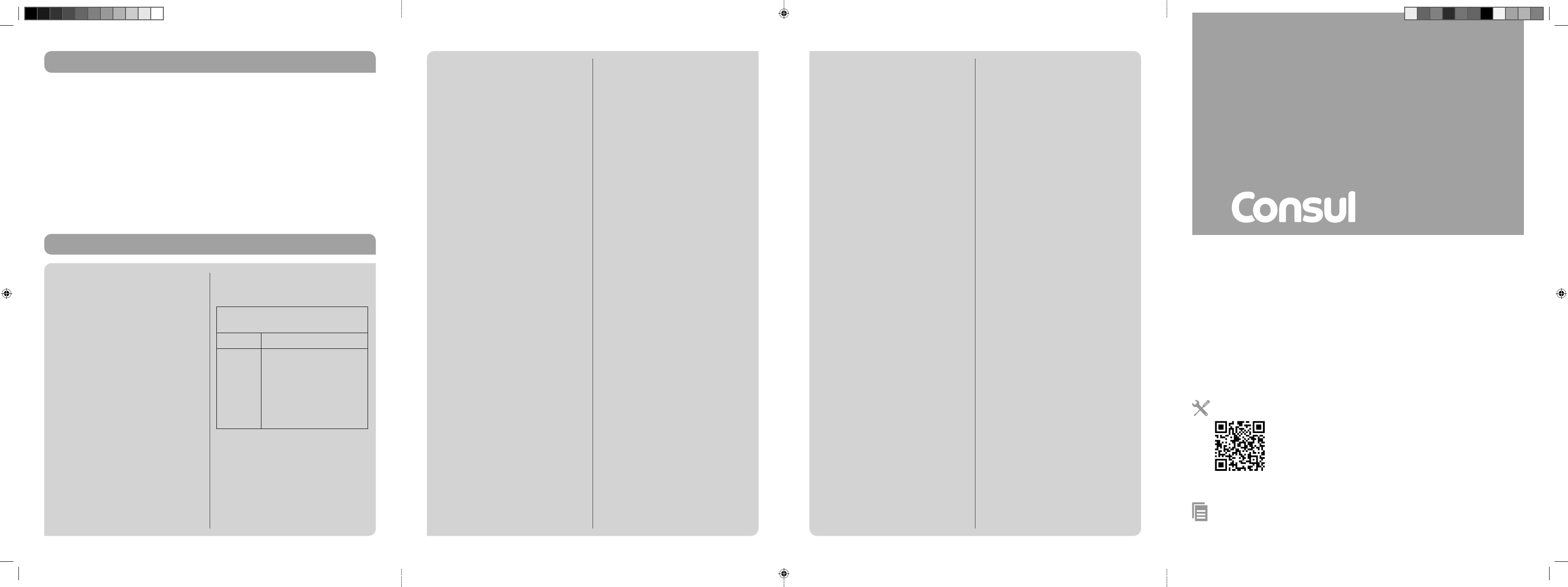 <p>16 7 8</p><p>Manual</p><p>do Produto</p><p>1. Acessar o site www.consul.com.br/atendimento, através de seu computador ou</p><p>de seu smartphone.</p><p>Para agendar serviços de instalação e/ou reparo de seu produto junto à rede</p><p>autorizada de assistências técnicas, você pode:</p><p>Para informações de uso, leia o Guia Rápido que também acompanha o produto.</p><p>As imagens deste Manual são meramente ilustrativas.</p><p>2. Acessar o site com o QR Code ao lado:</p><p>a. Abra o aplicativo para leitura do QR Code;</p><p>b. Aponte a câmera;</p><p>c. Aguarde a decodifi cação;</p><p>d. Acesse a página.</p><p>3. Ligar para 3003-0777 (capitais e regiões metropolitanas) ou 0800-970-0777</p><p>(demais localidades).</p><p>W</p><p>10</p><p>6</p><p>3</p><p>5</p><p>0</p><p>5</p><p>2</p><p>|</p><p>S</p><p>M</p><p>W</p><p>11</p><p>17</p><p>4</p><p>8</p><p>9</p><p>3</p><p>r</p><p>e</p><p>v.</p><p>C</p><p>0</p><p>8</p><p>/0</p><p>2</p><p>/2</p><p>0</p><p>2</p><p>4</p><p>Embalagem</p><p>A Whirlpool S.A - Unidade de Eletrodomésticos procura em seus novos projetos usar embalagens cujas</p><p>partes sejam de fácil separação, bem como de materiais recicláveis, portanto, as peças da embalagem</p><p>(sacos plásticos, peças de isopor e de papelão) devem ter o seu descarte de maneira consciente,</p><p>sendo eles destinados, preferencialmente, a recicladores.</p><p>Produto</p><p>Este produto foi construído com materiais que podem ser reciclados e/ou reutilizados, então ao se</p><p>desfazer deste produto procure companhias especializadas em desmontá-lo corretamente.</p><p>Descarte</p><p>Ao descartar este produto, no fi nal de sua vida útil, solicitamos que seja observada a legislação local</p><p>existente e vigente em sua região, fazendo assim o descarte de forma mais correta possível.</p><p>Termo de Garantia</p><p>Questões ambientais</p><p>O seu produto Consul é garantido con-</p><p>tra defeitos de fabricação, pelo prazo de</p><p>12 meses contados a partir da data da</p><p>emissão da Nota Fiscal ao consumidor</p><p>ou da entrega do produto ao primeiro</p><p>adquirente, sendo:</p><p>• 90 dias – garantia legal;</p><p>• 9 últimos meses – garantia contratual,</p><p>concedida pela Whirlpool S.A. – Uni-</p><p>dade de Eletrodomésticos.</p><p>A garantia compreende a substituição</p><p>gratuita de peças e mão de obra para</p><p>defeitos constatados como sendo de</p><p>fabricação. Apenas a Rede de Serviços</p><p>Consul, a Whirlpool S.A., ou quem esta</p><p>indicar, são responsáveis pelo diagnós-</p><p>tico de falhas e execução de reparos</p><p>durante a vigência da garantia. Durante</p><p>o período de vigência da garantia, se os</p><p>defeitos constatados forem de fabrica-</p><p>ção, o fabricante se obriga a trocar as</p><p>peças e/ou assistir gratuitamente o seu</p><p>produto a partir da data do chamado. Se</p><p>o produto não apresentar defeitos ou</p><p>apresentar uso inadequado, será cobra-</p><p>da a taxa de visita técnica.</p><p>Tabela de componentes com garantia</p><p>até 90 dias</p><p>Categoria Componentes</p><p>Lavadoras Botão Encoder, Botão</p><p>Pressostato, Filtro de</p><p>Fiapos, Pé Nivelador,</p><p>Painel Decorativo,</p><p>Mangueira de Entrada,</p><p>Mangueira de Drenagem e</p><p>Gaveta Dispenser.</p><p>As garantias legal e/ou contratual fi -</p><p>cam automaticamente invalidadas se:</p><p>• O uso do produto não for exclusiva-</p><p>mente doméstico;</p><p>• Não forem observadas as orientações</p><p>e recomendações do Manual do Pro-</p><p>duto e Guia Rápido quanto a utiliza-</p><p>ção do produto;</p><p>• Defeitos estéticos (riscados ou</p><p>amassados, manchados ou amare-</p><p>lados) e/ou com falta de peças em</p><p>produtos de saldo ou mostruário.</p><p>Estes têm garantia de 12 meses</p><p>apenas para defeitos funcionais não</p><p>descriminados em sua nota fi scal de</p><p>compra;</p><p>• Problemas de oxidação/ferrugem</p><p>com causa comprovada nos seguin-</p><p>tes fatores:</p><p>- Instalação em ambiente de alta sa-</p><p>linidade;</p><p>- Instalação em sol e chuva (ações</p><p>de agentes da natureza);</p><p>- Exposição e/ou contato do produto</p><p>a substancias ácidas ou alcalinas;</p><p>- Utilização de produtos químicos</p><p>inadequados para limpeza, in-</p><p>cluindo uso de materiais ou ferra-</p><p>mentas sujas/ásperas.</p><p>• Despesas por processos de inspeção</p><p>e diagnóstico, incluindo a taxa de vi-</p><p>sita do técnico, que determinem que</p><p>a falha no produto foi causada por</p><p>motivo não coberto por esta garantia;</p><p>• Chamados relacionados a orientação</p><p>de uso de eletrodoméstico, cuja ex-</p><p>plicação esteja presente no Manual</p><p>do Produto, Guia Rápido ou em Eti-</p><p>quetas Orientativas que acompa-</p><p>nham o produto, serão cobrados dos</p><p>consumidores.</p><p>A garantia contratual não cobre:</p><p>• Deslocamentos para atendimentos</p><p>de produtos instalados fora do mu-</p><p>nicípio sede da Rede de Serviços</p><p>Consul o qual poderá cobrar taxa de</p><p>locomoção do técnico, previamente</p><p>aprovada pelo consumidor, confor-</p><p>me tabela de quilometragem emitida</p><p>pela Whirlpool S.A. divulgada atra-</p><p>vés do Serviço de Atendimento ao</p><p>Consumidor (SAC);</p><p>• Todo e qualquer vício de fabricação</p><p>aparente e de fácil constatação;</p><p>• Peças sujeitas ao desgaste natural,</p><p>descartáveis ou consumíveis, peças</p><p>móveis ou removíveis em uso nor-</p><p>mal, tais como, lâmpadas, fi ltros,</p><p>botões de comando, puxadores, pro-</p><p>dutos riscados e amassados, bem</p><p>como, a mão-de-obra utilizada na</p><p>aplicação das peças e as consequên-</p><p>cias advindas dessas ocorrências;</p><p>• Peças com defeitos que não impac-</p><p>tam a funcionalidade do produto, tais</p><p>como peças amassadas, riscadas,</p><p>trincadas, manchadas, etc.</p><p>Considerações G