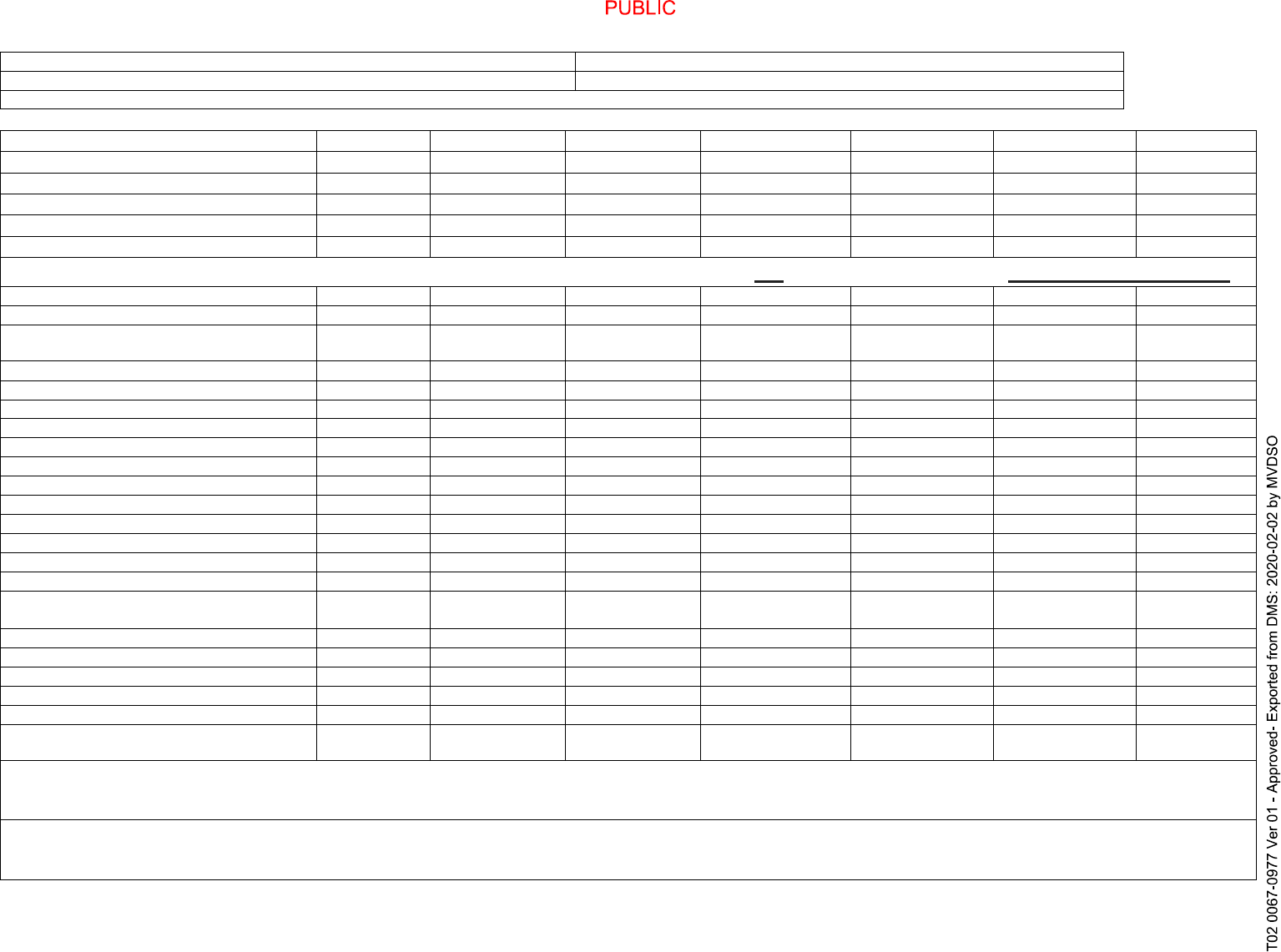 <p>Menores e/ou maiores defeitos que estejam listados acima devem ser comunicados ao seu gestor IMEDIATAMENTE à sua descoberta. O condutor poderá conduzir</p><p>o veículo com menores defeitos se este foi comunicado e a ação mitigadora já foi planejada.</p><p>DMS: 0067-0977 V01 - 24-05 2017 Page 1 of 2</p><p>CHECKLIST DIÁRIO DE VEÍCULO</p><p>Parque: Modelo e n° de frota:</p><p>Cidade/Estado Placa:</p><p>Localização da inspeção do carro:</p><p>Segunda Terça Quarta Quinta Sexta Sábado Domingo</p><p>Data da Inspeção (DD/MM/AA)</p><p>Horário da Inspeção</p><p>Odômetro início da viagem (km)</p><p>Odômetro final da viagem (km)</p><p>Motorista condutor</p><p>Em caso de defeito escreva: “Menor” ou “Maior” conforme tabela orientativa a seguir. Caso não haja defeito, escreva “ok” – NÃO DEIXE EM BRANCO</p><p>Item 1. Sistema de Freio</p><p>Item 2. Documentação do veículo</p><p>Item 3. Revisão por</p><p>quilometragem/Semestral</p><p>Item 4. CNH do Motorista</p><p>Item 5. Transporte de Produtos Perigosos</p><p>Item 6. Controles de Direção</p><p>Item 7. Assento do Motorista</p><p>Item 8. Extintor</p><p>Item 9. Kit de Primeiros Socorros</p><p>Item 10. Buzina</p><p>Item 11. Carroceria</p><p>Item 12. Sistema de Combustível</p><p>Item 13. Estrutura Geral</p><p>Item 14.Vidros e espelhos</p><p>Item 15. Segurança da carga</p><p>Item 16. Equipamentos e ferramentas</p><p>(Macaco, chave de roda e triangulo)</p><p>Item 17. Lanternas e farois</p><p>Item18. Volante</p><p>Item 19. Suspensão</p><p>Item 20. Pneus</p><p>Item 21. Roda, parafusos e porcas</p><p>Item 22. Limpador de Para-brisa e jato</p><p>d’água</p><p>Observações:</p><p>Nome do inspetor_________________________________ Assinatura do inspetor:___________________________________________</p><p>Ao assinar certifico que o veículo foi inspecionado por mim e todas as informações são verdadeiras</p><p>VESTAS PROPRIETARY NOTICE: This document contains valuable confidential information of Vestas Wind Systems A/S. It is protected by copyright law as an unpublished work. Vestas reserves all patent, copyright, trade secret, and</p><p>other proprietary rights to it. The information in this document may not be used, reproduced, or disclosed except if and to the extent rights are expressly granted by Vestas in writing and subject to applicable conditions. Vestas</p><p>disclaims all warranties except as expressly granted by written agreement and is not responsible for unauthorized uses, for which it may pursue legal remedies against responsible parties.</p><p>TABELA ORIENTATIVA</p><p>COLUNA 1 – Sistemas e</p><p>Componentes</p><p>COLUNA 2 - Menor Importância COLUNA 3 - Maior Importância</p><p>Item 1. Sistema de Freio</p><p>(a) Vazamento de ar audível/Nível de óleo</p><p>abaixo do mínimo.</p><p>(b) Pressão abaixo do mínimo</p><p>(a) Necessário pisar fundo para pressão do freio. “Pedal</p><p>“frouxo”.</p><p>(b) Sistema de freio do reboque está inoperante.</p><p>(c) Luz de alarme de freio está acionada ou sistema não</p><p>está funcionando.</p><p>(d) Freio de mão ou “P” para câmbios automáticos não</p><p>está funcionando</p><p>Item 2. Documentação do veículo</p><p>(a) Documento vencido. Aguardando chegada</p><p>de nova via já solicitada. (comprovante de</p><p>pagamento está presente)</p><p>(a) Documento vencido. Não há evidências de solicitação</p><p>de renovação</p><p>Item 3. Revisão por</p><p>quilometragem/Semestral</p><p>(a) Não foi feita revisão por quilometragem/semestral ou</p><p>não há evidências</p><p>Item 4. CNH do Motorista</p><p>(a) CNH vencida mas inspeção realizada no de</p><p>30 dias permitidos para renovação.</p><p>(a) CNH vencida após 30 dias permitidos para renovação</p><p>Item 5. Transporte de Produtos</p><p>Perigosos</p><p>(a) Veículo não possui identificação adequada para</p><p>transporte de produtos perigosos, e/ou não possui</p><p>identificação e/ou não é adequado para transporte de</p><p>produtos perigosos.</p><p>Item 6. Controles de Direção</p><p>(a) Pedal do Acelerador, Embreagem, sinais</p><p>visuais e sonoros ou qualquer outro</p><p>instrumento não funcionam adequadamente.</p><p>Item 7. Assento do Motorista</p><p>(a) Assento está danificado e/ou não</p><p>permanece na posição adequada</p><p>(a) Cinto de segurança não funciona adequadamente ou</p><p>apresenta qualquer tipo de avaria estrutural</p><p>Item 8. Extintor</p><p>(a) Extintor vencido.</p><p>(b) Extintor não está no veículo ou sem pressão</p><p>Item 9. Kit de Primeiros Socorros</p><p>(a) Kit de primeiros socorros está danificado ou</p><p>incompleto</p><p>(a) Kit de primeiros socorros não está no veículo.</p><p>Item 10. Buzina</p><p>(a) Buzina não funciona ou problemas de</p><p>funcionamento</p><p>Item 11. Carroceria (a) Avaria não estrutural (Amassado, riscado)</p><p>(a) Avaria estrutural (Trinco, amassamento crítico, corrosão</p><p>etc)</p><p>Item 12. Sistema de Combustível</p><p>(a) Falta tampa da entreda do tanque de</p><p>combustível</p><p>(a) Avaria no tanque de combustível</p><p>(b) Vazamento no tanque de combustível</p><p>Item 13. Estrutura Geral</p><p>(a) Sérios danos causados por deterioração e mal uso que</p><p>possam gerar risco aos usuários.</p><p>Item 14.Vidros e espelhos</p><p>(a) Vidro ou espelho trincado, danificado,</p><p>quebrado, mal ajustado ou qualquer razão que</p><p>dificulte ou impeça a visão do motorista.</p><p>Item 15. Segurança da carga (a) Cobertura de carga insegura ou imprópria</p><p>(a) Carga armazenada de forma insegura, contribuindo ao</p><p>risco de dado a própria carga ou lesões à pessoas.</p><p>(b) Ausência, falha, mal funcionamento ou deterioração da</p><p>cobertura ou equipamentos de fixação segura da carga</p><p>(lona, cintas, catracas etc)</p><p>Item 16. Equipamentos e</p><p>ferramentas</p><p>(Macaco, chave de roda e triangulo)</p><p>(a) Equipamentos não armazenados ou</p><p>impossibilitados