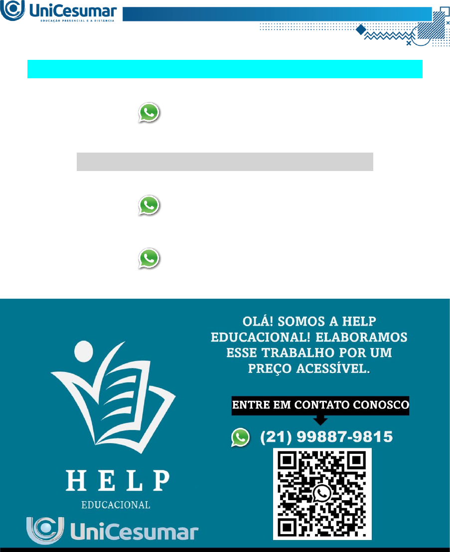 <p>MAPA – LOG - NEGÓCIOS ELETRÔNICOS - 54_2024</p><p>(21) 99887-9815</p><p>ASSESSORIA NOS SEUS TRABALHOS</p><p>(21) 99887-9815</p><p>(21) 99887-9815</p><p>A produção intensa de conhecimento científico e tecnológico vivenciada pela sociedade atual-</p><p>mente dá a esta uma característica que lhe permite a denominação de sociedade do conheci-</p><p>mento (CASTELLS, 2002). Sob este prisma, esta sociedade tem na informação o alicerce de</p><p>seu desenvolvimento, pois é ela que viabiliza a aquisição e geração de conhecimentos. Desse</p><p>modo, seja no âmbito científico, tecnológico, social ou econômico, a sociedade faz da informa-</p><p>ção um fator determinante para orientar suas ações.</p><p>O reconhecimento do seu valor e da sua influência no funcionamento e no desenvolvimento da</p><p>sociedade faz da informação um tema de grande interesse nos estudos científicos e tecnológi-</p><p>cos. Entretanto a condução desses estudos não se constitui uma tarefa fácil, pois a informação</p><p>é um conceito que ainda gera diferentes entendimentos, fato este que pode ser amplamente</p><p>identificado na literatura sobre o tema.</p><p>Nos estudos e aplicações relacionados à informação é possível observar um amplo leque de</p><p>conceitos sobre o tema, incluindo diversas categorizações em diferentes contextos. Este quadro</p><p>conceitual resulta das características intrínsecas da informação, mas também do fato desta, en-</p><p>quanto fenômeno, estar presente como parte indissociável do processo de comunicação.</p><p>A fim de complementar, para as empresas, que almejam a competitividade no mercado em que</p><p>atuam, a informação é um insumo deveras importante na condução de seus negócios. Todavia</p><p>não há como tratar a informação nas organizações sem falar dos sistemas de informação, mais</p><p>ainda, dos sistemas de informação informatizados, pois estes são suportes cada vez mais im-</p><p>prescindíveis ao processo administrativo das organizações.</p><p>Assim, saber quais sistemas de informação são adequados para as necessidades da organiza-</p><p>ção é fato relevante na gestão de seus negócios. Entretanto, esse discernimento não se apre-</p><p>senta como uma tarefa fácil diante dos inúmeros tipos de sistemas de informação apontados na</p><p>literatura sobre o tema que, por vezes se apresentam repetitivos, redundantes ou extremamente</p><p>subjetivos em seus conceitos.</p><p>Fonte: JANNUZZI, C. A. S. C.; FALSARELLA, O. M.; SUGAHARA, C. R. Sistema de informação:</p><p>um entendimento conceitual para a sua aplicação nas organizações empresariais. Perspectivas</p><p>em Ciência da Informação, v. 19, n. 4, p. 94-117, 2014.</p><p>Um sistema de informação é considerado um conjunto de componentes ou módulos inter-relaci-</p><p>onados que possibilitam a entrada ou coleta de dados, seu processamento e a geração de infor-</p><p>mações necessárias à tomada de decisões voltadas ao planejamento, desenvolvimento e acom-</p><p>panhamento de ações.</p><p>Fonte: SAES, Danillo Xavier.; PAPPA, Márcia.; ALBUQUERQUE, Ricardo Azenha Loureiro. Ne-</p><p>gócios Eletrônicos. Maringá: UniCesumar, 2023.</p><p>A partir do texto apresentado acima, bem como nas aulas conceituais ou ao vivo, e, especial-</p><p>mente, o livro didático da disciplina a respeito de sistema de informação, responda o que é soli-</p><p>citado a seguir:</p><p>a) Cite e descreva as três funções básicas de um sistema de informação.</p><p>b) Considerando os sistemas empresariais, apresente as diferenças e um exemplo prático entre</p><p>os sistemas aberto e fechado.</p><p>c) Apresente e cite exemplos de cada um dos cinco recursos de um sistema de informação.</p><p>Orientações para desenvolver sua atividade MAPA:</p><p>1. Leia o livro da disciplina;</p><p>2. Assista às aulas conceituais e ao vivo;</p><p>3. Baixe o "Modelo de entrega do MAPA", disponível no ambiente Studeo na pasta “Material da</p><p>Disciplina” e preencha corretamente todos os campos solicitados;</p><p>4. Anexe seu “Modelo de entrega do MAPA”, respondido, no espaço específico da atividade</p><p>MAPA;</p><p>5. Lembre-se de clicar em “Finalizar” para efetivar sua participação.</p><p>6. Caso utilize o material de outros autores não se esqueça de referenciar corretamente, pois o</p><p>uso de trechos ou textos não referenciados será considerado plágio.</p><p>OLÁ! SOMOS A HELP EDUCACIONAL!</p><p>ELABORAMOS ESSE TRABALHO POR UM PREÇO</p><p>ACESSÍVEL.</p><p>ENTRE EM CONTATO CONOSCO</p><p>(21) 99887-9815</p>