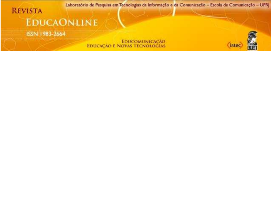 <p>Volume 7 - No 1 - Janeiro/Abril de 2013</p><p>101</p><p>Universidade Federal do Rio de Janeiro – Escola de Comunicação</p><p>Laboratório de Pesquisa em Tecnologias da Informação e da Comunicação – LATEC/UFRJ</p><p>Tecnologias Móveis: o uso do celular como suporte para a</p><p>educação</p><p>DOI: 10.18247/1983-2664/educaonline.v7n1p101-115</p><p>João Batista Bottentuit Junior</p><p>Universidade Federal do Maranhão - UFMA</p><p>jbbj@terra.com.br</p><p>Romulo Fernando Lemos Gomes</p><p>Instituto Federal do Maranhão - IFMA</p><p>romulogomes83@gmail.com</p><p>Resumo</p><p>Neste artigo, apresenta-se resultado de levantamento bibliográfico sobre informação</p><p>móvel. Inicialmente, busca-se entender a conceituação na área, visto que</p><p>terminologias como “tecnologia móvel” são comumente confundidas com tecnologia</p><p>sem fio, por exemplo, apesar das diferenças. Em seguida, são expostas e analisadas</p><p>experiências de uso de dispositivos móveis, em situações de m-learning. Por fim,</p><p>ganha destaque o framework VirTraM, elaborado para construir aplicações</p><p>educacionais em dispositivos móveis com recursos de realidade virtual. A pesquisa</p><p>permitiu concluir que o celular é um meio privilegiado, na atualidade, para</p><p>disponibilização de conteúdo educativo, no lugar em que o usuário esteja.</p><p>Palavras chave: Tecnologia Móvel; educação; realidade virtual; celular.</p><p>mailto:jbbj@terra.com.br</p><p>mailto:romulogomes83@gmail.com</p><p>Volume 7 - No 1 - Janeiro/Abril de 2013</p><p>102</p><p>Universidade Federal do Rio de Janeiro – Escola de Comunicação</p><p>Laboratório de Pesquisa em Tecnologias da Informação e da Comunicação – LATEC/UFRJ</p><p>Mobile Technologies cellphone use as support for education</p><p>Abstract</p><p>This article presents results of bibliographic information on mobile. Initially, we seek</p><p>to understand the concepts in the area, since terminology such as mobile technology</p><p>are commonly confused with wireless technology, for example, despite differences.</p><p>They are then exposed and analyzed experiences of using mobile devices for m-</p><p>learning situations. Finally, the framework is highlighted VirTraM to build educational</p><p>applications developed for mobile devices with virtual reality capabilities. The</p><p>research concluded that the cell is a privileged, nowadays, for providing educational</p><p>content, the place where the user is.</p><p>Keywords: Mobile Technology, education, virtual reality, cellphone.</p><p>Introdução</p><p>Na palma das mãos, o usuário tem televisão, GPS, rádio, acesso a jogos e</p><p>Internet, relógio, calculadora, uma série de outros aplicativos e também pode fazer e</p><p>receber ligações telefônicas com rapidez e facilidade. Os celulares da atualidade</p><p>(também conhecidos como smartphones) permitem uma convergência maior de</p><p>mídia e, por isso, têm ganhado destaque como tecnologia privilegiada na área de</p><p>telecomunicações.</p><p>Os celulares deixaram de ser apenas meios para que as pessoas</p><p>conversem; passaram a incorporar sistemas para entretenimento, compartilhamento</p><p>de dados e também de informação. A pergunta que norteou a produção desta</p><p>pesquisa foi: os instrumentos de informação móvel podem ser utilizados com</p><p>propósito educacional?</p><p>O objetivo foi identificar como as tecnologias de informação móveis, sem</p><p>fios e ubíquas podem servir para fins educativos. Para isso, realizou-se</p><p>levantamento de produções acadêmicas sobre a temática, a fim de verificar as</p><p>experiências que já foram relatadas cientificamente e analisar como sua</p><p>Volume 7 - No 1 - Janeiro/Abril de 2013</p><p>103</p><p>Universidade Federal do Rio de Janeiro – Escola de Comunicação</p><p>Laboratório de Pesquisa em Tecnologias da Informação e da Comunicação – LATEC/UFRJ</p><p>potencialidade tecnológica pode favorecer a dimensão educativa de sua utilização.</p><p>O primeiro passo foi entender a conceituação da diversidade de termos</p><p>que se encontra na área. Em muitos casos, são usados como sinônimos, mas</p><p>possuem aspectos diferenciados. Um esforço para minimizar essa deficiência foi</p><p>empreendido por Saccol & Reinhard (2007), partindo do estado da arte dos estudos</p><p>em Sistema da Informação. Em Lemos (2007), encontra-se uma abordagem não só</p><p>tecnológica, mas social, ao considerar que o celular proporciona nova forma de</p><p>apropriação do espaço público.</p><p>A partir daí verificou-se que para além das facilidades de comunicação e</p><p>troca de dados o celular também pode ser usado para fins educacionais, inclusive</p><p>uma área de estudo encontra-se em grande desenvolvimento, ou seja, o mobile</p><p>learning, m-learning ou aprendizagem móvel. Um grupo de pesquisadores ao redor</p><p>do mundo investigam as potencialidades desta ferramenta em contexto educativo e</p><p>os resultados já provam que esta possibilita grandes possibilidades e experiências</p><p>diferenciadas.</p><p>Ao partir para a análise dos casos, apresenta-se a experiência de m-</p><p>learning. Nela, são materializadas em situações de uso da tecnologia móvel para</p><p>disponibilização de conteúdos complementares que sejam acessados extraclasse ou</p><p>mesmo quando se possibilita a revisão das aulas em áudio (podcasts) ou vídeo</p><p>(vidcast). Isso já era possível nos computadores convencionais, mas a tecnologia</p><p>móvel deu condições de mobilidade, tornando essas atividades ainda mais</p><p>interessantes para os alunos.</p><p>Também a guisa de exemplificação recorre-se ao produto apresentado por</p><p>Marçal et al (2005), o Virtual Training for Mobile Devices (VirTraM) - um framework</p><p>que permite o desenvolvimento de aplicações educacionais, que os autores</p><p>consideram inovadoras, como a possibilidade de transf