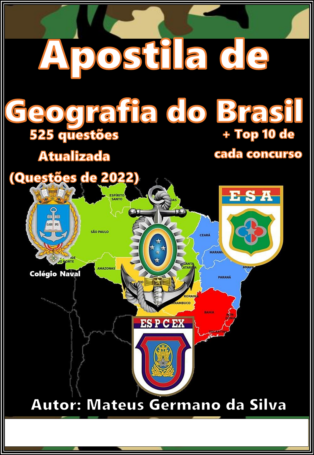 <p>Aluno:</p><p>.</p><p>Autor: Mateus Germano da Silva</p><p>Instagram: @mateus.germano.2001</p><p>Concursos Militares abordados: EsSA, EsPCEx e Colégio Naval</p><p>Sumário</p><p>• Conteúdo Programático de cada concurso ------------------------------------------------- 4</p><p>• Relação de questões por concurso em cada assunto -------------------------------------- 6</p><p>• Top 10 de Geografia de cada Concurso ----------------------------------------------------- 6</p><p>Espaço Natural --------------------------------------------------------------------- 7</p><p>• Características Gerais do Território Brasileiro ------------------------------------------- 7</p><p>➢ Gabarito ---------------------------------------------------------------------------------------- 9</p><p>• Relevo Brasileiro ------------------------------------------------------------------------------- 10</p><p>➢ Gabarito --------------------------------------------------------------------------------------- 15</p><p>• Climas do Brasil -------------------------------------------------------------------------------- 16</p><p>➢ Massas de Ar e Fenômenos Climáticos -------------------------------------------------- 16</p><p>➢ Tipos de Climas ----------------------------------------------------------------------------- 19</p><p>➢ Climogramas --------------------------------------------------------------------------------- 20</p><p>➢ El Niño e La Niña --------------------------------------------------------------------------- 23</p><p>➢ Gabaritos ------------------------------------------------------------------------------------- 24</p><p>• Vegetação e Domínios Morfoclimáticos --------------------------------------------------- 25</p><p>➢ Vegetação ------------------------------------------------------------------------------------ 25</p><p>➢ Domínios Morfoclimáticos ----------------------------------------------------------------- 28</p><p>➢ Gabaritos ------------------------------------------------------------------------------------- 33</p><p>• Hidrografia do Brasil -------------------------------------------------------------------------- 34</p><p>➢ Gabarito --------------------------------------------------------------------------------------- 40</p><p>• Solos do Brasil ---------------------------------------------------------------------------------- 41</p><p>➢ Gabarito --------------------------------------------------------------------------------------- 44</p><p>Espaço Econômico --------------------------------------------------------------- 45</p><p>• Industrialização do Brasil -------------------------------------------------------------------- 45</p><p>➢ Gabarito --------------------------------------------------------------------------------------- 51</p><p>• Fontes de Energia do Brasil ------------------------------------------------------------------ 52</p><p>➢ Gabarito --------------------------------------------------------------------------------------- 60</p><p>• Recursos Minerais Brasileiros --------------------------------------------------------------- 61</p><p>➢ Gabarito --------------------------------------------------------------------------------------- 64</p><p>• Agricultura Brasileira ------------------------------------------------------------------------- 65</p><p>➢ Gabarito --------------------------------------------------------------------------------------- 71</p><p>• Comércio Exterior Brasileiro ---------------------------------------------------------------- 72</p><p>➢ Gabarito --------------------------------------------------------------------------------------- 76</p><p>• Mercosul e América do Sul ------------------------------------------------------------------- 77</p><p>➢ Gabarito --------------------------------------------------------------------------------------- 81</p><p>• Eixos de Circulação do Brasil ---------------------------------------------------------------- 82</p><p>➢ Gabarito --------------------------------------------------------------------------------------- 86</p><p>Espaço Político -------------------------------------------------------------------- 87</p><p>• Formação Territorial e Estrutura Político-Administrativa --------------------------- 87</p><p>➢ Gabarito --------------------------------------------------------------------------------------- 89</p><p>• Políticas Territoriais: Amazônia ------------------------------------------------------------ 90</p><p>➢ Gabarito --------------------------------------------------------------------------------------- 96</p><p>• Políticas Territoriais: Nordeste -------------------------------------------------------------- 97</p><p>➢ Gabarito ------------------------------------------------------------------------------------- 105</p><p>Espaço Humano ----------------------------------------------------------------- 106</p><p>• Demografia do Brasil ------------------------------------------------------------------------ 106</p><p>➢ Gabarito ------------------------------------------------------------------------------------- 112</p><p>• Migrações do Brasil -------------------------------------------------------------------------- 113</p><p>➢ Gabarito ------------------------------------------------------------------------------------- 120</p><p>• Urbanização Brasileira ---------------------------------------------------------------------- 121</p><p>➢ Gabarito ------------------------------------------------------------------------------------- 128</p><p>Conteúdo Programático cada assunto</p><p>EsSA</p><p>• O Espaço Natural, Recursos Estratégicos e Impactos Ambientais</p><p>a) Características gerais do território brasileiro: posição geográfica, limites e fusos horários.</p><p>b) Estrutura geológica, geomorfologia: origem, formas e classificações do relevo.</p><p>c) Tipos de solo