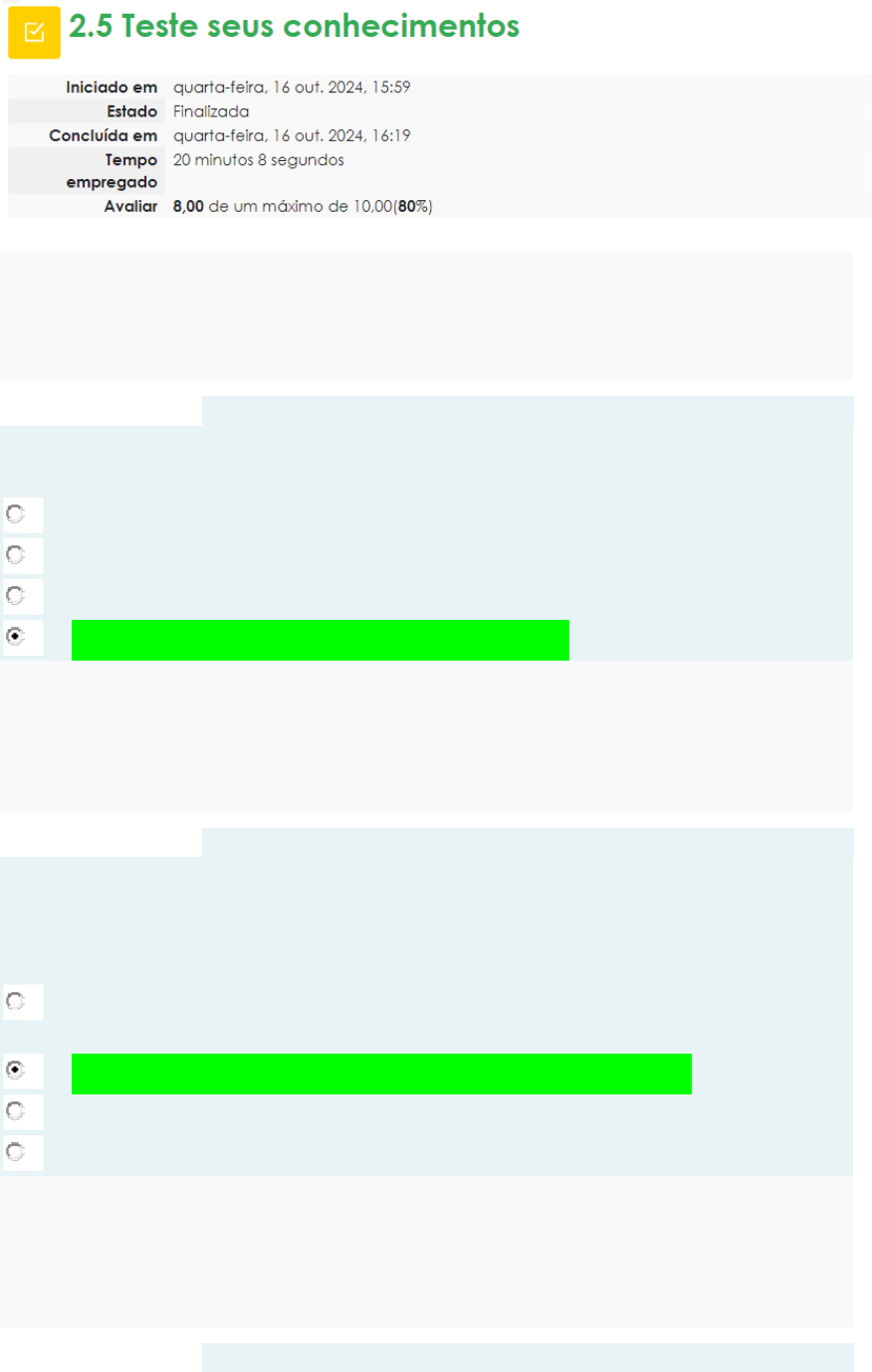 <p>Questão 1</p><p>Correto</p><p>Atingiu 1,00 de 1,00</p><p>Marcar questão</p><p>Texto da questão</p><p>Quando é necessário um patamar intermediário em uma escada?</p><p>Questão 1Resposta</p><p>a. Quando a altura a vencer for inferior a 2 m.</p><p>b. Quando a altura a vencer for inferior a 3 m.</p><p>c. Quando a altura a vencer for superior a 5 m.</p><p>d. Quando a altura a vencer for superior a 3 m.</p><p>Questão 2</p><p>Correto</p><p>Atingiu 1,00 de 1,00</p><p>Marcar questão</p><p>Texto da questão</p><p>O que é o degrau de uma escada?</p><p>Questão 2</p><p>Resposta</p><p>a. Degrau é o trecho horizontal para descanso intermediário na</p><p>escada.</p><p>b. Degrau é o conjunto de dois elementos: piso e espelho.</p><p>c. Degrau é a borda saliente do degrau.</p><p>d. Degrau é uma sequência ininterrupta de pisos.</p><p>Questão 3</p><p>Correto</p><p>Atingiu 1,00 de 1,00</p><p>Marcar questão</p><p>Texto da questão</p><p>Por que árvores, vegetação e figuras humanas são usadas nas fachadas</p><p>ou plantas baixas?</p><p>Questão 3</p><p>Resposta</p><p>a. Permitem estabelecer referências geométricas de dimensões e</p><p>quebrar a rigidez do desenho.</p><p>b. São usadas apenas por questões estéticas.</p><p>c. Não têm utilidade prática, apenas tornam o desenho mais</p><p>agradável.</p><p>d. São obrigatórias em todos os desenhos de fachada.</p><p>Questão 4</p><p>Correto</p><p>Atingiu 1,00 de 1,00</p><p>Marcar questão</p><p>Texto da questão</p><p>O que é o bocel no contexto de uma escada?</p><p>Questão 4Resposta</p><p>a. O bocel é a sequência ininterrupta de degraus.</p><p>b. O bocel é a borda saliente do degrau.</p><p>c. O bocel é o elemento que proporciona a circulação vertical.</p><p>d. O bocel é o trecho horizontal para descanso intermediário.</p><p>Questão 5</p><p>Correto</p><p>Atingiu 1,00 de 1,00</p><p>Marcar questão</p><p>Texto da questão</p><p>O que é a tesoura no contexto de um telhado?</p><p>Questão 5</p><p>Resposta</p><p>a. A tesoura é o sistema de escoamento de águas pluviais do telhado.</p><p>b. A tesoura é o tipo de telha usada na cobertura.</p><p>c. A tesoura é a ferramenta usada para cortar o material do telhado.</p><p>d. A tesoura é o elemento estrutural principal dos telhados.</p><p>Questão 6</p><p>Correto</p><p>Atingiu 1,00 de 1,00</p><p>Marcar questão</p><p>Texto da questão</p><p>Como são representados os rincões?</p><p>Questão 6</p><p>Resposta</p><p>a. Por três linhas.</p><p>b. Por quatro linhas.</p><p>c. Por duas linhas.</p><p>d. Por uma linha única.</p><p>Questão 7</p><p>Incorreto</p><p>Atingiu 0,00 de 1,00</p><p>Marcar questão</p><p>Texto da questão</p><p>Qual é a altura ideal para o espelho de uma escada?</p><p>Questão 7</p><p>Resposta</p><p>a. 17 cm</p><p>b. 18 cm ERRADA</p><p>c. 25 cm</p><p>d. 16 cm ACREDITO QUE SEJA ESSA, JÁ QUE É ENTRE 16 A 18CM</p><p>Questão 8</p><p>Incorreto</p><p>Atingiu 0,00 de 1,00</p><p>Marcar questão</p><p>Texto da questão</p><p>Como as linhas são representadas no desenho de uma fachada?</p><p>Questão 8</p><p>Resposta</p><p>a. A espessura das linhas não tem relação com a distância dos</p><p>elementos do observador.</p><p>b. Todas as linhas são representadas com a mesma espessura,</p><p>independente da distância do observador.</p><p>c. Os elementos mais próximos do observador são traçados com linha</p><p>fina e à medida que os elementos se distanciam do observador, a</p><p>representação das linhas vai se alargando. ERRADA</p><p>d. Os elementos mais próximos do observador são traçados com linha</p><p>grossa e à medida que os elementos se distanciam do observador, a</p><p>representação das linhas vai se estreitando.</p><p>Questão 9</p><p>Correto</p><p>Atingiu 1,00 de 1,00</p><p>Marcar questão</p><p>Texto da questão</p><p>Qual a altura máxima recomendada para os espelhos de uma escada?</p><p>Questão 9</p><p>Resposta</p><p>a. 18 cm</p><p>b. 16 cm</p><p>c. 22 cm</p><p>d. 20 cm</p><p>Questão 10</p><p>Correto</p><p>Atingiu 1,00 de 1,00</p><p>Marcar questão</p><p>Texto da questão</p><p>Qual é o esforço que a linha em uma estrutura de tesoura não deve</p><p>suportar?</p><p>Questão 10</p><p>Resposta</p><p>a. Torção.</p><p>b. Compressão.</p><p>c. Flexão.</p><p>d. Tração.</p><p>Terminar revisão</p><p>https://aprendamais.mec.gov.br/mod/quiz/view.php?id=63203</p>