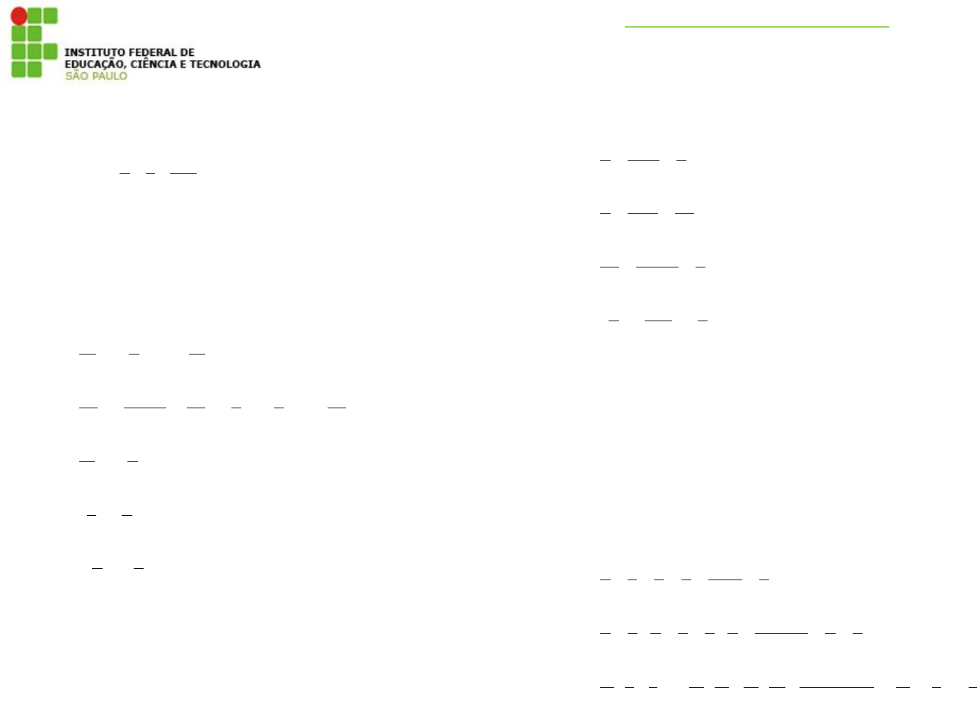 <p>Apostila de Matemática Básica</p><p>Prof. Msc. Luiz Carlos Leal JuniorCampus Sertãozinho</p><p>A fração é própria quando o numerador é menor do que o</p><p>denominador:</p><p>2</p><p>1</p><p>,</p><p>5</p><p>3</p><p>,</p><p>210</p><p>120</p><p>, etc.</p><p>A fração e imprópria quando o numerador é maior que o</p><p>denominador, sendo possível representá-la por um número misto e</p><p>reciprocamente.</p><p>Exemplos:</p><p>a)</p><p>7</p><p>10</p><p>= 1</p><p>7</p><p>3</p><p>pois</p><p>7</p><p>10</p><p>possui resto 3</p><p>b)</p><p>5</p><p>28</p><p>=</p><p>5</p><p>325 +</p><p>=</p><p>5</p><p>25</p><p>+</p><p>5</p><p>3</p><p>= 5</p><p>5</p><p>3</p><p>pois</p><p>5</p><p>28</p><p>possui resto 3</p><p>c)</p><p>3</p><p>11</p><p>= 3</p><p>3</p><p>2</p><p>d) 2</p><p>3</p><p>1</p><p>=</p><p>3</p><p>7</p><p>e) -1</p><p>4</p><p>1</p><p>= -</p><p>4</p><p>5</p><p>16) Propriedade</p><p>Multiplicando ou dividindo os termos de uma fração por um número</p><p>diferente de zero obtém-se uma fração equivalente à inicial.</p><p>Exemplos:</p><p>a)</p><p>4</p><p>2</p><p>2 * 2</p><p>2 * 1</p><p>2</p><p>1 ==</p><p>b)</p><p>20</p><p>15</p><p>5 * 4</p><p>5 * 3</p><p>4</p><p>3 ==</p><p>c)</p><p>3</p><p>2</p><p>10 : 30</p><p>10 : 20</p><p>30</p><p>20 ==</p><p>d)</p><p>2</p><p>1-</p><p>4: 8</p><p>4 : 4-</p><p>8</p><p>4- ==</p><p>17) Soma algébrica de frações</p><p>Reduzem-se ao menor denominador comum e somam-se</p><p>algebricamente os numeradores.</p><p>OBS: O menor denominador comum é o m.m.c. dos denominadores.</p><p>Exemplos:</p><p>a)</p><p>6</p><p>5</p><p>6</p><p>2 3</p><p>6</p><p>2</p><p>6</p><p>3</p><p>3</p><p>1</p><p>2</p><p>1 =+=+=+</p><p>b)</p><p>3</p><p>2</p><p>6</p><p>4</p><p>6</p><p>4 - 5 3</p><p>6</p><p>4 -</p><p>6</p><p>5</p><p>6</p><p>3</p><p>3</p><p>2 -</p><p>6</p><p>5</p><p>2</p><p>1 ==+=+=+</p><p>c)</p><p>3</p><p>11-</p><p>3</p><p>4-</p><p>12</p><p>16-</p><p>12</p><p>24 - 16 9 - 1</p><p>12</p><p>24 -</p><p>12</p><p>16</p><p>12</p><p>9 -</p><p>12</p><p>1 2 -</p><p>3</p><p>4</p><p>4</p><p>3 -</p><p>12</p><p>1 ===+=+=+</p><p>1</p><p>http://www.cefetsp.br/</p>