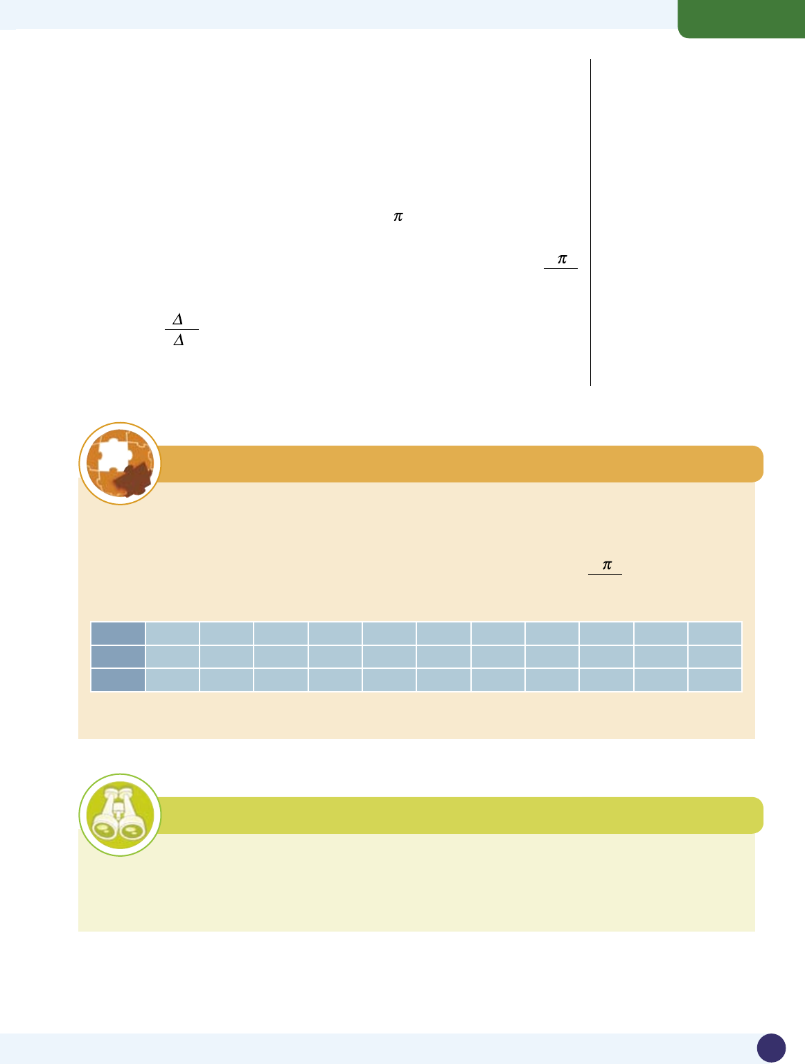 <p>Rodando a Roda</p><p>Matemática</p><p>143</p><p>Para entender melhor, podemos exemplificar com uma situação:</p><p>quando um movimento circular uniforme tem freqüência de 100 Hz, es-</p><p>tamos dizendo que seu período é igual a um centésimo de segundo.</p><p>No movimento circular uniforme, temos a velocidade escalar. Esta</p><p>velocidade permanece constante. Ela é obtida quando dividimos o com-</p><p>primento de qualquer medida delimitada por um arco da circunferên-</p><p>cia pelo tempo gasto por um ponto para percorrê-lo. Sabemos que o</p><p>comprimento da circunferência é dado por 2 r, onde r é o raio. O pon-</p><p>to material percorre esse comprimento num dado intervalo de tempo</p><p>que corresponde ao período. Assim, a velocidade escalar v é: v =</p><p>2 r</p><p>T</p><p>.</p><p>Essa é a mesma fórmula que corresponde, no movimento retilíneo, à</p><p>fórmula v =</p><p>s</p><p>t</p><p>, ou seja, variação do espaço dividido por variação do</p><p>tempo. Essa fórmula possibilita calcular a velocidade escalar quando co-</p><p>nhecemos o período e o raio.</p><p>Vamos calcular a velocidade da roda durante o seu movimento. Como já dissemos, partimos de</p><p>uma situação hipotética em que o raio da roda é igual a 10 metros e a roda leva 36 segundos para efe-</p><p>tuar uma volta completa em velocidade constante. Portanto, use a fórmula v =</p><p>2 r</p><p>T</p><p>e calcule a veloci-</p><p>dade para as possíveis medidas de raio e período expressas na tabela abaixo:</p><p>r 10 11 12 13 14 15 16 17 18 19 20</p><p>T 24 30 36 42 48 54 60 66 72 78 84</p><p>v</p><p>Lembre-se de que, nesse caso, a velocidade é medida em m/s (metros por segundos).</p><p>ATIVIDADE</p><p>Até que velocidade em m/s o ser humano suporta de forma que ele desça da roda gigante sem a</p><p>sensação de tontura?</p><p>PESQUISA</p>