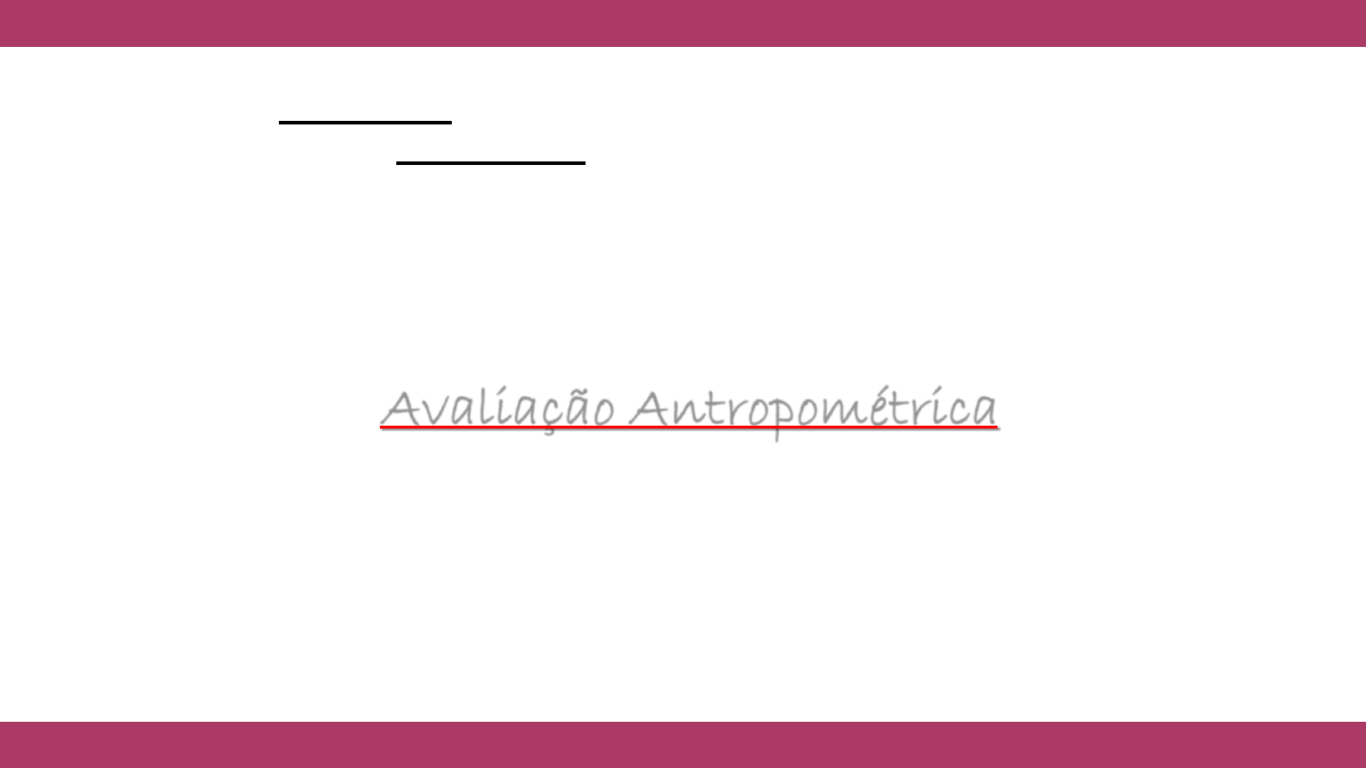 <p>Avaliação Antropométrica</p><p>CENTRO UNIVERSITÁRIO SALESIANO</p><p>Disciplina: Nutrição Clínica – Infância e Adolescência</p><p>Professora: Mayara Freitas Monteiro</p><p>Dados Epidemiológicos</p><p>Dados Epidemiológicos</p><p>Obesidade Infantil</p><p>Avaliação Nutricional</p><p>Avaliação Antropométrica</p><p>Avaliação Dietética</p><p>Avaliação Clínica –</p><p>Exames Físicos</p><p>Exames Bioquímicos</p><p>OBJETIVO:</p><p>Definir Estado Nutricional</p><p>▪ ANTROPOMETRIA: É o método de obtenção das medidas corporais dos indivíduos</p><p>▪ Método de investigação científica em nutrição mais indicado em TODOS os ciclos de</p><p>vida</p><p>▪ OBJETIVOS:</p><p>Essencial para obter o diagnóstico clínico-nutricional da população</p><p>Identificação de determinantes dos desvios nutricionais</p><p>Avaliação da resposta às intervenções</p><p>Apóia as ações de assistência e promoção à saúde</p><p>Norteia a formulação e aperfeiçoamento de políticas públicas</p><p>Avaliação Antropométrica</p><p>ANTHRO = corpo</p><p>METRIA = medida</p><p>VANTAGENS:</p><p>▪ Baixo custo</p><p>▪ Obtenção rápida dos resultados</p><p>▪ Facilidade de aplicação</p><p>▪ Fidedignidade do método e padronização</p><p>▪ Portátil</p><p>▪ Técnica não invasiva</p><p>▪ Aplicável em todas as fases da vida</p><p>LIMITAÇÕES:</p><p>▪ Não identificam deficiências nutricionais de vitaminas e minerais</p><p>▪ Olhar simplista sobre a avaliação → Pode interferir em erros de medição e</p><p>consequentemente de diagnóstico nutricional</p><p>Avaliação Antropométrica</p><p>▪ Avaliador capacitado</p><p>▪ Técnica correta de coleta</p><p>▪ Precisão das medidas</p><p>▪ Ambiente apropriado (manutenção da privacidade do paciente)</p><p>▪ Equipamentos calibrados</p><p>▪ Definição prévia dos protocolos que serão utilizados</p><p>▪ Aferição da medida sempre do mesmo lado do corpo</p><p>▪ As medidas necessitam ser realizadas de duas a três vezes</p><p>▪ Registrar a média de cada medida aferida</p><p>Avaliação Antropométrica</p><p>Estima a composição corporal através das medições (Lohman, 1991):</p><p>▪ Relação entre massa corporal e estatura</p><p>▪ Dobras Cutâneas</p><p>▪ Circunferências Corporais</p><p>Avaliação Antropométrica na Infância e Adolescência</p><p>▪ Expressa o crescimento linear do corpo humano</p><p>▪ Aferida preferencialmente a partir do uso de um estadiômetro</p><p>(fixo ou portátil)</p><p>▪ Caso não tenha estadiômetro: pode-se utilizar uma fita métrica</p><p>(flexível e inelástica) devidamente fixada na parede</p><p>Estatura Corporal</p><p>Estatura Corporal</p><p>Balança mecânica com</p><p>estadiômetro acoplado</p><p>Estadiômetro fixo na parede</p><p>Estadiômetro portátil</p><p>AFERIÇÃO DA ALTURA:</p><p>o Em crianças maiores de dois anos até a idade adulta</p><p>o No momento da mensuração o indivíduo deve estar:</p><p>- Em pé, ereto, encostado no estadiômetro. Com calcanhares, nádegas, escápula e a</p><p>parte posterior da cabeça encostadas no equipamento ou na parede</p><p>- Calcanhares e joelhos juntos</p><p>- Peso distribuído entre os pés</p><p>- Com os braços soltos ao longo do corpo e com a palma das mãos para dentro</p><p>- Cabeça posicionada no plano de Frankfurt (plano horizontal em linha reta)</p><p>- Sem calçados</p><p>- Sem adornos na cabeça (tiaras, presilhas,...)</p><p>- Aferir após a inspiração profunda (no momento da expiração)</p><p>Estatura Corporal</p><p>Estatura Corporal</p><p>Plano horizontal de Frankfurt: considerar que uma linha imaginária</p><p>passa pelas bordas inferiores da abertura dos orbitais (olhos), de</p><p>maneira alinhada com as margens superiores dos condutores</p><p>auditivos externos (orelhas)</p><p>COMPRIMENTO:</p><p>o Quando a medição é realizada em decúbito</p><p>dorsal (deitado, de ventre para cima)</p><p>o Aferição realizada em crianças até dois</p><p>anos de idade (mesmo que elas já fiquem de</p><p>pé) ou em crianças menores de 1 metro</p><p>o Utilização do infantômetro ou régua</p><p>antropométrica</p><p>Estatura Corporal</p><p>Estimativa da Estatura Corporal</p><p>Para 2 a 12 anos:</p><p>Estimativa da Estatura Corporal</p><p>Estatura Alvo:</p><p>Estimativa de Velocidade de Crescimento</p><p>▪ É a soma de todos os componentes corpóreos:</p><p>(massa óssea, massa muscular, massa adiposa e massa residual)</p><p>▪ Não discrimina a composição corporal, composição hídrica ou as diferenças ósseas</p><p>do indivíduo</p><p>▪ Aferição em: balanças mecânicas de plataforma, balanças eletrônicas, balanças</p><p>pediátricas ou estimado a partir de equações que levam em consideração outras</p><p>medidas antropométricas.</p><p>▪ No momento da pesagem o indivíduo deve:</p><p>✓ Manter-se ereto e imóvel</p><p>✓ Com os braços ao longo do corpo</p><p>✓ Pés juntos e sem calçados</p><p>✓ Vestindo apenas roupas leves.</p><p>✓ O equipamento precisa estar calibrado</p><p>Peso Corporal</p><p>Balança mecânica</p><p>Precisão de 100g ou menos</p><p>Peso Corporal</p><p>Balança pediátrica</p><p>Precisão de 10 gramas ou menos</p><p>Balança suspensa</p><p>Pesando crianças maiores de 2 anos</p><p>Pesando crianças maiores de 2 anos</p><p>Pesando crianças menores de 2 anos ou com até 16 kg</p><p>Pesando crianças menores de 2 anos ou com até 16 kg</p><p>Pesando crianças menores de 2 anos ou com até 16 kg</p><p>Índice de Massa Corporal</p><p>▪ A criança A.B.C., sexo feminino, 5 anos, foi à consulta nutricional e após a avaliação</p><p>antropométrica a nutricionista obteve as seguintes informações:</p><p>▪ Peso corporal: 20 Kg</p><p>▪ Altura: 1,15 m</p><p>▪ Qual o IMC da criança?</p><p>Índice de Massa Corporal</p><p>UNIDADE DE MEDIDA: Kg/m²</p><p>▪ A criança A.B.C., sexo feminino, 5 anos, foi à consulta nutricional e após 