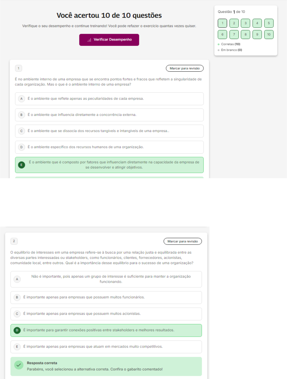 <p>Administração Wyden – Exercício Respondido- Princípios de Gestão- Pensamento sistêmico</p><p>É no ambiente interno de uma empresa que se encontra pontos fortes e fracos que refletem a singularidade de cada</p><p>organização. Mas o que é o ambiente interno de uma empresa?</p><p>O equilíbrio de interesse em uma empresa refere-se a busca por uma relação justa e equilibrada entre as diversas partes</p><p>interessadas ou stakeholders, como funcionários, clientes, fornecedores, acionistas, comunidade local, entre outros.</p><p>Qual é a importância desse equilíbrio para o sucesso de uma organização?</p><p>O Banco LUCROS S/S. adquiriu, há um mês, uma empresa de software, que possuía 15% do mercado de programas de</p><p>segurança bancária. Após uma análise organizacional, percebeu-se que a expansão desejada não ocorria em razão da</p><p>falta de agressividade da empresa e de sua estrutura verticalizada e inflexível. O Banco decidiu, então, implementar uma</p><p>transformação interna para tornar-se uma organização com forte capacidade de adaptação as novas tendências de</p><p>mercado. Assim, será necessário que a empresa:</p><p>Fernando reconhece as limitações do modelo de gestão, excessivamente ultrapassado, existente em seu local de</p><p>trabalho, e, por essa razão, pretende discutir tais problemas com sua equipe na próxima reunião. Na pauta desta</p><p>reunião, dever (á) ão constar como problema (s) à ser(em) resolvido (s):</p><p>João Ribeiro é diretor de uma empresa de médio porte que atua em um segmento de produtos químicos.</p><p>Recentemente, ele participou de um fórum com outros executivos no qual foram discutidas mudanças nas normas</p><p>vigentes do segmento, bem como um possível aumento de tributação (impostos). É importante que João acompanhe</p><p>esses aspectos que estão relacionados as:</p><p>Hard skills e soft skills duas categorias de habilidades que são importantes para o sucesso profissional em diferentes</p><p>áreas e saber diferenciá-las é fundamental. Sobre o tema, assinale a alternativa correta</p><p>Das situações a seguir, qual caracteriza uma mudança que está ocorrendo diante da nova ordem organizacional?</p><p>A administração é uma ciência que tem como objetivo de estudo a organização. Segundo Sobral e Peci (SOBRAL, Felipe,</p><p>PECI, Alketa. Administração: Teoria e prática no contexto brasileiro. 2. ed. São Paulo: Pearson, 2013) qual é a definição de</p><p>organização?</p><p>Um dos desafios do gestor contemporâneo é ter capacidade para gerir organizações em ambientes mutáveis e</p><p>turbulentos. As pressões do ambiente externo causam impacto no gerenciamento das empresas e as principais</p><p>mudanças necessárias envolvem:</p><p>O equilíbrio de interesse em uma empresa refere-se a busca por uma relação justa e equilibrada entre as diversas partes</p><p>interessadas ou stakeholders, como funcionários, clientes, fornecedores, acionistas, comunidade local, entre outros.</p><p>Qual é a importância desse equilíbrio para o sucesso de uma organização?</p>