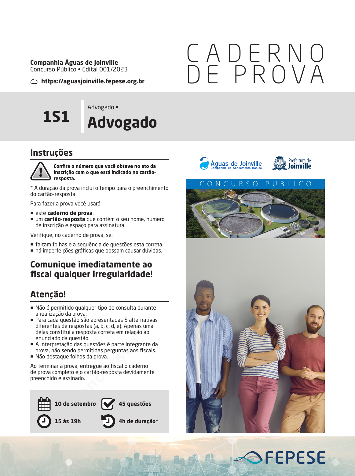 <p>pcimarkpci MDAwMDowMDAwOjAwMDA6MDAwMDowMDAwOmZmZmY6YzkxMDpjMzEx:VGh1LCAxNyBPY3QgMjAyNCAxMjo1MDozNyAtMDMwMA==</p><p>www.pciconcursos.com.br</p><p>C A D E R N O</p><p>D E P R O V A</p><p>Companhia Águas de Joinville</p><p>Concurso Público • Edital 001/2023</p><p>https://aguasjoinville.fepese.org.br</p><p>1S1</p><p>Advogado •</p><p>Advogado</p><p>Instruções</p><p>Confira o número que você obteve no ato da</p><p>inscrição com o que está indicado no cartão-</p><p>resposta.</p><p>* A duração da prova inclui o tempo para o preenchimento</p><p>do cartão-resposta.</p><p>Para fazer a prova você usará:</p><p>� este caderno de prova.</p><p>� um cartão-resposta que contém o seu nome, número</p><p>de inscrição e espaço para assinatura.</p><p>Verifique, no caderno de prova, se:</p><p>� faltam folhas e a sequência de questões está correta.</p><p>� há imperfeições gráficas que possam causar dúvidas.</p><p>Comunique imediatamente ao</p><p>fiscal qualquer irregularidade!</p><p>Atenção!</p><p>� Não é permitido qualquer tipo de consulta durante</p><p>a realização da prova.</p><p>� Para cada questão são apresentadas 5 alternativas</p><p>diferentes de respostas (a, b, c, d, e). Apenas uma</p><p>delas constitui a resposta correta em relação ao</p><p>enunciado da questão.</p><p>� A interpretação das questões é parte integrante da</p><p>prova, não sendo permitidas perguntas aos fiscais.</p><p>� Não destaque folhas da prova.</p><p>Ao terminar a prova, entregue ao fiscal o caderno</p><p>de prova completo e o cartão-resposta devidamente</p><p>preenchido e assinado.</p><p>10 de setembro</p><p>15 às 19h</p><p>45 questões</p><p>4h de duração*</p><p>C O N C U R S O P Ú B L I C O</p><p>pcimarkpci MDAwMDowMDAwOjAwMDA6MDAwMDowMDAwOmZmZmY6YzkxMDpjMzEx:VGh1LCAxNyBPY3QgMjAyNCAxMjo1MDozNyAtMDMwMA==</p><p>www.pciconcursos.com.br</p><p>.</p><p>pcimarkpci MDAwMDowMDAwOjAwMDA6MDAwMDowMDAwOmZmZmY6YzkxMDpjMzEx:VGh1LCAxNyBPY3QgMjAyNCAxMjo1MDozNyAtMDMwMA==</p><p>www.pciconcursos.com.br</p><p>Página 3</p><p>Companhia Águas de Joinville • Concurso Público • Edital 001/2023</p><p>1S1 Advogado • Advogado</p><p>Língua Portuguesa 10 questões</p><p>Texto 1</p><p>Caracterização Pluviométrica</p><p>Em um balanço hídrico, que representa a contabili-</p><p>dade entre entradas e saídas de água de uma bacia</p><p>hidrográfica, a precipitação apresenta-se como a</p><p>principal componente de entrada, sendo as saídas</p><p>definidas por processos de evapotranspiração e escoa-</p><p>mento. O balanço é feito em termos de valores médios</p><p>das variáveis, considerando essas médias obtidas para</p><p>um período longo, o que, muitas vezes, acaba por</p><p>inviabilizar os estudos, devido à escassez de dados.</p><p>Metodologias baseadas nas precipitações e suas rela-</p><p>ções com as variáveis do balanço hídrico podem ser</p><p>empregadas para as estimativas de recarga natural em</p><p>regiões com pouca disponibilidade de dados. Estudo</p><p>desenvolvido pelo New Jersey Geological Survey, des-</p><p>crito por Charles et al. (1993), emprega um balanço</p><p>hídrico no solo, no qual se assume que toda água</p><p>infiltrada que se move abaixo da zona das raízes con-</p><p>tribui para a recarga. A estimativa da recarga é obtida</p><p>a partir da precipitação subtraindo-se a evapotrans-</p><p>piração real, o escoamento superficial e a variação do</p><p>armazenamento de água no solo, tornando-se neces-</p><p>sário proceder a quantificação destes componentes</p><p>num período coincidente de dados.</p><p>Alguns modelos hidrológicos aplicados para a estima-</p><p>tiva das variáveis do balanço hídrico utilizam dados</p><p>diários e pontuais de entrada, sendo necessário o</p><p>acúmulo em nível mensal ou anual e correções para</p><p>ajustes em nível de representação espacial, princi-</p><p>palmente no caso de variáveis que sofrem bastante</p><p>influência em regiões de relevo acidentado, como é o</p><p>caso da precipitação.</p><p>WESCHENFELDER, Adriana Buri; PICKBRENNER, Karine; MATTIUZI,</p><p>Camila Dalla Porta. Disponível em: . Acesso em: 05 de jul 2023. Fragmento adaptado.</p><p>1. Quanto à tipologia e ao gênero, o texto 1 caracteri-</p><p>za-se como:</p><p>a. SQUARE Narrativa • crônica</p><p>b. SQUARE Injuntiva • monografia</p><p>c. SQUARE Descrição • reportagem</p><p>d. Check-square Dissertação expositiva • artigo científico</p><p>e. SQUARE Dissertação argumentativa • resenha</p><p>2. Em relação ao texto 1, é correto o que se afirma em:</p><p>a. Check-square Em regiões nas quais há escassez de dados, a</p><p>estimativa de recarga natural de água pode ser</p><p>feita com base nas precipitações e suas rela-</p><p>ções com as variáveis do balanço hídrico.</p><p>b. SQUARE Para estimativas das variáveis do balanço</p><p>hídrico, é suficiente considerar os níveis diários</p><p>e mensais de precipitação pluvial, independen-</p><p>temente do relevo topográfico.</p><p>c. SQUARE As saídas definidas por processos de evapo-</p><p>transpiração e escoamento são, em geral, des-</p><p>consideradas na contabilidade dos níveis das</p><p>bacias hidrográficas, para as quais a contribui-</p><p>ção mais relevante advém do armazenamento</p><p>de águas no solo.</p><p>d. SQUARE A quantificação dos componentes pluviométri-</p><p>cos acumulados mensalmente são suficientes</p><p>para avaliar a média da recarga de volumes das</p><p>bacias hidrográficas.</p><p>e. SQUARE Um estudo desenvolvido pelo New Jersey Geo-</p><p>logical Survey, que foi descrito individualmente</p><p>por Charles em 1993, revela que a água infil-</p><p>trada no solo pouco contribui para a correção</p><p>dos indicadores hidrográficos.</p><p>3. Os dois períodos abaixo retratam situações diver-</p><p>sas. Combine-os com as afirmativas que seguem.</p><p>Coluna 1 Períodos</p><p>1. Não soubemos das campanhas 
