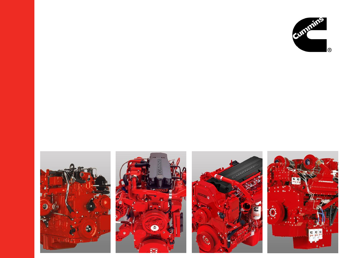 <p>Curso de Familiarização do motor</p><p>QSB6.7/4.5 CM850</p><p>QSB6.7 QSB4.5</p><p>QSB Tier III</p><p>2</p><p>Arquitetura QSB6.7 / QSB4.5</p><p> Controle de emissões sem EGR, sem pós-tratamento</p><p> Sistema de combustível Bosch Common Rail de alta pressão</p><p> ECM CM850 - resfriado a ar</p><p> Entrada de ar Turbocompressor e pós-arrefecimento Ar-Ar</p><p>Arquitetura comum entre as bases dos motores:</p><p> Disposição dos cilindros em linha</p><p> Trem de engrenagens Traseira</p><p> Volume 6.7L (6 cilindros) e 4.5L (4 cilindros)</p><p> Cabeçote 24 válvulas / 16 válvulas</p><p> Junta do cabeçote Desenhada em Aço</p><p> Pistões Alumínio</p><p> Biela fraturada</p><p> Damper Viscoso ou Borracha (depende da potência)</p><p>3</p><p>1. Entrada de ar</p><p>2. Acionamento do ventilador</p><p>3. Módulo eletrônico de controle</p><p>(ECM)</p><p>4. Sensor da rotação do motor</p><p>(árvore de manivelas)</p><p>5. Vareta Medidora do Nível de</p><p>Óleo</p><p>6. Filtro de combustível</p><p>7. Amortecedor de vibrações</p><p>8. Bomba d'água</p><p>9. Motor de partida</p><p>10.Tensionador da correia</p><p>11.Alternador</p><p>12.Saída de líquido de arrefecimento</p><p>do motor</p><p>13.Sensor da temperatura do líquido</p><p>de arrefecimento</p><p>14.Saída de ar do turbocompressor</p><p>Vista frontal</p><p>4</p><p>1. Common rail</p><p>2. Sensor de pressão e de</p><p>temperatura do ar de admissão</p><p>3. Bomba de combustível Bosch®</p><p>4. Carcaça do volante do motor</p><p>5. Interruptor de pressão do óleo</p><p>6. Filtro de combustível</p><p>7. Bujão de dreno do cárter de óleo</p><p>8. Sensor da pressão barométrica</p><p>9. Sensor da rotação do motor</p><p>(árvore de manivelas)</p><p>10.Módulo eletrônico de controle</p><p>(ECM)</p><p>11.Sensor de posição do motor</p><p>(eixo comando de válvulas)</p><p>12.Entrada de admissão de ar</p><p>13.Sensor da pressão C.Rail</p><p>14.Vareta Medidora do Nível de</p><p>Óleo</p><p>Vista admissão</p><p>5</p><p>1. Saída de líquido de</p><p>arrefecimento do motor</p><p>2. Alternador</p><p>3. Entrada de líquido de</p><p>arrefecimento</p><p>4. Arrefecedor do óleo</p><p>lubrificante</p><p>5. Filtro de óleo</p><p>6. Bujão de dreno do cárter</p><p>de óleo</p><p>7. Saída do escape do</p><p>turbocompressor</p><p>8. Motor de partida</p><p>9. Carcaça do volante do</p><p>motor</p><p>10.Entrada do compressor</p><p>do turbocompressor</p><p>Vista escape</p><p>6</p><p>1. Suporte traseiro de içamento do motor</p><p>2. Saída do escape do turbocompressor</p><p>3. Furos de montagem da embreagem</p><p>4. Carcaça do volante do motor</p><p>5. Volante do motor/flexplate</p><p>6. Tubo de respiro do cárter</p><p>7. Linha de dreno do injetor</p><p>Vista traseira</p><p>7</p><p>1. Válvula wastegate do</p><p>turbocompressor</p><p>2. Respiro do cárter</p><p>3. Sensor da pressão barométrica.</p><p>4. Sensor da pressão na common</p><p>rail</p><p>5. Common rail</p><p>6. Linhas de combustível de alta</p><p>pressão</p><p>7. Tampa de abastecimento de óleo</p><p>8. Roda sinalizadora</p><p>9. Amortecedor de vibrações</p><p>10.Sensor da temperatura do líquido</p><p>de arrefecimento</p><p>11.Saída de líquido de arrefecimento</p><p>do motor</p><p>12.Alternador</p><p>13.Coletor de escape</p><p>14.Válvula de alívio de pressão na</p><p>common rail</p><p>Vista superior</p><p>8</p><p>Bloco de cilindros</p><p>• Cavidade da capa do tucho fechada</p><p>• Esculpido / nervuras do bloco de</p><p>alta rigidez</p><p>2 posições para instalação</p><p>(opcional) de aquecedor</p><p>9</p><p>Bloco de cilindro</p><p>Passagem do líquido</p><p>Os furos de cilindro estão ligados entre si</p><p>internamente. Portanto o refrigerante não</p><p>circula completamente em volta de cada</p><p>furo de cilindro.</p><p>Há passagens de ventilação entre cada</p><p>cilindro que circulam refrigerante para a</p><p>cabeça do cilindro.</p><p>10</p><p>Fluxo em torno das camisas frente / trás e em direção a parte</p><p>superior com a saída controlada</p><p>Fluxo de arrefecimento</p><p>11</p><p> Os motores QSB 4.5 L e 6,7 L podem utilizar um</p><p>retentor de virabrequim estilo lábio, ou tipo K7.</p><p>Retentores do virabrequim</p><p>12</p><p>Sensor do comando está na</p><p>frente do motor.</p><p>Alterações na caixa de engenagem</p><p>traseira</p><p>13</p><p>Trem de engrenagens traseira completo</p><p>14</p><p>Virabrequim e engrenagem traseira</p><p>– A engrenagem traseira do virabrequim é montada sob interferência, não</p><p>possui manutenção.</p><p>– Virabrequim pode ser retificado em 0,25 mm, e/ou 0,5 mm.</p><p>15</p><p>Comando e Anel indicador de posição</p><p>– O eixo comando terá um anel indicador de posição montado no eixo de</p><p>comando na parte da frente do motor.</p><p>Anel indicador de posição (#2)</p><p>16</p><p>Bucha de comando</p><p> Desde a produção, as buchas do eixo excêntricos serão instalado na parte</p><p>dianteira e na traseira dos furos de eixo de comando do bloco de cilindros. Furos</p><p>internos não têm bucha.</p><p>17</p><p>Pistões e anéis</p><p> É permitido aumentar o</p><p>diâmetro dos cilindros, devendo</p><p>ser utilizado pistão e anéis sob</p><p>medida.</p><p> Todas as classificações</p><p>possuem J-Jet ( bicos de</p><p>refrigeração)</p><p>18</p><p>Bielas</p><p> Bielas fraturadas.</p><p> As capas inferiores não são</p><p>intercambiáveis.</p><p> Diferentes tipos / fabricantes de</p><p>bielas são usados, dependendo da</p><p>planta em que o motor foi construído.</p><p> Nem todas as bielas são</p><p>intercambiáveis. Ao substituir uma</p><p>biela, certifique-se de que</p><p>corresponda com as demais. Todas</p><p>as bielas do motor devem ser iguais,</p><p>isto é devido a diferença de peso</p><p>entre elas.</p><p>19</p><p>1. Peso de balanceamento na capa da biela</p><p>2. Saliência no lado curto da biela (normalmente usado para fora</p><p>da América do Norte)</p><p>3. Borda 