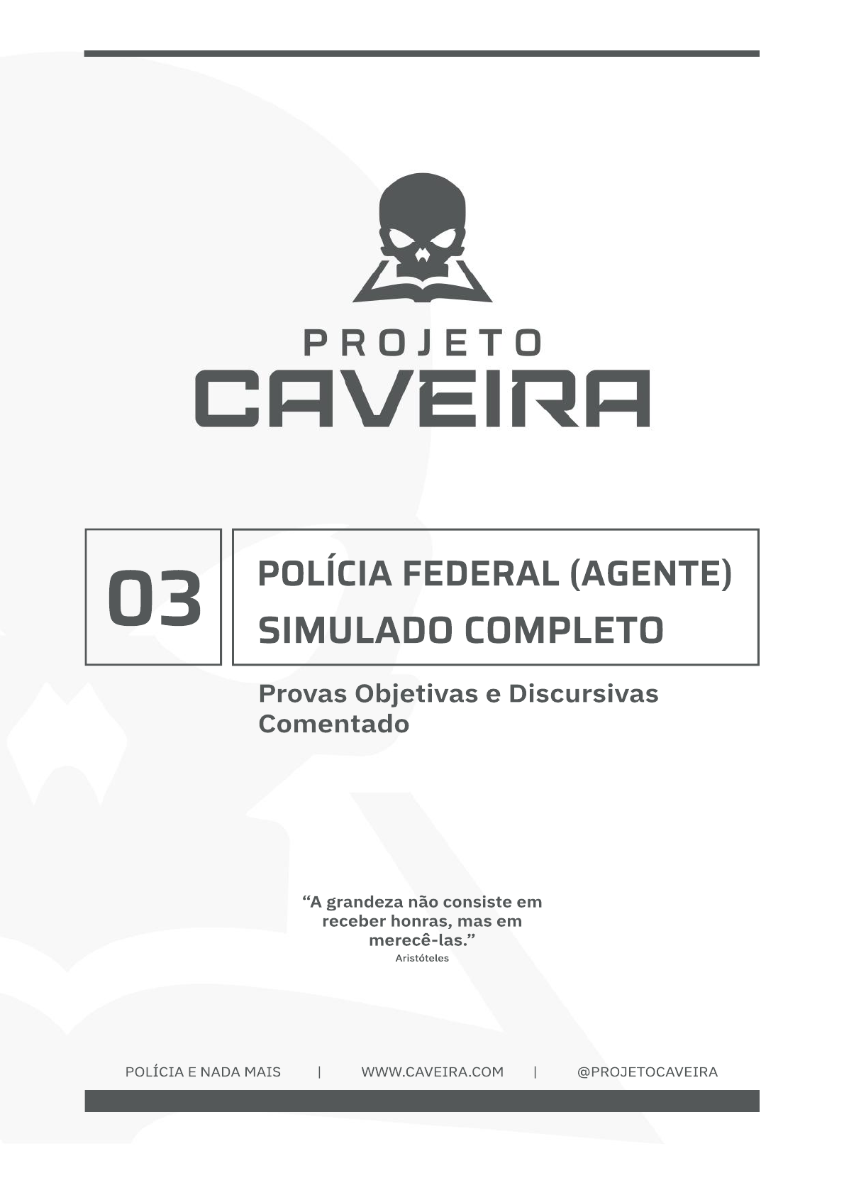<p>03</p><p>Provas Objetivas e Discursivas</p><p>Comentado</p><p>POLÍCIA FEDERAL (AGENTE)</p><p>SIMULADO COMPLETO</p><p>POLÍCIA E NADA MAIS | WWW.CAVEIRA.COM | @PROJETOCAVEIRA</p><p>“A grandeza não consiste em</p><p>receber honras, mas em</p><p>merecê-las.”</p><p>Aristóteles</p><p>1189318.21/08/2024</p><p>462.000.969-53.151945</p><p>GABARITO - 3º SIMULADO COMPLETO - PF</p><p>1 2 3 4 5 6 7 8 9 10</p><p>E E C E E C E C C C</p><p>11 12 13 14 15 16 17 18 19 20</p><p>E C E C C E E C C C</p><p>21 22 23 24 25 26 27 28 29 30</p><p>E C E E C E E C E C</p><p>31 32 33 34 35 36 37 38 39 40</p><p>E E C E E C C E C E</p><p>41 42 43 44 45 46 47 48 49 50</p><p>E C E C E C C E C E</p><p>51 52 53 54 55 56 57 58 59 60</p><p>C E C E E C E C E C</p><p>61 62 63 64 65 66 67 68 69 70</p><p>C E C E C E E C E C</p><p>71 72 73 74 75 76 77 78 79 80</p><p>E C E C E E C E E C</p><p>81 82 83 84 85 86 87 88 89 90</p><p>C E C E C E C E E C</p><p>91 92 93 94 95 96 97 98 99 100</p><p>E C C E C E E C E E</p><p>101 102 103 104 105 106 107 108 109 110</p><p>C E C E C E C E E E</p><p>111 112 113 114 115 116 117 118 119 120</p><p>C E C E C E C C E E</p><p>1189318.21/08/2024</p><p>462.000.969-53.151945</p><p>1</p><p>PROVA DISCURSIVA – PROJETO CAVEIRA</p><p>TEMA 03 – PF</p><p>TEXTO I</p><p>HOJE RECEBI FLORES</p><p>MAIO</p><p>Hoje recebi flores!</p><p>Não é o meu aniversário</p><p>ou nenhum outro dia especial;</p><p>tivemos a nossa primeira discussão ontem à noite,</p><p>ele me disse muitas coisas cruéis que me ofenderam de verdade.</p><p>Mas sei que está arrependido e não as disse a sério,</p><p>porque ele me enviou flores hoje.</p><p>Não é o nosso aniversário ou nenhum outro dia especial.</p><p>[...]</p><p>JULHO</p><p>Ontem à noite bateu-me e ameaçou matar-me.</p><p>Nem a maquiagem ou as mangas compridas poderiam ocultar</p><p>os cortes e golpes que me ocasionou desta vez.</p><p>Não pude ir ao emprego hoje</p><p>porque não queria que se apercebessem.</p><p>Mas eu sei que está arrependido</p><p>porque ele me enviou flores hoje.</p><p>E não era Dia das Mães ou nenhum outro dia.</p><p>AGOSTO</p><p>Ontem à noite ele voltou a bater-me, mas desta vez foi muito pior.</p><p>Se conseguir deixá-lo, o que é que vou fazer?</p><p>Como poderia eu sozinha manter os meus filhos?</p><p>O que acontecerá se faltar o dinheiro? Tenho tanto medo dele!</p><p>Mas dependo tanto dele que tenho medo de o deixar.</p><p>Mas eu sei que está arrependido,</p><p>porque ele me enviou flores hoje.</p><p>SETEMBRO</p><p>Hoje é um dia muito especial: é o dia do meu funeral.</p><p>Ontem finalmente ele conseguiu matar-me. Bateu-me até eu morrer.</p><p>Se ao menos tivesse tido a coragem e a força para o deixar...</p><p>Se tivesse pedido ajuda profissional...</p><p>Hoje não teria recebido flores!</p><p>Autor Desconhecido.</p><p>Com base na reflexão promovida pelo texto acima elencado e nos seus conhecimentos gerais,</p><p>redija um texto dissertativo-expositivo, com até 30 linhas, considerando a seguinte temática:</p><p>O FEMINICÍDIO NA PERSPECTIVA SOCIAL E CULTURAL</p><p>Ao elaborar seu texto, aborde, necessariamente, os aspectos a seguir:</p><p>a) A definição de feminicídio;</p><p>b) A importância da sanção da Lei do Feminicídio;</p><p>c) Ao menos, duas posturas a serem adotadas para reprimir e/ou prevenir a prática dos</p><p>feminicídios.</p><p>1189318.21/08/2024</p><p>462.000.969-53.151945</p><p>https://caveira.com/</p><p>2</p><p>TEMA 03 – COMENTADO – PF</p><p>PONTO DE IGNIÇÃO</p><p>Aquecendo os motores!</p><p>Olá, Caveira! Pronto para treinar para a sua discursiva? O primeiro ponto para o qual você</p><p>deve voltar a sua atenção é quanto ao gênero solicitado pela banca. Com base na sua última</p><p>prova, a banca solicitou um texto com o gênero dissertativo-expositivo, que, aliás, vamos</p><p>treinar hoje.</p><p>O gênero dissertativo-expositivo demanda que você exponha ideias sobre o tema</p><p>solicitado, levando em conta os tópicos apresentados pela banca. Veja bem, Caveira: você não</p><p>deve convencer ninguém sobre nada, mas falar, explicar e/ou apresentar exemplos, dados,</p><p>citações e referências sobre um assunto determinado. O que o avaliador vai observar é o quanto</p><p>você conhece sobre aquele tema específico, dentro dos recortes estabelecidos.</p><p>É, ainda, não é obrigatório, mas, é extremamente recomendado que você adote a</p><p>estrutura introdução-desenvolvimento-conclusão, pois os examinadores também atribuem</p><p>pontos ao atendimento dessa estrutura, típica da dissertação. A banca que vem desenvolvendo</p><p>a sua prova aceita duas formas de apresentação:</p><p>- uma introdução geral sobre o tema e em seguida parágrafos de desenvolvimento que</p><p>respondam às questões;</p><p>OU</p><p>- que o parágrafo introdutório responda ao primeiro quesito questionado e os demais sigam</p><p>sequencialmente apresentando as respostas dos demais questionamentos solicitados.</p><p>Assim, sugerimos que, ao desenvolver suas ideias, você respeite a ordem dos tópicos</p><p>apresentados pela banca, uma vez que é também a ordem que será utilizada pelo examinador</p><p>para procurar a “resposta” em seu texto e porque, geralmente, é a que traz o melhor</p><p>encadeamento lógico.</p><p>E aí, bora treinar?</p><p>APONTAMENTOS PRELIMINARES ☺</p><p>Depois de aquecer os motores... aceleramos.</p><p>Nada mais justo, Caveira!</p><p>Na primeira parte dessa apresentação eu te mostrei como lidar com a estrutura de um</p><p>texto dissertativo-expositivo.</p><p>Só para ajudar a memória, você vai lidar com: introdução – desenvolvimento –</p><p>conclusão.</p><p>Agora nas linhas abaixo, você vai ter a chance de verificar algumas respostas possíveis</p><p>para encaixar no tema proposto. Desde já, eu preciso combinar algumas coisas com você:</p><p>1. As teses e argumentos apresentados são exemplos, apenas;</p><p>2. Você não precisa concordar c