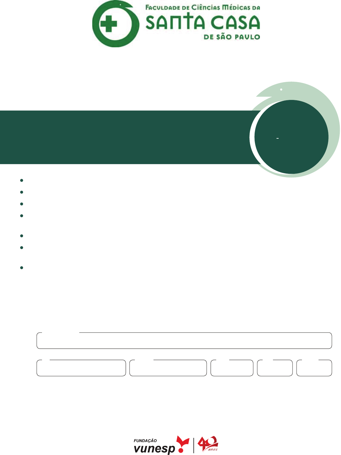 <p>Confira seus dados impressos neste caderno.</p><p>Assine com caneta de tinta preta a Folha de Respostas apenas no local indicado.</p><p>Esta prova contém 60 questões objetivas e uma proposta de redação.</p><p>Para cada questão, o candidato deverá assinalar apenas uma alternativa na Folha de Respostas, utilizando caneta</p><p>de tinta preta.</p><p>Encontra-se neste caderno a Tabela Periódica, que poderá ser útil para a resolução de questões.</p><p>Esta prova terá duração total de 4h e o candidato somente poderá sair do prédio depois de transcorridas 2h,</p><p>contadas a partir do início da prova.</p><p>Ao final da prova, antes de sair da sala, entregue ao fiscal a Folha de Respostas, a Folha de Redação e o Caderno</p><p>de Questões.</p><p>09.06.2019</p><p>Nome do candidato</p><p>Prédio Sala CarteiraInscriçãoRG</p><p>Vestibular</p><p>2o Semestre</p><p>de 2019</p><p>001. PrOVa De CONHeCiMeNtOs Gerais e reDaÇÃO</p><p>Enfermagem, Tecnologia em Radiologia e</p><p>Tecnologia em Sistemas Biomédicos</p><p>2FAVC1901 | 001-CG-Redação</p><p>3 FAVC1901 | 001-CG-Redação</p><p>Leia o poema de Guilherme de Almeida (1890-1969) para</p><p>responder às questões 01 e 02.</p><p>Vida</p><p>Vivo e não vivo. O fio desta vida</p><p>preso em dois pontos se mantém suspenso:</p><p>um, a saudade em mim adormecida,</p><p>outro, a esperança em que meu ser condenso.</p><p>Saudade de algum Céu, visão perdida</p><p>de um Outro Mundo a que não mais pertenço;</p><p>esperança na Terra Prometida,</p><p>essa à qual vão as espirais de incenso.</p><p>Mas, que importa a saudade, se há esperança?</p><p>Já avisto ao longe as plagas1 da bonança</p><p>onde me acenam vitoriosas palmas.</p><p>Vejo uma estrada branca e luminosa</p><p>pela qual vai passando, silenciosa,</p><p>a caravana celestial das almas.</p><p>(Sonetos, 2008.)</p><p>1 plaga: região, país.</p><p>01</p><p>O eu lírico considera a vida</p><p>(A) um instante entre um passado e um futuro imaginados.</p><p>(B) um balanço de bons e maus momentos.</p><p>(C) uma contagem regressiva para a morte.</p><p>(D) um fardo que não vale a pena ser carregado.</p><p>(E) um reflexo empobrecido de um mundo perfeito.</p><p>02</p><p>Os verbos intransitivos possuem sentido completo, isto é,</p><p>não necessitam de complementos.</p><p>O verso em que ocorre esse tipo de verbo é:</p><p>(A) “de um Outro Mundo a que não mais pertenço;”</p><p>(B) “essa à qual vão as espirais de incenso.”</p><p>(C) “Já avisto ao longe as plagas da bonança”</p><p>(D) “onde me acenam vitoriosas palmas.”</p><p>(E) “Vejo uma estrada branca e luminosa”</p><p>QuestÃO</p><p>QuestÃO</p><p>03</p><p>Além das diferentes formas assumidas pelo mito da ida-</p><p>de do ouro, e consequente exaltação da vida campestre, esta</p><p>disposição de espírito se manifesta na diminuição de escala</p><p>do sentimento amoroso, tratado com maior humildade, ou,</p><p>quando não, simplicidade mais acentuada. A poesia bucólica</p><p>se caracteriza por uma delegação poética, a saber, a trans-</p><p>ferência da iniciativa lírica a um pastor fictício. Ao contrário</p><p>do trovador dos Cancioneiros e do sonetista do século XVI,</p><p>o poeta, aqui, não ama, nem mesmo anda com a sua própria</p><p>personalidade; adota um estado pastoril e, portanto, discipli-</p><p>na, sistematizando-a, a sua manifestação individual.</p><p>(Antonio Candido. Formação da literatura brasileira, 1997. Adaptado.)</p><p>O autor apresenta as principais características da poesia</p><p>(A) barroca.</p><p>(B) simbolista.</p><p>(C) árcade.</p><p>(D) parnasiana.</p><p>(E) romântica.</p><p>Leia o texto de Roberto DaMatta para responder às questões</p><p>de 04 a 06.</p><p>No Brasil, como em outras sociedades, há uma classi-</p><p>ficação dos eventos sociais segundo sua ocorrência. Os</p><p>eventos que fazem parte da rotina do quotidiano chamado</p><p>no Brasil de “dia a dia” ou simplesmente “vida”, e os eventos</p><p>que estão situados fora desse “dia a dia” repetitivo e rotinei-</p><p>ro: as “festas”, os “cerimoniais”, as “solenidades”, os “bailes”,</p><p>“congressos”, “reuniões”, “encontros”, “conferências”, etc.,</p><p>onde se chama a atenção para seu caráter aglutinador de</p><p>pessoas, grupos e categorias sociais, sendo por isso mes-</p><p>mo acontecimentos que escapam da rotina da vida diária.</p><p>Tais eventos distinguem-se dos “milagres”, “golpes de sorte”,</p><p>“tragédias”, “dramas”, “desastres”, “acidentes” e “catástrofes”</p><p>por serem previstos. Neste sentido eles se constituem no que</p><p>pode ser chamado de extraordinário construído pela e para a</p><p>sociedade, em oposição aos acontecimentos que igualmente</p><p>suspendem a rotina do quotidiano, mas são marcados pela</p><p>imprevisibilidade, ou seja, são acontecimentos não controla-</p><p>dos pela sociedade. Por isso, podem ser chamados de ex-</p><p>traordinários não previstos pelas normas ou regras sociais,</p><p>sendo sempre referidos como eventos que atingem a socie-</p><p>dade, conforme tornam claro as manchetes dos jornais ao</p><p>anunciarem as catástrofes e tragédias.</p><p>(Carnavais, malandros e heróis, 1979. Adaptado.)</p><p>04</p><p>Segundo o texto, apesar de formarem grupos distintos de</p><p>eventos, “festas” e “catástrofes” se assemelham por</p><p>(A) pertencerem à vida cotidiana.</p><p>(B) serem esporádicos e imprevistos.</p><p>(C) constituírem construções sociais.</p><p>(D) romperem a rotina da vida diária.</p><p>(E) terem o poder de congregar pessoas.</p><p>QuestÃO</p><p>QuestÃO</p><p>4FAVC1901 | 001-CG-Redação</p><p>de filme, quando de repente todos começam a gargalhar e</p><p>há apenas o homem em silêncio. O homem que não com-</p><p>preende. Até enxergar seu reflexo no olhar que o outro lhe</p><p>devolve e ser aniquilado porque tudo o que veem nele não é</p>