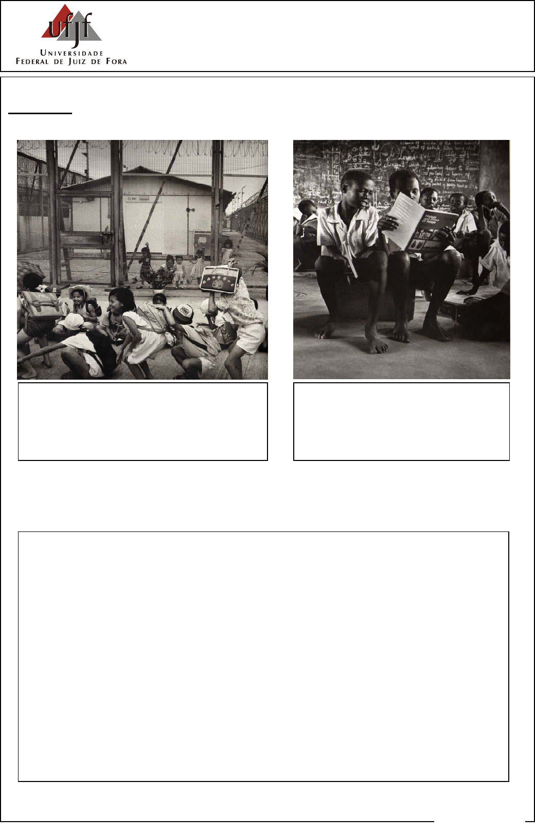 COMISSÃO PERMANENTE DE SELEÇÃO - COPESE PRÓ-REITORIA DE GRADUAÇÃO - PROGRAD CONCURSO VESTIBULAR 2009 – 2ª Fase PROVA DE GEOGRAFIA Pág. 1 de 6 Questão 1: As imagens a seguir fazem parte do livro O berço da desigualdade, com fotos de Sebastião Salgado e textos de Cristovam Buarque. Fonte: BUARQUE, Cristovam & SALGADO, Sebastião. O berço da desigualdade. 2.ed. – Brasília: UNESCO, Grupo Santillana, 2006. “Presas porque os pais emigraram, porque a globalização apenas permite liberdade para mercadorias”. Hong Kong – Escola para crianças vietnamitas em uma prisão. “Nem sapatos nos pés, nem cadeiras na escola, a civilização só globaliza o que lhe dá lucro”. Quênia – Escola na região do Lago Turkana. Explique como a globalização representa a causa fundamental das migrações contemporâneas. ___________________________________________________________ ___________________________________________________________ ___________________________________________________________ ___________________________________________________________ ___________________________________________________________ ___________________________________________________________ ___________________________________________________________ ___________________________________________________________ COMISSÃO PERMANENTE DE SELEÇÃO - COPESE PRÓ-REITORIA DE GRADUAÇÃO - PROGRAD CONCURSO VESTIBULAR 2009 – 2ª Fase PROVA DE GEOGRAFIA Pág. 2 de 6 Questão 2: Leia os fragmentos de textos a seguir. “É importante enxergar a cidade sempre como uma totalidade, independentemente de seu tamanho ou localização. É preciso entendê-la como o lugar da produção e reprodução da vida social e como o lugar da própria vida, compreendendo o homem em todas as dimensões da sua existência, para além do trabalho e do consumo. Ela permite, mais do que qualquer outro lugar, a coexistência dos diferentes, abrigando uma multiplicidade de redes, fluxos, conexões, projetos, representações e interpretações. É importante, outrossim, entendê-la como uma totalidade dentro de outras duas totalidades – o mundo e a formação sócio-espacial (nacional) -, que, por sua vez, se expressam e se concretizam nela”. Fonte: Mônica Arroyo. Le Monde Diplomatique Brasil. São Paulo: Instituto Polis, ago.2008. “Ninguém vive bem em São Paulo. Nem os pobres nem os ricos. [...] Esta cidade precisa ser pensada em escalas de tempo de 20 anos ou mais”. Luiza Erundina Fonte: Maíra Kubik Mano e José Tadeu Arantes. Le Monde Diplomatique Brasil. São Paulo: Instituto Polis, out.2008. Responda: Por que a afirmativa de Luiza Erundina (deputada federal pelo PSB) correlaciona-se com o texto de Mônica Arroyo (doutora em Geografia)? _________________________________________________________ _________________________________________________________ _________________________________________________________ _________________________________________________________ _________________________________________________________ _________________________________________________________ _________________________________________________________ _________________________________________________________ _________________________________________________________ _________________________________________________________ _________________________________________________________ COMISSÃO PERMANENTE DE SELEÇÃO - COPESE PRÓ-REITORIA DE GRADUAÇÃO - PROGRAD CONCURSO VESTIBULAR 2009 – 2ª Fase PROVA DE GEOGRAFIA Pág. 3 de 6 Questão 3: João Guimarães Rosa (1908-1967) inicia o conto Sarapalha do livro Sagarana da seguinte forma: Observe o mapa a seguir. Fonte: http://saude.hsw.uol.com.br/malaria.htm. Acesso em 26/11/2008. a) Como o risco de contrair a malária está associado também às condições de vida da população? ______________________________________________________________ ______________________________________________________________ ______________________________________________________________ ______________________________________________________________ “Tapera de arraial. Ali, na beira do rio Pará, deixaram largado um povoado inteiro: casas, sobradinho, capela; três vendinhas, o chalé, o cemitério; e a rua, sozinha e comprida, que agora nem mais é uma estrada, de tanto que o mato a entupiu. Ao redor, bons pastos, boa gente, terra boa para o arroz. E o lugar já esteve nos mapas, muito antes da malária chegar”. Ela veio de longe, do São Francisco. Um dia, tomou caminho, entrou na boca aberta do Pará, e pegou a subir. Cada ano avançava um punhado de léguas, mais perto, mais perto, pertinho, fazendo medo no povo, porque era sezão da brava – da “tremedeira que não desamontava” – matando muita gente..... FONTE: ROSA, João Guimarães. Sagarana. Rio de Janeiro: Nova Fronteira, 2001. b) No mapa, quais as regiões onde ocorrem os casos de transmissão da malária? ______________________________________________________________ ______________________________________________________________ ______________________________________________________________ ______________________________________________________________ COMISSÃO PERMANENTE DE SELEÇÃO - COPESE PRÓ-REITORIA DE GRADUAÇÃO - PROGRAD CONCURSO VESTIBULAR 2009 – 2ª Fase PROVA DE GEOGRAFIA Pág. 4 de 6 Questão 4: Leia o fragmento de texto a seguir. “O impacto da soja excede em muito a perda direta de áreas naturais convertidas a esse uso da terra, porque somente a soja pode justificar o desenvolvimento da infra- estrutura volumosa necessária para prover transporte para o escoamento da safra e chegada de insumos. Outras formas de uso da terra, como pastagens, ocupam vastas áreas, mas não têm o peso político necessário para induzir o governo a construir oito hidrovias, estradas de ferro e uma rede extensa de rodovias. Muito da porção amazônica do Programa de Aceleração do Crescimento (PAC) dá seqüência a planos anteriores p