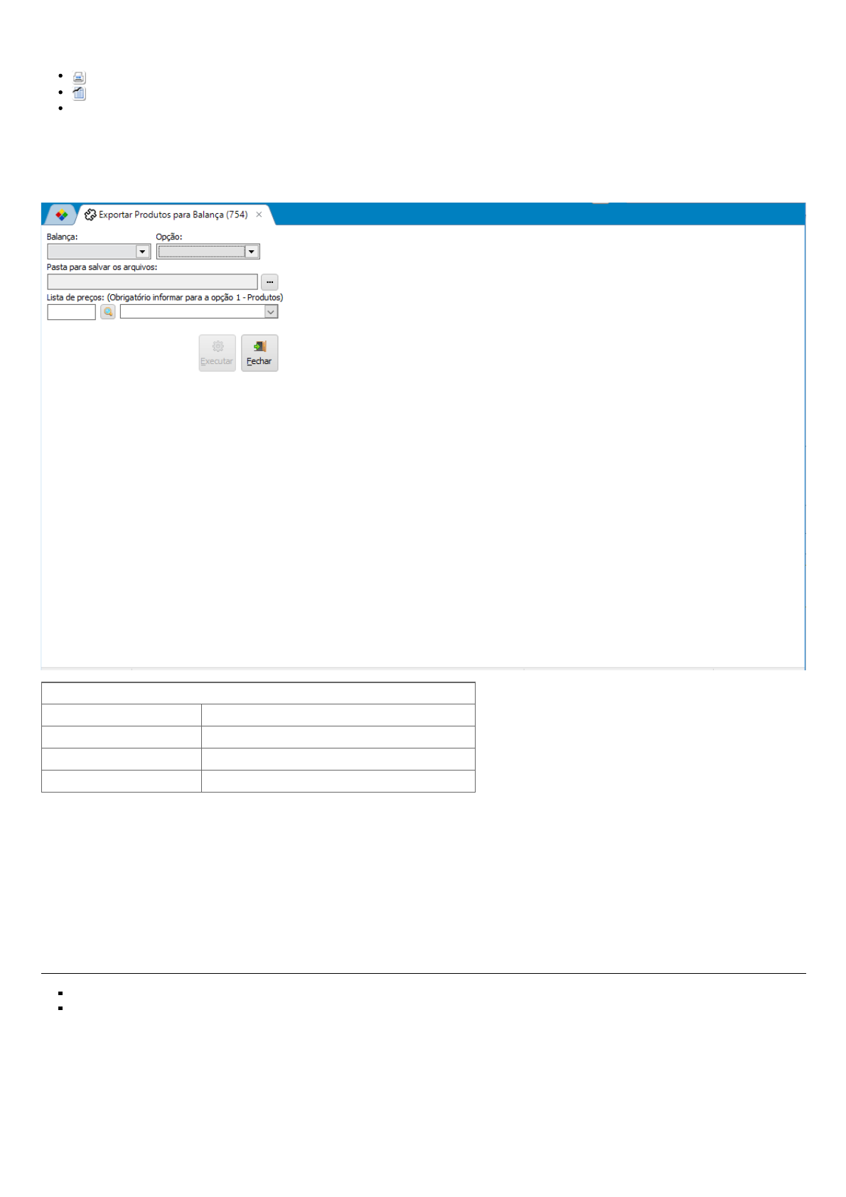 <p>14/04/2022 17:09 Exportar Produtos para Balança - JJW.Documentação</p><p>https://www.jjw.com.br/doc/doku.php?id=doc:jjwxp:m_est:compl_exp_prod_balanca&s[]=exportar&s[]=balança 1/1</p><p>Versão para impressão</p><p>Exportar para OpenOffice</p><p>Exportar Produtos para Balança</p><p>Caminho: Complementos - Estoque - Exportar Produtos para Balança.</p><p>Descrição dos campos</p><p>Balança Tipo da balança.</p><p>Opção Opção do leiaute para exportar.</p><p>Pasta para salvar os arquivos Local para salvar os leiautes.</p><p>Lista de preços Lista de preços dos produtos a ser exportados no leiaute.</p><p>Leiaute Filizola</p><p>Leiaute Toledo</p><p>Para o leiaute da balança Toledo, só vai exportar produtos da lista de preço que for do tipo B (Balança) e/ou U (Unidade).</p><p>Detalhes do leiaute na aba Problema OC 26242.</p><p>layout_de_exportacao_toledo_-_mgv6.pdf</p><p>doc/jjwxp/m_est/compl_exp_prod_balanca.txt · Última modificação: 2021/02/16 15:12 (edição externa)</p><p>https://www.jjw.com.br/doc/doku.php?id=doc:jjwxp:m_est:compl_exp_prod_balanca&rev=0&mddo=print</p><p>https://www.jjw.com.br/doc/doku.php?id=doc:jjwxp:m_est:compl_exp_prod_balanca&rev=0&do=export_odt</p><p>https://www.jjw.com.br/doc/lib/exe/fetch.php?media=doc:jjwxp:m_est:layout_de_exportacao_toledo_-_mgv6.pdf</p>