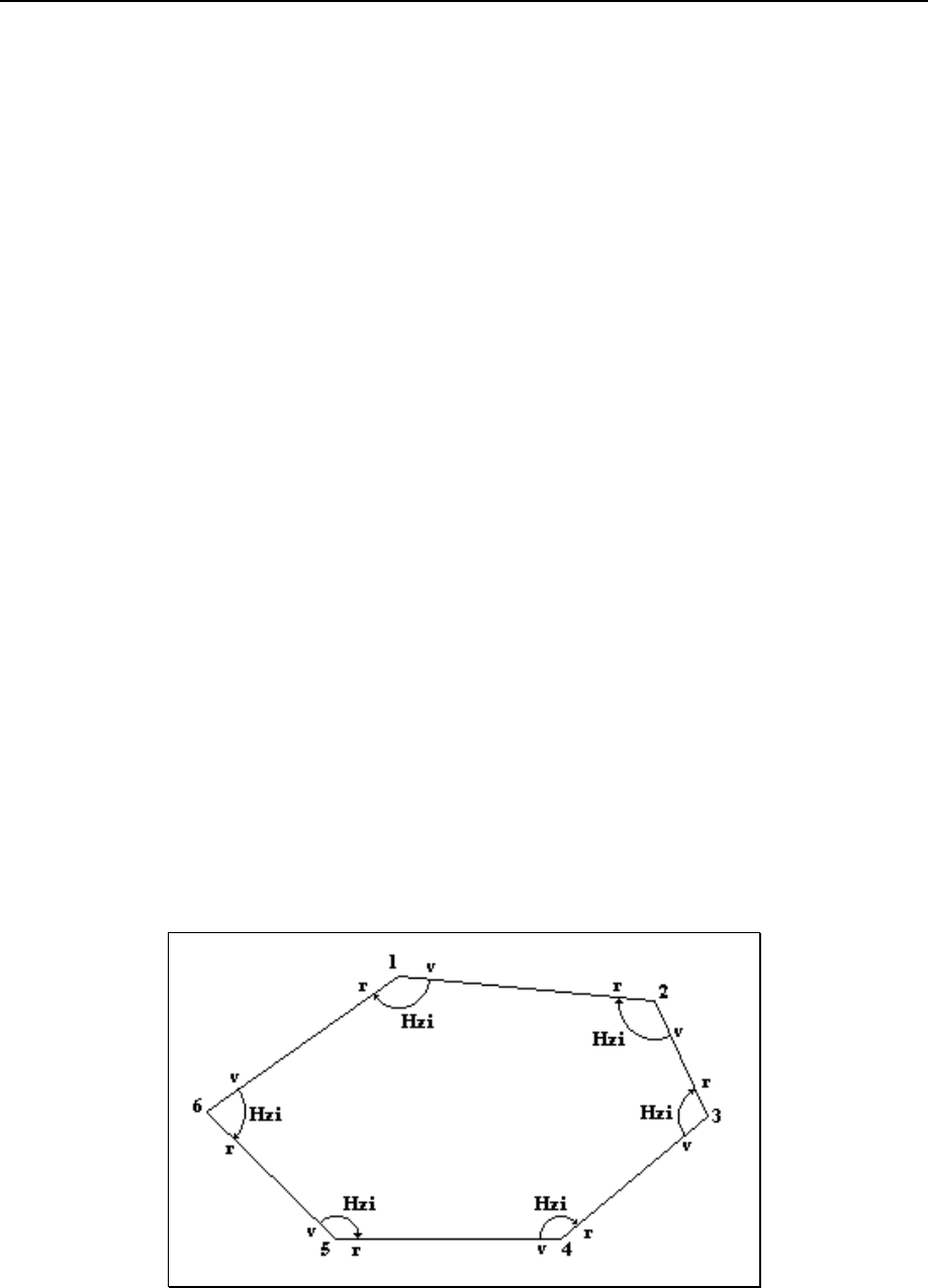 <p>Maria Cecília Bonato Brandalize Topografia PUC/PR</p><p>Engenharia Civil -62-</p><p>11.Medidas Angulares</p><p>Em relação aos ângulos medidos em Topografia, pode-se classificá-los em:</p><p>11.1. Ângulos Horizontais</p><p>Os ângulos horizontais medidos em Topografia podem ser:</p><p>a)Internos</p><p>Para a medida de um ângulo horizontal interno a dois alinhamentos consecutivos de uma</p><p>poligonal fechada, o aparelho deve ser estacionado, nivelado e centrado com perfeição, sobre um dos pontos que</p><p>a definem (o prolongamento do eixo principal do aparelho deve coincidir com a tachinha sobre o piquete).</p><p>Assim, o método de leitura do referido ângulo, utilizando um teodolito</p><p>eletrônico ou uma estação total, consiste em:</p><p> Executar a pontaria (fina) sobre o ponto a vante (primeiro alinhamento);</p><p> Zerar o círculo horizontal do aparelho nesta posição (procedimento</p><p>padrão Hz = 00000'00");</p><p> Liberar e girar o aparelho (sentido horário ou anti-horário), executando a</p><p>pontaria (fina) sobre o ponto a ré (segundo alinhamento);</p><p> Anotar ou registrar o ângulo (Hz) marcado no visor LCD que corresponde</p><p>ao ângulo horizontal interno medido.</p><p>A figura a seguir ilustra os ângulos horizontais internos medidos em todos os pontos de uma</p><p>poligonal fechada.</p><p>A relação entre os ângulos horizontais internos de uma poligonal fechada é dada por:</p><p>Maria Cecília Bonato Brandalize Topografia PUC/PR</p><p>Engenharia Civil -63-</p><p>)2n.(180Hzi </p><p>Onde n representa o número de pontos ou estações da poligonal.</p><p>b)Externos</p><p>Para a medida de um ângulo horizontal externo a dois alinhamentos consecutivos de uma</p><p>poligonal fechada, o aparelho deve ser estacionado, nivelado e centrado com perfeição, sobre um dos pontos que</p><p>a definem (o prolongamento do eixo principal do aparelho deve coincidir com a tachinha sobre o piquete).</p><p>Assim, o método de leitura do referido ângulo, utilizando um teodolito</p><p>eletrônico ou uma estação total, consiste em:</p><p> Executar a pontaria (fina) sobre o ponto a ré (primeiro alinhamento);</p><p> Zerar o círculo horizontal do aparelho nesta posição (procedimento</p><p>padrão Hz = 00000'00");</p><p> Liberar e girar o aparelho (sentido horário ou anti-horário), executando a</p><p>pontaria (fina) sobre o ponto a vante (segundo alinhamento);</p><p> Anotar ou registrar o ângulo (Hz) marcado no visor LCD que corresponde</p><p>ao ângulo horizontal externo medido.</p><p>A figura a seguir ilustra os ângulos horizontais externos medidos em todos os pontos de uma</p><p>poligonal fechada.</p><p>A relação entre os ângulos horizontais externos de uma poligonal fechada é dada por:</p><p>)2n.(180Hze </p><p>Onde n representa o número de pontos ou estações da poligonal.</p><p>Maria Cecília Bonato Brandalize Topografia PUC/PR</p><p>Engenharia Civil -64-</p><p>Os ângulos horizontais internos e externos variam de 0 a 360.</p><p>c)Deflexão</p><p>A deflexão é o ângulo horizontal que o alinhamento à vante forma com o</p><p>prolongamento do alinhamento à ré, para um aparelho estacionado, nivelado e centrado com</p><p>perfeição, em um determinado ponto de uma poligonal. Este ângulo varia de 0 a 180. Pode</p><p>ser positivo, ou à direita, se o sentido de giro for horário; negativo, ou à esquerda, se o</p><p>sentido de giro for anti-horário.</p><p>Assim, para a medida da deflexão, utilizando um teodolito eletrônico ou uma</p><p>estação total, procede-se da seguinte maneira:</p><p>Tombando a Luneta</p><p> Executar a pontaria (fina) sobre o ponto a ré (primeiro alinhamento);</p><p> Zerar o círculo horizontal do aparelho nesta posição (procedimento</p><p>padrão Hz = 00000'00");</p><p> Liberar somente a luneta do aparelho e tombá-la segundo o</p><p>prolongamento do primeiro alinhamento;</p><p> Liberar e girar o aparelho (sentido horário ou anti-horário), executando a</p><p>pontaria (fina) sobre o ponto a vante (segundo alinhamento);</p><p> Anotar ou registrar o ângulo (Hz) marcado no visor LCD que corresponde</p><p>à deflexão medida.</p><p>A figura a seguir ilustra as deflexões medidas em todos os pontos de uma poligonal fechada,</p><p>tombando a luneta.</p><p>A relação entre as deflexões de uma poligonal fechada é dada por:</p><p> D Dd e 360</p><p>Maria Cecília Bonato Brandalize Topografia PUC/PR</p><p>Engenharia Civil -65-</p><p>A relação entre as deflexões e os ângulos horizontais internos de uma poligonal fechada é</p><p>dada por:</p><p> 180HD zie</p><p>para Hzi 180</p><p>e</p><p>zid H180D </p><p>para Hzi 180</p><p>Girando o Aparelho</p><p> Executar a pontaria (fina) sobre o ponto a ré (primeiro alinhamento);</p><p> Imputar ao círculo horizontal do aparelho, nesta posição, um ângulo Hz =</p><p>18000'00";</p><p> Liberar e girar o aparelho (sentido horário ou anti-horário), executando a</p><p>pontaria (fina) sobre o ponto a vante (segundo alinhamento);</p><p> Anotar ou registrar o ângulo (Hz) marcado no visor LCD que corresponde</p><p>à deflexão medida.</p><p>A figura a seguir ilustra a deflexão medida em um dos pontos de uma poligonal fechada,</p><p>girando o aparelho.</p><p>Nos levantamentos topográficos, a escolha do tipo de ângulo horizontal que será medido depende</p><p>do projeto e, a medida destes ângulos, constitui-se numa das suas maiores fontes de erro.</p><p>Assim, para evitar ou mesmo eliminar erros concernentes às imperfeições do aparelho, à pontaria e</p><p>leitura daqueles ângulos, utilizam-se métodos em que se realizam mais de uma medição do ângulo horizontal para</p><p>um mesmo ponto de poligonal. São eles:</p><p>a)Método da Repetição</p><p>Maria Cecília Bonato Brandalize Topografia PUC/PR</p><p>Engenharia Civil -66-</p><p>Segundo ESPARTEL (1977) e DOMINGUES (1979) este método consiste em visar,</p><p>sucessivamente, os alinhamentos a vante e a ré de um determinado ponto 