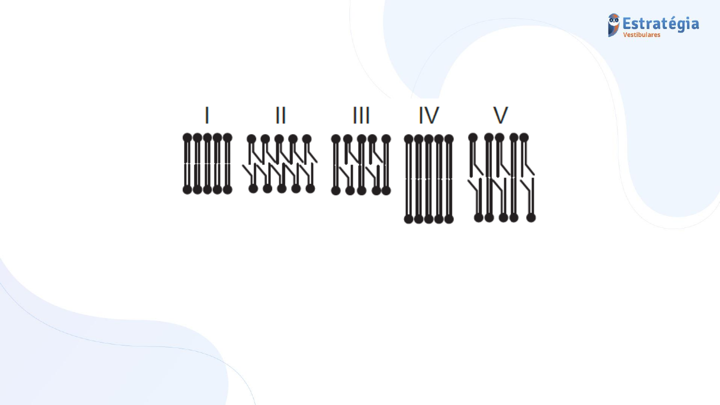 <p>Prof. Bruna Klassa @profbrunaklassa</p><p>(ENEM/2019)</p><p>Assim, existem bicamadas lipídicas com diferentes composições de fosfolipídios, como as mostradas de I a V.</p><p>Qual das bicamadas lipídicas apresentadas possui maior fluidez?</p><p>a) I</p><p>b) II</p><p>c) III</p><p>d) IV</p><p>e) V</p><p>Slide 6</p>