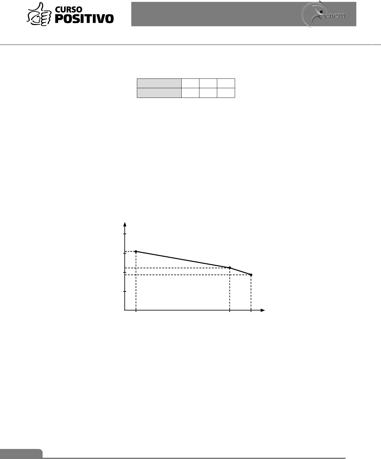 <p>4 CIÊNCIAS DA NATUREZA E MATEMÁTICA</p><p>EXAME NACIONAL DO ENSINO MÉDIO</p><p>1.o SIMULADO ENEM</p><p>2023</p><p>03. Geralmente o organismo humano costuma processar remédios injetados no sangue de forma exponencial. No</p><p>entanto, a tabela a seguir mostra a quantidade Q de um psicotrópico se comportando de forma quadrática em</p><p>função do tempo.</p><p>t (hora) 0 1 2</p><p>Q (miligrama) 1 4 6</p><p>Pode-se estimar que a quantidade (em miligrama) na 3.a hora será igual a:</p><p>a) 4</p><p>b) 7</p><p>c) 8</p><p>d) 9</p><p>e) 10</p><p>04. A incidência de óbitos infantis tem diminuído ao longo dos anos no Brasil. De acordo com um gráfico gerado com</p><p>base em informações do IBGE, houve uma redução na taxa de mortalidade infantil (número de mortes para cada</p><p>1.000 nascimentos) de crianças com idade inferior a 5 anos, no Brasil, entre 2000 e 2011.</p><p>2000</p><p>0</p><p>30,1</p><p>22,5</p><p>18,7</p><p>Ó</p><p>bi</p><p>to</p><p>s</p><p>po</p><p>r</p><p>10</p><p>00</p><p>n</p><p>as</p><p>ci</p><p>do</p><p>s</p><p>vi</p><p>vo</p><p>s</p><p>2009 2011</p><p>10</p><p>20</p><p>30</p><p>40</p><p>Imagine que, ao longo dos próximos anos, a tendência de queda anual média na taxa de mortalidade infantil</p><p>continuará sendo mantida, tal como observado entre 2009 e 2011.</p><p>Com base nas informações apresentadas, a taxa de óbitos infantis entre crianças com até 5 anos de idade será</p><p>menor do que 10 em um período futuro entre:</p><p>a) 2011 a 2012.</p><p>b) 2012 a 2013.</p><p>c) 2013 a 2014.</p><p>d) 2015 a 2016.</p><p>e) 2017 a 2018.</p>