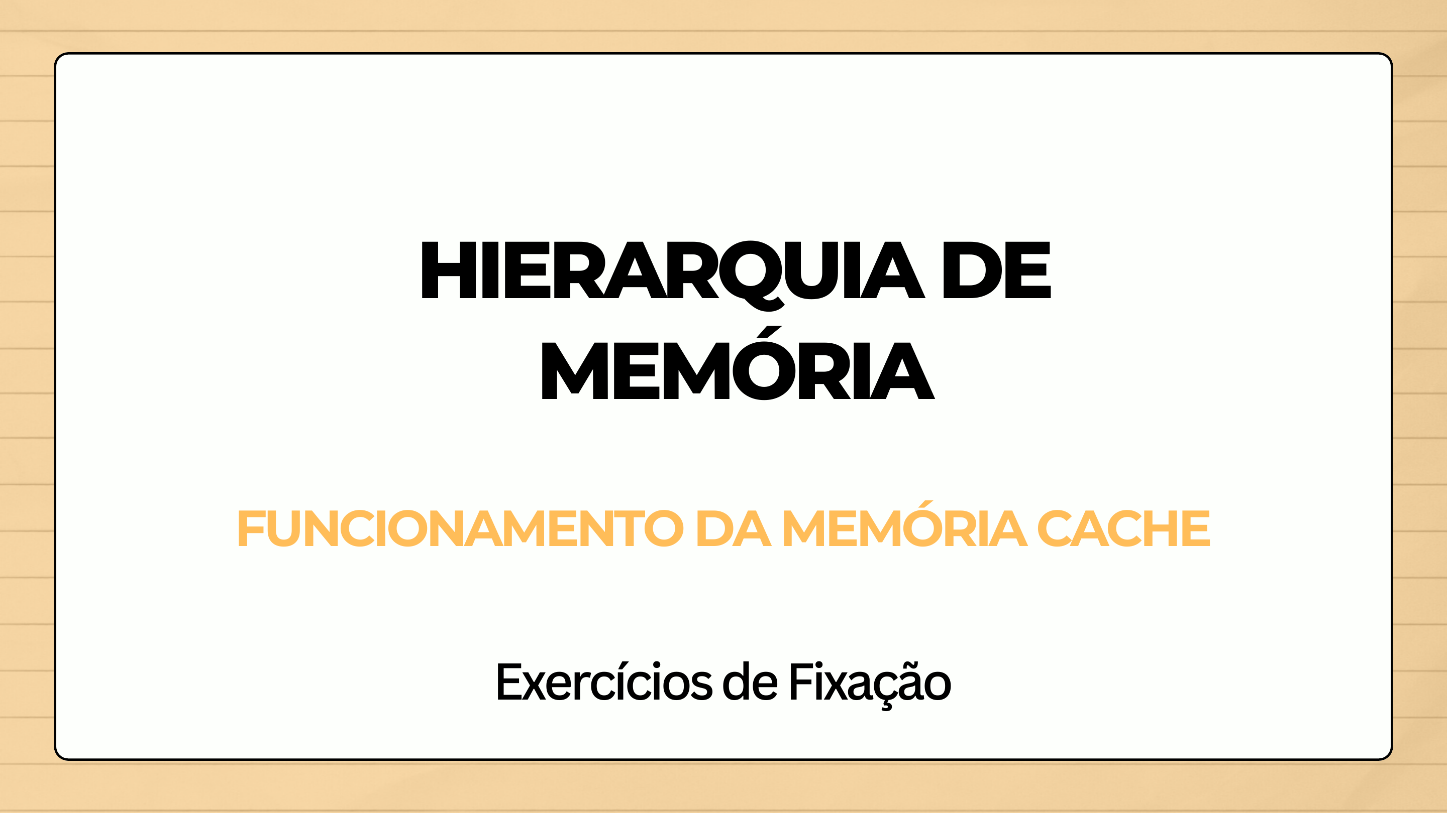 <p>Exercícios de Fixação</p><p>FUNCIONAMENTO DA MEMÓRIA CACHE</p><p>HIERARQUIA DE</p><p>MEMÓRIA</p><p>Perguntas</p><p>Como funciona o processo de busca de dados na memória cache?1.</p><p>O que é um acerto e uma falha na cache e como isso afeta o</p><p>desempenho do sistema?</p><p>2.</p><p>Como a cache decide quais blocos de dados serão armazenados?3.</p><p>Por que a memória cache armazena blocos de dados inteiros em vez</p><p>de palavras individuais?</p><p>4.</p><p>Qual é o impacto da taxa de acerto na eficiência da memória cache?5.</p><p>Gabarito</p><p>Questão 1</p><p>O funcionamento da memória cache começa com o processador</p><p>buscando dados ou instruções na cache. Se o dado estiver presente na</p><p>cache (acerto), ele é imediatamente enviado para o processador. Caso</p><p>contrário (falha), o processador busca o dado na memória principal, o</p><p>armazena na cache e depois o processa. Essa busca contínua por</p><p>dados na cache visa reduzir o tempo que o processador gasta</p><p>esperando pela recuperação de informações da memória principal.</p><p>Gabarito</p><p>Questão 2</p><p>Um acerto na cache ocorre quando os dados que o processador</p><p>precisa já estão armazenados na cache, permitindo um acesso rápido.</p><p>Uma falha na cache ocorre quando os dados não estão presentes na</p><p>cache e precisam ser buscados na memória principal, o que é muito</p><p>mais demorado. Acertos aumentam o desempenho do sistema,</p><p>enquanto falhas adicionam tempo de espera ao processamento.</p><p>Gabarito</p><p>Questão 3</p><p>A cache armazena blocos de dados com base no princípio da</p><p>localidade espacial. Quando ocorre uma falha, em vez de buscar</p><p>apenas o dado específico, a cache traz um bloco de dados da memória</p><p>principal, na expectativa de que dados adjacentes serão necessários</p><p>em breve. A decisão sobre quais blocos armazenar e quais descartar</p><p>depende das políticas de mapeamento e de substituição da cache.</p><p>Gabarito</p><p>Questão 4</p><p>A cache armazena blocos de dados inteiros em vez de palavras</p><p>individuais para otimizar o processo de acesso. Isso ocorre porque, ao</p><p>acessar um dado, é provável que dados próximos também sejam</p><p>acessados em breve (localidade espacial). Armazenar blocos inteiros</p><p>reduz o número de acessos à memória principal e diminui a taxa de</p><p>falhas.</p><p>Gabarito</p><p>Questão 5</p><p>A taxa de acerto é fundamental para a eficiência da memória cache.</p><p>Uma alta taxa de acerto significa que a maior parte dos dados</p><p>solicitados pelo processador está presente na cache, resultando em</p><p>tempos de acesso rápidos e maior desempenho. Uma baixa taxa de</p><p>acerto, por outro lado, aumenta o número de acessos à memória</p><p>principal, o que diminui a eficiência e o desempenho do sistema.</p>