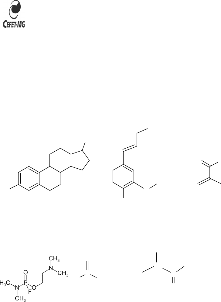 <p>CENTRO FEDERAL DE EDUCAÇÃO TECNOLÓGICA DE MINAS GERAIS</p><p>Curso: Engenharia Metalúrgica, Disciplina: Química Básica;</p><p>Assunto:</p><p>Aluno(s): ........................................................</p><p>Data: .....11/08/2021</p><p>Q1</p><p>Indique a massa molar dos seguintes compostos:</p><p>OH</p><p>Hormônio feminino</p><p>Q2</p><p>Elabore os NOX nos seguintes compostos:</p><p>NH2</p><p>GV (arma química) Azul da Prússia</p><p>Q3</p><p>Balanceie as seguintes reações inorgânicas (executadas em ambiente aquoso):</p><p>IO3</p><p>-+ SO3</p><p>2- → I2 + SO</p><p>Iodato Sulfito Iodo Sulfato</p><p>S2O3</p><p>2-+ Cl2 → SO4</p><p>2- + Cl</p><p>TiosulfatoCloro Sulfato Cloreto</p><p>CENTRO FEDERAL DE EDUCAÇÃO TECNOLÓGICA DE MINAS GERAIS</p><p>CAMPUS TIMÓTEO</p><p>Exercícios avaliativos5</p><p>Curso: Engenharia Metalúrgica, Disciplina: Química Básica;</p><p>Assunto: Escrever fórmulas, NOX, balancear reações redox</p><p>Prof.: Armin.</p><p>.............................................................................................................</p><p>11/08/2021 Valor:.15.pts</p><p>molar dos seguintes compostos:</p><p>OH</p><p>OH</p><p>O</p><p>CH3</p><p>OH</p><p>Coniferol (faz parte da lignina)</p><p>O</p><p>Metacrilamida</p><p>(monômero em têxtil sintético)</p><p>Elabore os NOX nos seguintes compostos:</p><p>N</p><p>C</p><p>NH2</p><p>O</p><p>Ureia</p><p>CH3</p><p>CH</p><p>C</p><p>NH2</p><p>OH</p><p>O</p><p>Alanina (aminoácido)</p><p>Fe4[Fe(CN)</p><p>GV (arma química) Azul da Prússia</p><p>(Pigmento contendo o íon cianeto, N</p><p>Balanceie as seguintes reações inorgânicas (executadas em ambiente aquoso):</p><p>+ SO4</p><p>2- (em ambiente aquoso ácido)</p><p>Iodato Sulfito Iodo Sulfato</p><p>+ Cl- (ambiente aquoso ácido)</p><p>TiosulfatoCloro Sulfato Cloreto</p><p>CENTRO FEDERAL DE EDUCAÇÃO TECNOLÓGICA DE MINAS GERAIS</p><p>Curso: Engenharia Metalúrgica, Disciplina: Química Básica;</p><p>Escrever fórmulas, NOX, balancear reações redox</p><p>.....................................................</p><p>.pts Nota: ....................</p><p>NH2</p><p>Metacrilamida</p><p>(monômero em têxtil sintético)</p><p>[Fe(CN)6]3</p><p>GV (arma química) Azul da Prússia</p><p>(Pigmento contendo o íon cianeto, N≡C-)</p><p>NH2OH + Cu2+ → N2O + Cu2O (ambiente aquoso alcalino)</p><p>Hidroxilamina Cobre Gás hilariante Óxido cuproso</p><p>(Essa reação faz parte do “teste de Fehling”)</p><p>N2H4 + Ag+ → N2 + Ag (ambiente aquoso alcalino)</p><p>Hidrazina Prata Nitrogênio gás Prata</p><p>(Essa reação faz parte do “teste de Tollens”)</p><p>Q4</p><p>Balanceie as seguintes reações orgânicas em ambiente ácido:</p><p>a) Etanol reage para ácido acético; o reagente MnO2(dióxido de manganês) reage em</p><p>ambiente ácido para Mn2+.</p><p>b) Etanol reage para ácido acético; o reagente K2Cr2O7(dicromato) reage em ambiente</p><p>ácido para Cr3+.</p><p>Q5</p><p>Balanceie a seguinte reação orgânica em ambiente aquoso alcalino:</p><p>CH3</p><p>CH</p><p>CH3</p><p>OH</p><p>iso-Propanol</p><p>+ CrO4</p><p>2-</p><p>Cromato</p><p>CH3</p><p>C</p><p>CH3</p><p>O</p><p>Acetona</p><p>+ Cr3+</p>