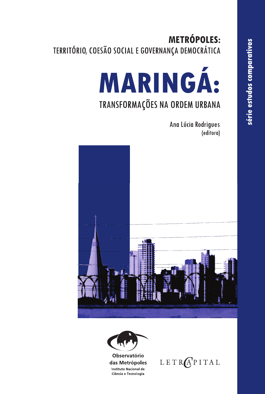<p>Copyright © Ana Lúcia Rodrigues (Editora) 2015</p><p>Todos os direitos reservados e protegidos pela Lei nº 9.610, de 19/02/1998.</p><p>Nenhuma parte deste livro pode ser reproduzida ou transmitida, sejam quais forem os meios</p><p>empregados, sem a autorização prévia e expressa do autor.</p><p>Editor João Baptista Pinto</p><p>Capa Flávia de Sousa Araújo</p><p>Foto: Heitor Marcon</p><p>projEto GráfiCo E Editoração Luiz Guimarães</p><p>rEvisão Mário Donadon Leal</p><p>Cristine Palma Zochio</p><p>rEvisão GráfiCa Wesley Ferreira de Souza</p><p>Wesley Oliveira Furriel</p><p>Israel Araújo</p><p>Jair Mega Júnior</p><p>LEtra CapitaL Editora</p><p>Telefax: (21) 3553-2236/2215-3781</p><p>letracapital@letracapital.com.br</p><p>CIP-BRASIL. CATALOGAÇÃO NA FONTE</p><p>SINDICATO NACIONAL DOS EDITORES DE LIVROS, RJ</p><p>M289</p><p>Maringá: transformações na ordem urbana [recurso eletrônico] / organização Ana Lúcia</p><p>Rodrigues ; coordenação Luiz Cesar de Queiroz Ribeiro. - 1. ed. - Rio de Janeiro : Letra Capital;</p><p>Observatório das Metrópoles, 2015.</p><p>recurso digital (Estudos comparativos)</p><p>Formato: epub</p><p>Requisitos do sistema: adobe digital editions</p><p>Modo de acesso: world wide web</p><p>Inclui bibliografia</p><p>ISBN 978-85-7785-354-0 (recurso eletrônico)</p><p>1. Maringá (PR) - História. 2. Urbanização - Brasil - História. 3. Planejamento urbano.</p><p>4. Política urbana. 5. Livros eletrônicos. I. Rodrigues, Ana Lúcia. II. Ribeiro, Luiz Cesar de</p><p>Queiroz. III. Série.</p><p>15-21342 CDD: 307.76</p><p>CDU: 316.334.56</p><p>26/03/2015 31/03/2015</p><p>O conteúdo deste livro</p><p>passou pela supervisão e avaliação de um</p><p>Comitê Gestor e Editorial</p><p>formado pelos seguintes pesquisadores:</p><p>Comitê Gestor</p><p>Ana Lúcia Rodrigues</p><p>Luciana Côrrea do Lago</p><p>Luciana Teixeira de Andrade</p><p>Luiz Cesar de Queiroz Ribeiro</p><p>Maria do Livramento M. Clementino</p><p>Olga Firkowski</p><p>Orlando Alves dos Santos Júnior</p><p>Rosetta Mammarella</p><p>Sergio de Azevedo</p><p>Suzana Pasternak</p><p>Comitê Editorial</p><p>Adauto Lúcio Cardoso</p><p>André Ricardo Salata</p><p>Érica Tavares</p><p>Juciano Martins Rodrigues</p><p>Marcelo Gomes Ribeiro</p><p>Mariane Campelo Koslinski</p><p>Marley Deschamps</p><p>Nelson Rojas de Carvalho</p><p>Ricardo Antunes Dantas de Oliveira</p><p>Rosa Maria Ribeiro da Silva</p><p>Rosa Moura</p><p>Maringá: transformações na ordem urbana 5</p><p>Sumário</p><p>Apresentação ................................................................................................................... 13</p><p>Introdução</p><p>Ana Lúcia Rodrigues, Paulo Roberto de Souza .............................................. 17</p><p>Parte I: Dinâmicas de metropolização: inserção na rede urbana,</p><p>população e economia ............................................................57</p><p>Capítulo 1 A Região Metropolitana de Maringá na rede urbana brasileira</p><p>e sua configuração interna</p><p>Ana Lúcia Rodrigues, Amália Maria Goldberg Godoy,</p><p>Wesley Ferreira de Souza ............................................................................... 59</p><p>Capítulo 2 Dinâmica demográfica da Região Metropolitana de Maringá</p><p>Anael Pinheiro de Ulhôa Cintra, Wesley Oliveira Furriel ............................... 87</p><p>Capítulo 3 Estrutura econômico-produtiva e mercado de trabalho na</p><p>Região Metropolitana de Maringá: período 2000 e 2010</p><p>Amália Maria Goldberg Godoy, Luci Nychai ................................................ 115</p><p>Parte II: Dimensão socioespacial da integração/exclusão</p><p>na Região Metropolitana de Maringá ..................................145</p><p>Capítulo 4 Estrutura e organização social do território da Região Metropolitana</p><p>de Maringá</p><p>Ana Lúcia Rodrigues, Cledina Regina Lonardon Accorsi,</p><p>Paulo Roberto de Souza ............................................................................... 147</p><p>Capítulo 5 Dinâmicas demográficas na Região Metropolitana de Maringá:</p><p>mobilidade espacial e migração</p><p>Sueli de Castro Gomes ................................................................................. 185</p><p>Capítulo 6 Desigualdades educacionais e território na Região Metropolitana</p><p>de Maringá</p><p>Ana Carolina Torrente Pereira, Luiz Donadon Leal,</p><p>Cristine Palma Zochio ................................................................................. 207</p><p>Capítulo 7 Organização social do território e desigualdades sociais:</p><p>oportunidades do mercado de trabalho</p><p>Paulo Roberto de Souza, Cledina Regina Lonardon Acorsi .......................... 234</p><p>6 Maringá: transformações na ordem urbana</p><p>Capítulo 8 A produção de moradia entre 2000 e 2013 e o impacto na</p><p>organização socioespacial do aglomerado metropolitano</p><p>Sarandi-Maringá-Paiçandu</p><p>Beatriz Fleury e Silva, Ricardo Dias Silva ..................................................... 268</p><p>Capítulo 9 Organização social do território e mobilidade urbana em maringá</p><p>Elise Savi, Fabíola Castelo de Souza Cordovil .............................................. 307</p><p>Capítulo 10 Condições de vida urbana no território metropolitano</p><p>da Região de Maringá: uma análise do Ibeu</p><p>Helena Maria Ramos dos Santos, Lucília Amaral Fontanari,</p><p>Mario Donadon Leal .................................................................................. 334</p><p>Capítulo 11 O Ibeu na Região Metropolitana de Maringá - uma análise</p><p>da arborização e da vulnerabilidade socioambiental no marco</p><p>da mudança climática</p><p>Jorge Ulises Guerra Villalobos ................................................................... 358</p><p>Parte III: O metropolitano nacional e a gestão metropolitana</p><p>na região de Maringá ........