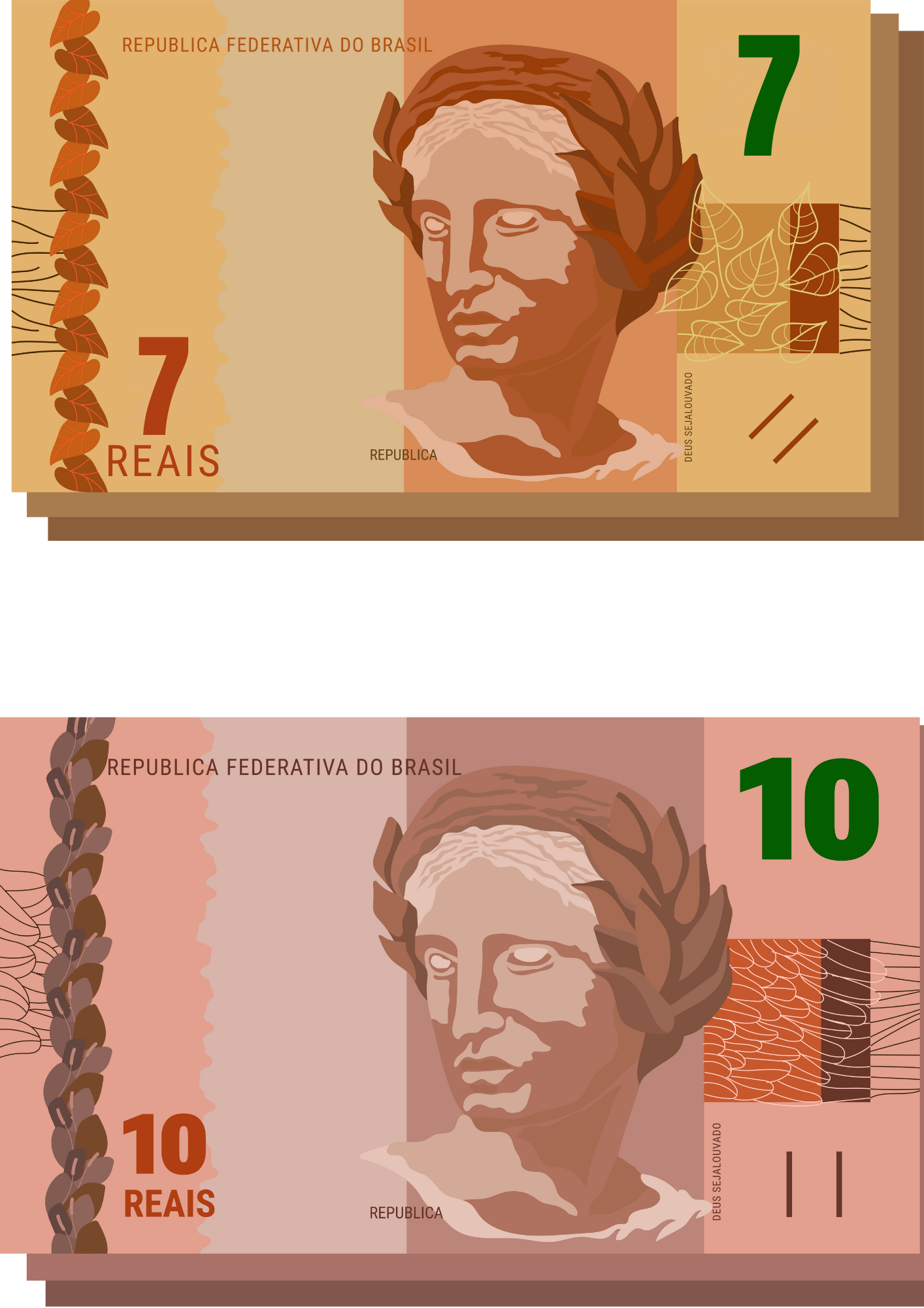 REPUBLICA FEDERATIVA DO BRASIL 7 7 REAIS REPUBLICA REPUBLICA FEDERATIVA DO BRASIL 10 10 REAIS REPUBLICA