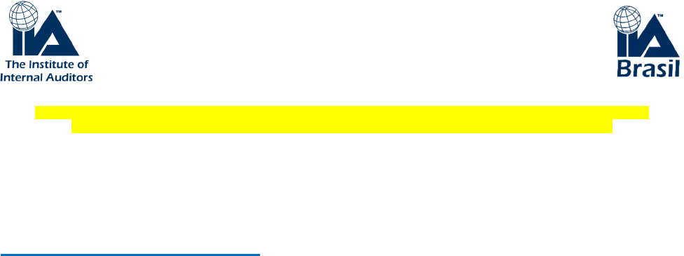 <p>Emitido: outubro de 2008</p><p>Revisado: outubro de 2012</p><p>Página 1 de 24</p><p>Permissão obtida junto ao proprietário dos direitos autorais, The Institute of Internal Auditors, 1035 Greenwood Blvd., Suite 401</p><p>Lake Mary, FL 32746 USA, para publicar esta tradução, a qual reflete o original em todos os aspectos materiais”.</p><p>Instituto dos Auditores Internos do Brasil Tel.: +55 11 5523-1919</p><p>CNPJ: 62.070.115/0001-00 E-mail: iiabrasil@iiabrasil.org.br</p><p>R. Princesa Isabel, 94 – 1º andar – conjs. 11/12 – Brooklin Paulista Website: www.iiabrasil.org.br</p><p>São Paulo/SP – Brasil</p><p>04601-000</p><p>NORMAS INTERNACIONAIS PARA A PRÁTICA PROFISSIONAL DE</p><p>AUDITORIA INTERNA (NORMAS)</p><p>Introdução às Normas Internacionais</p><p>A auditoria interna é conduzida em diversos ambientes legais e culturais; entre organizações que variam</p><p>de propósito, tamanho, complexidade e estrutura; e por pessoas dentro ou fora da organização. Enquanto</p><p>as diferenças possam afetar a prática de auditoria interna em cada ambiente, a conformidade com as</p><p>Normas Internacionais para a Prática Profissional de Auditoria Interna do IIA (Normas) é essencial para o</p><p>atendimento das responsabilidades dos auditores internos e da atividade de auditoria interna.</p><p>Se os auditores internos ou a atividade de auditoria interna estão proibidos por força de lei ou de</p><p>regulamentações a seguir determinadas partes das Normas, é necessária a conformidade com todas as</p><p>demais partes das Normas e a apropriada divulgação desta situação.</p><p>Se as Normas são utilizadas em conjunto com normas emitidas por outros órgãos reguladores, as</p><p>comunicações de auditoria interna podem também citar a utilização de outras normas, como for</p><p>apropriado. Neste caso, se houver inconsistências entre as Normas e outras normas, os auditores internos</p><p>e a atividade de auditoria interna devem sujeitar-se às Normas, e podem obedecer às outras normas caso</p><p>elas forem mais restritivas.</p><p>Os propósitos das Normas são:</p><p>1. Delinear os princípios básicos que representam a prática de auditoria interna.</p><p>2. Fornecer uma estrutura para a execução e promoção de um amplo espectro de auditoria interna</p><p>de valor agregado.</p><p>3. Estabelecer as bases para a avaliação de desempenho da auditoria interna.</p><p>4. Promover a melhoria dos processos e operações organizacionais.</p><p>As Normas são focadas em princípios, requerimentos mandatórios consistidos de:</p><p>• Declarações dos requerimentos básicos para a prática profissional de auditoria interna e para a</p><p>avaliação da eficácia do desempenho, as quais são internacionalmente aplicáveis às</p><p>organizações e aos indivíduos.</p><p>• Interpretações, as quais esclarecem termos ou conceitos contidos nas Declarações.</p><p>As Normas empregam termos aos quais foram atribuídos significados específicos que estão incluídos no</p><p>Glossário. Especificamente, as Normas utilizam a palavra “deve” para especificar um requerimento</p><p>incondicional e a palavra “deveria” onde há a expectativa de conformidade a não ser que, ao aplicar o</p><p>julgamento profissional, as circunstâncias justificam o desvio.</p><p>É necessário considerar as Declarações e suas Interpretações, assim como os significados específicos</p><p>do Glossário, para entender e aplicar as Normas corretamente.</p><p>A estrutura das Normas é dividida entre Normas de Atributos e de Desempenho. As Normas de Atributos</p><p>endereçam as características das organizações e dos indivíduos que executam auditoria interna. As</p><p>Emitido: outubro de 2008</p><p>Revisado: outubro de 2012</p><p>Página 2 de 24</p><p>Permissão obtida junto ao proprietário dos direitos autorais, The Institute of Internal Auditors, 1035 Greenwood Blvd., Suite 401</p><p>Lake Mary, FL 32746 USA, para publicar esta tradução, a qual reflete o original em todos os aspectos materiais”.</p><p>Instituto dos Auditores Internos do Brasil Tel.: +55 11 5523-1919</p><p>CNPJ: 62.070.115/0001-00 E-mail: iiabrasil@iiabrasil.org.br</p><p>R. Princesa Isabel, 94 – 1º andar – conjs. 11/12 – Brooklin Paulista Website: www.iiabrasil.org.br</p><p>São Paulo/SP – Brasil</p><p>04601-000</p><p>Normas de Desempenho descrevem a natureza da auditoria interna e fornecem os critérios de qualidade</p><p>contra os quais o desempenho desses serviços possa ser avaliado. As Normas de Atributos e de</p><p>Desempenho são fornecidas para serem aplicadas a todos os serviços de auditoria interna.</p><p>As Normas de Implantação, adicionalmente, são fornecidas para expandir as normas de Atributos e de</p><p>Desempenho ao prover os requerimentos aplicáveis às atividades de (A) avaliação (assurance) ou (C)</p><p>consultoria.</p><p>Os serviços de avaliação (assurance) compreendem a avaliação objetiva da evidência pelo auditor</p><p>interno, a fim de fornecer uma opinião ou conclusões independentes a respeito de uma entidade,</p><p>operação, função, processo, sistema ou outro ponto importante. A natureza e o escopo do trabalho de</p><p>avaliação (assurance) são determinados pelo auditor interno. Geralmente há três partes envolvidas nos</p><p>serviços de avaliação (assurance): (1) a pessoa ou o grupo diretamente envolvido com a entidade,</p><p>operação, função, processo, sistema ou outro ponto importante - o proprietário do processo, (2) a pessoa</p><p>ou grupo que efetua a avaliação – o auditor interno, e (3) a pessoa ou grupo que utiliza a avaliação – o</p><p>usuário.</p><p>Os serviços de consultoria são, por natureza, de assessoria e geralmente são realizados a partir da</p><p>solicitação específica de um cliente do trabalho. A natureza e o escopo dos trabalhos de consultoria estão</p><p>sujeitos a um acordo com o cliente do trabalho. Geralmente os 