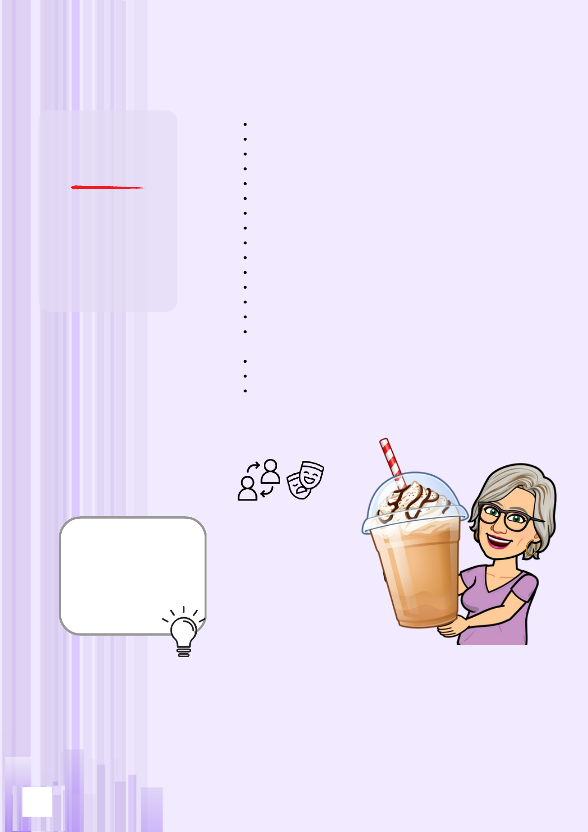 <p>44</p><p>Yes. Yes. It's delicious.</p><p>•</p><p>Can I have the bill,</p><p>please?</p><p>•</p><p>A soda, please.</p><p>•</p><p>Can I have merengón for</p><p>dessert?</p><p>•</p><p>Yes, I’ll have the</p><p>salchipapa with</p><p>tocineta, please.</p><p>•</p><p>Here is your dessert.</p><p>Good evening. Welcome to Delicias Colombianas.</p><p>Good evening.</p><p>What would you like to drink?</p><p>(0)___________________________________________________</p><p>Here is your drink. Are you ready to order?</p><p>(1)___________________________________________________</p><p>Here’s your food. Enjoy it.</p><p>Thanks.</p><p>Is everything OK with your meal?</p><p>(2)___________________________________________________</p><p>Would you like anything for dessert?</p><p>(3)___________________________________________________</p><p>Certainly. I´ll bring that for you right away.</p><p>(4)___________________________________________________</p><p>Thank you.</p><p>(5)___________________________________________________</p><p>Here's your bill. Will you be paying by cash or card?</p><p>Cash, please. Please, keep the change as a tip and thank you</p><p>for a lovely meal.</p><p>------------------</p><p>Waiter:</p><p>Olga:</p><p>Waiter:</p><p>Olga:</p><p>Waiter:</p><p>Olga:</p><p>Waiter:</p><p>Olga:</p><p>Waiter:</p><p>Olga:</p><p>Waiter:</p><p>Olga:</p><p>Waiter:</p><p>Olga:</p><p>Olga:</p><p>Waiter:</p><p>Olga:</p><p>A soda, please.</p><p>Tipping in Colombia is the</p><p>same as in Uruguay.</p><p>However, in the US you tip</p><p>14% of your bill to the</p><p>waiter, the hairdresser, the</p><p>taxi driver, etc.</p><p>DID YOU KNOW...?</p><p>In pairs, act out the dialogue.</p><p>Olga ate at a street food market in Colombia. Read the conversation she had there.</p><p>Get in pairs and complete the dialogue with the phrases in the box.</p>
