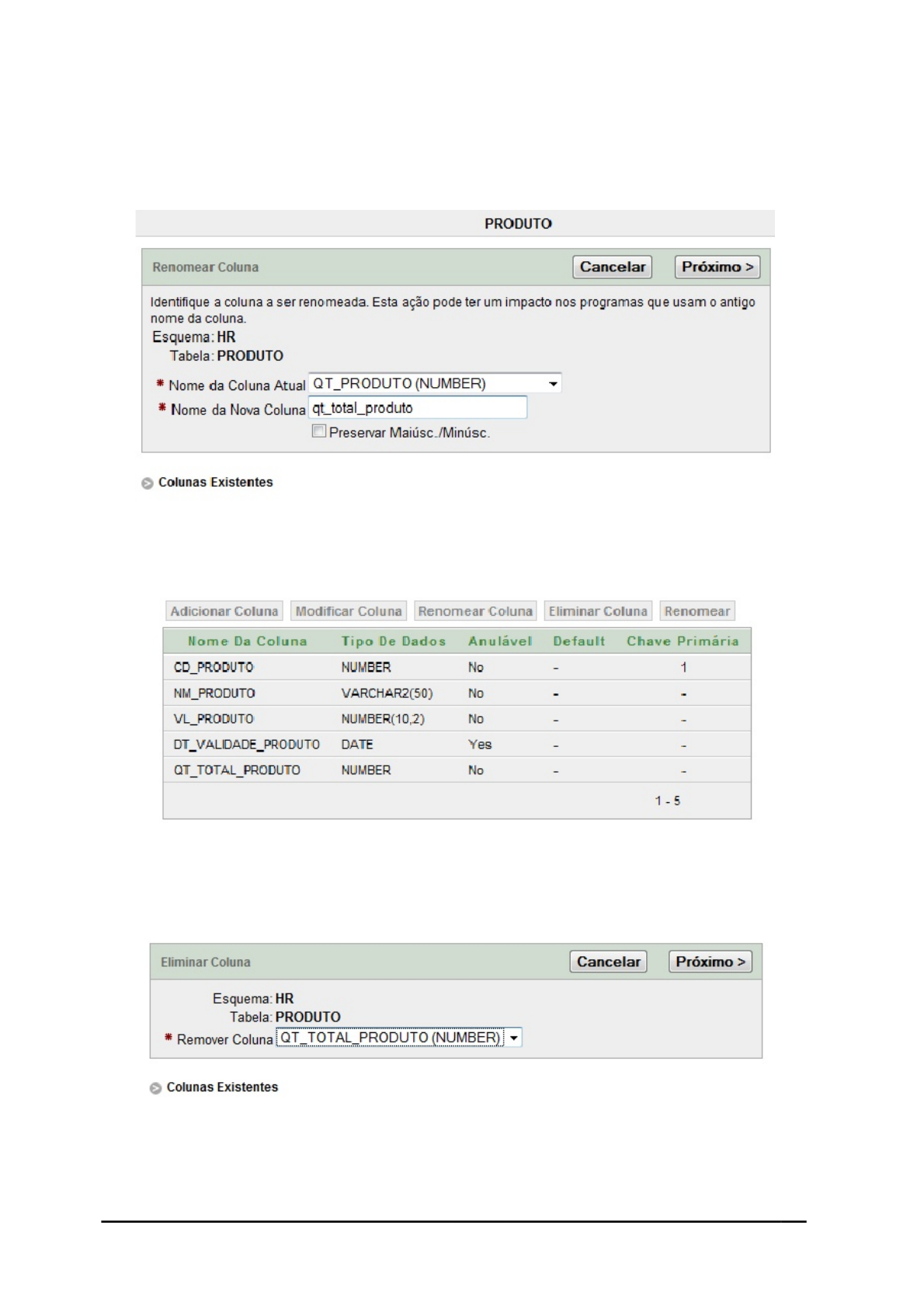<p>7/9/2019 APOSTILA_BDI_2011</p><p>http://slidepdf.com/reader/full/apostilabdi2011 149/154</p><p>B A N C O D E D A D O S I F A T E C D E P R A I A G R A N D E</p><p>149</p><p>RENOMEAR COLUNA</p><p>Clique no ícone RENOMEAR COLUNA e surge a tela abaixo:</p><p>Figura 131 – Tela para Renomear Coluna (feito pelo Autor)</p><p>EXIBIR A ESTRUTURA</p><p>Figura 132 – Tela para Exibir a Estrutura da Tabela com a Coluna Renomeada (feito pelo Autor)</p><p>ELIMINAR COLUNA</p><p>Clique no ícone ELIMINAR COLUNA e surge a tela abaixo:</p><p>Figura 133 – Tela para Eliminar Coluna (feito pelo Autor)</p><p>EXIBIR A ESTRUTURA</p>