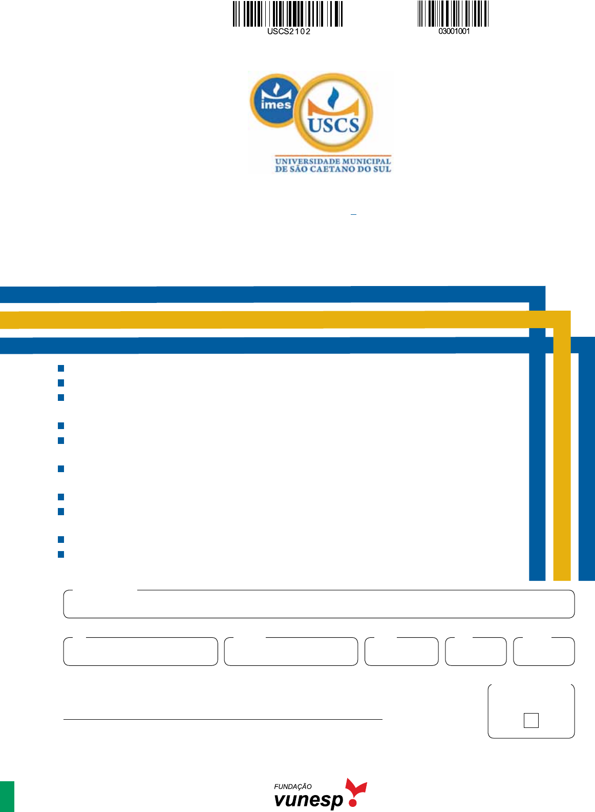 <p>Confidencial até o momento da aplicação.</p><p>ausente</p><p>usO eXCLusIVO DO FIsCaL</p><p>Assinatura do candidato</p><p>Nome do candidato</p><p>Prédio Sala CarteiraInscriçãoRG</p><p>Confira seus dados impressos neste caderno.</p><p>Nesta prova, utilize caneta de tinta preta.</p><p>Assine apenas no local indicado. Será atribuída nota zero à questão que apresentar nome, rubrica, assinatura, sinal,</p><p>iniciais ou marcas que permitam a identificação do candidato.</p><p>Esta prova contém 8 questões discursivas e uma proposta de redação.</p><p>Quando for permitido abrir o caderno, verifique se está completo ou se apresenta imperfeições. Caso haja algum</p><p>problema, informe ao fiscal da sala para a devida substituição.</p><p>A resolução e a resposta de cada questão devem ser apresentadas no espaço correspondente. Não serão consideradas</p><p>respostas sem as suas resoluções, nem as apresentadas fora do local indicado.</p><p>Encontra-se neste caderno a Classificação Periódica, que poderá ser útil para a resolução de questões.</p><p>As provas terão duração total de 5h e o candidato somente poderá sair do prédio depois de transcorrida 1h, contada</p><p>a partir do início da prova.</p><p>Os últimos três candidatos deverão se retirar juntos da sala.</p><p>Ao final da prova, antes de sair da sala, entregue ao fiscal a Folha de Respostas, a Folha de Redação e os Cadernos</p><p>de Questões.</p><p>VestIbuLar De meDICIna | 1O SemeStRe de 2022</p><p>001. PrOVa I</p><p>Mobile User</p><p>2USCS2102 | 001-Prova-I Confidencial até o momento da aplicação.</p><p>3 USCS2102 | 001-Prova-IConfidencial até o momento da aplicação.</p><p>resOLuçãO e resPOsta</p><p>RASCUNHO</p><p>QuestãO 01</p><p>Emulsões são misturas heterogêneas compostas por dois líquidos imiscíveis, em que um deles está disperso no outro na</p><p>forma de gotículas. A figura representa uma emulsão de óleo em água, em que foi dissolvida certa quantidade de cloreto</p><p>de sódio.</p><p>Sódio+ está em uma dupla</p><p>camada em uma emulsão.</p><p>Cloreto e mais 3 x 10</p><p>outros curtiram isso.</p><p>– 18</p><p>(boletim.sbq.org.br. Adaptado.)</p><p>a) Qual tipo de ligação ocorre entre as espécies químicas que compõem a dupla camada representada na figura, quando</p><p>estão no estado sólido? Entre as espécies químicas Na, Na+, C e C–, qual a que apresenta maior raio?</p><p>b) Indique as características das moléculas de água e de óleo que explicam por que essas substâncias formam uma emul-</p><p>são. Considerando a constante de Avogadro igual a 6 × 1023 mol–1, calcule a massa de íons cloreto (C–) que equivalem</p><p>ao número de curtidas da postagem no interfacebook.</p><p>Mobile User</p><p>4USCS2102 | 001-Prova-I Confidencial até o momento da aplicação.</p><p>resOLuçãO e resPOsta</p><p>RASCUNHO</p><p>QuestãO 02</p><p>O biftalato de potássio (HOOC(C6H4)COOK, M = 204 g/mol) é uma substância utilizada na padronização de soluções de</p><p>hidróxido de sódio (NaOH, M = 40 g/mol). Um técnico de laboratório preparou uma solução de biftalato de potássio dis-</p><p>solvendo 1,02 g da substância em água suficiente para produzir 250 mL de solução. Em seguida, realizou a titulação de</p><p>50 mL de solução de NaOH, consumindo 25 mL da solução de biftalato de potássio que preparou. A reação entre biftalato</p><p>de potássio e hidróxido de sódio é representada pela equação a seguir:</p><p>HOOC(C6H4)COOK + NaOH NaOOC(C6H4)COOK + H2O</p><p>a) Calcule o número de mols de soluto utilizado na preparação da solução de biftalato de potássio. Considerando a den-</p><p>sidade da solução igual a 1,0 g/mL, calcule a concentração em porcentagem de massa.</p><p>b) Considerando Kw = 1,0 × 10–14, calcule o pH da solução de NaOH titulada.</p><p>Mobile User</p><p>5 USCS2102 | 001-Prova-IConfidencial até o momento da aplicação.</p><p>resOLuçãO e resPOsta</p><p>QuestãO 03</p><p>Existe no mercado uma família de pilhas recarregáveis construídas com eletrodos de LiFePO4 e grafite (C6)n, cujo funcio-</p><p>namento consiste na migração de íons Li+ através de uma membrana polimérica que separa esses eletrodos. Na descarga</p><p>da bateria, íons Li+ produzidos no ânodo migram para o cátodo, liberando elétrons para o meio externo por meio de um fio</p><p>condutor. Durante a carga da bateria, elétrons fornecidos por uma fonte externa reduzem os íons Li+ que migram novamen-</p><p>te pela membrana polimérica. A figura apresenta um esquema de uma pilha recarregável de LiFePO4.</p><p>A</p><p>C Li6LiFePO4</p><p>Membrana</p><p>polimérica</p><p>Li+</p><p>Li+</p><p>Li+</p><p>Li+</p><p>Li+</p><p>Fio condutor</p><p>(www.researchgate.net. Adaptado.)</p><p>Considere as reações de redução a seguir, onde E2 > E1:</p><p>C6 + Li+ + e– C6Li Eº = E1</p><p>Li+ + FePO4 + e– LiFePO4 Eº = E2</p><p>a) Qual o sentido dos elétrons pelo fio condutor quando ocorre a descarga dessa pilha recarregável? Qual a espécie quí-</p><p>mica que atua como ânodo durante a descarga dessa pilha?</p><p>b) Escreva a equação que representa a reação que ocorre durante a recarga dessa pilha. Considerando que 1 F corres-</p><p>ponde à carga elétrica de 1 mol de elétrons, se a recarga completa da pilha representada na figura consome uma carga</p><p>elétrica de 2,5 F, calcule a massa de lítio existente nessa pilha.</p><p>Mobile User</p><p>6USCS2102 | 001-Prova-I Confidencial até o momento da aplicação.</p><p>resOLuçãO e resPOsta</p><p>RASCUNHO</p><p>QuestãO 04</p><p>A adição de conservantes em alimentos é uma prática comum para aumentar seus prazos de validades. Dentre os conser-</p><p>vantes mais utilizados, encontram-se o benzoato de sódio (inibidor de enzimas digestivas) e o cloranfenicol (ação antibió-</p><p>tica). Suas fórmulas estruturais estão representadas na figura.</p><p>O O aN</p><p>benzoato</p><p>de sódio<