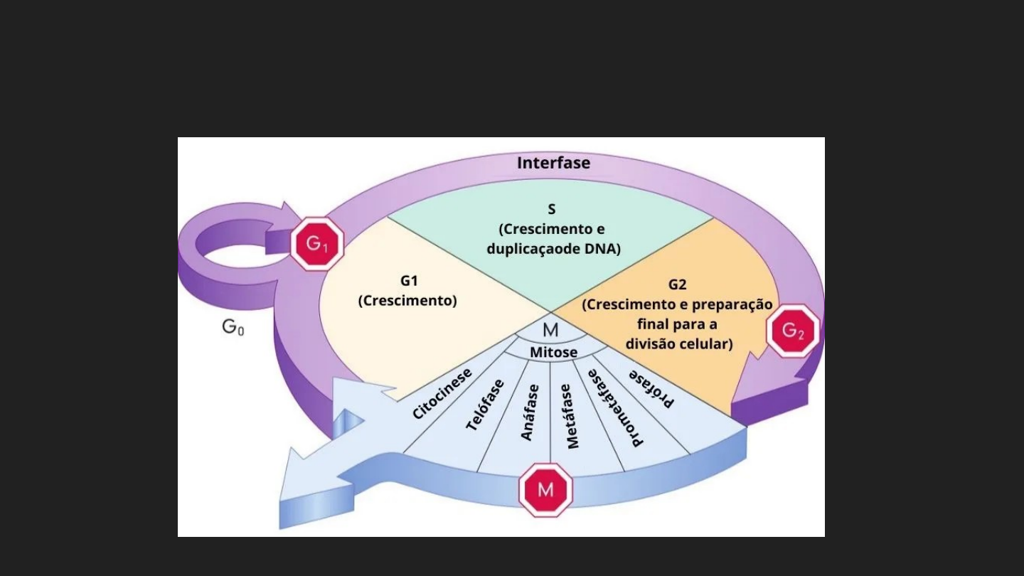 <p>Ciclo Celular</p><p>https://www.biologianet.com/biologia-celular/ciclo-celular.htm</p><p>Ciclo celular</p><p>. Ocorre desde o nascimento</p><p>até sua divisão celular</p><p>. Cresce, Multiplica, divide</p><p>. Varia dependendo da célula</p><p>https://acesse.one/s4eUP</p><p>Fases do ciclo celular</p><p>1- Interfase</p><p>Fase mais longa do ciclo celular</p><p>intensa atividade metabólica</p><p>Dividida em 3 etapas ( G1, S e G2)</p><p>G1 ( Crescimento )</p><p>. Ocorre logo após a mitose</p><p>. Síntese de proteínas e RNA</p><p>. Pode gerar fase G0</p><p>S ( Síntese )</p><p>.Divisão do material genético</p><p>( Duplicação do DNA )</p><p>G2 ( Crescimento final )</p><p>. Sintese de proteinas (tubulina)</p><p>. Checagem de crescimento e proteínas</p><p>Mitose</p><p>Crescimento do organismo e substituição de células mortas</p><p>Formação de duas células-filhas idênticas à célula parental (Clones)</p><p>É dividida em cinco etapas: prófase, prometáfase, metáfase, anáfase e telófase.</p><p>Prófase: Cromossomos duplicados como cromátides irmãs unidas pelo centrômero.</p><p>Prometáfase: Centrossomos deslocam-se para os “cantos” da célula, Núcleo começa a se fragmentar.</p><p>Metáfase: Cromossomos se posicionam no plano equatorial da célula.</p><p>Anáfase: as cromátides irmãs se separam e deslocam-se para as extremidades opostas.</p><p>Telófase: Os nucléolos reaparecem; os microtúbulos do fuso desaparecem; e os cromossomos tornam-se menos condensados.</p><p>Meiose</p><p>Sistema de reprodução mais comum dos organismos</p><p>Quatro células filhas geneticamente diferentes</p><p>Possui duas fases de separação (meiose I e meiose II)</p><p>Há a recombinação genética (crossing-over) aumentando a variabilidade</p><p>Número de cromossomos reduzidos pela metade</p><p>Prófase da meiose I mais complexa.</p><p>Leptóteno: condensação dos cromossomos já duplicados e ligados (irmãs)</p><p>Zigóteno: Pareamento e alinhamento dos cromossomos</p><p>Paquíteno: Permuta genética (crossing over)</p><p>Diplóteno: Início da separação dos cromossomos homólogos</p><p>Diacinese: Separação completa dos cromossomos e fragmentação nuclear</p><p>https://www.youtube.com/watch?v=F3mjDCCW_cU</p><p>Erros na mitose e no ciclo celular</p><p>Apesar dos controles ainda podem ocorrer erros e estes perpetuar as células filhas, perpetuando a geração de células imperfeitas.</p><p>Mesmo o organismo possuindo diversos sistemas de reparo, às vezes esses sistemas não são suficientes, então a célula pode ser direcionada para a apoptose, um processo de morte celular programada.</p><p>Quando o próprio sistema de reparo apresenta falhas, as células defeituosas podem se multiplicar de forma desordenada, ignorando as demandas do organismo e crescendo sem respeitar os limites espaciais com as células adjacentes. Isso pode resultar na formação de uma massa de células chamada de tumor. O tumor pode ser benigno ou maligno.</p><p>Exercícios</p><p>image3.png</p><p>image5.png</p><p>image11.gif</p><p>image1.png</p><p>image7.png</p><p>image9.png</p><p>image4.png</p><p>image6.png</p><p>image2.png</p><p>image8.png</p><p>image10.png</p>