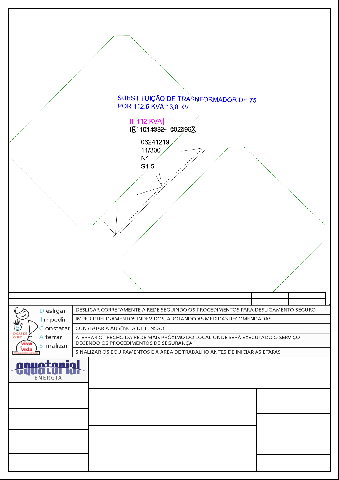 <p>: =e</p><p>c</p><p>c</p><p>c</p><p>(</p><p>(</p><p>(</p><p>(</p><p>(</p><p>(</p><p>(</p><p>!</p><p>!</p><p>!</p><p>IPORA</p><p>IPORA</p><p>Revisão N. Descrição Autor Data</p><p>Equatorial Energia Goiás</p><p>Equatorial Energia Goiás</p><p>Projetista:</p><p>IGOR DIAS</p><p>Aprovação:</p><p>Data:</p><p>17/10/2024</p><p>Escala:</p><p>1:1000</p><p>Descrição da Obra:</p><p>SUBSTITUIÇÃO DE TRANSFORMADOR</p><p>DANIFICADO UM DE 75 POR 112,5KVA 13,8KV</p><p>Interessado:</p><p>EQUATORIAL GOIAS ENERGIA</p><p>Cidade/Local:</p><p>IPORÁ</p><p>AVENIDA ADEMAR FERRUGEM</p><p>Referência:</p><p>94100-10-2024</p><p>Projeto Nº:</p><p>8299635</p><p>Folha:</p><p>002</p>