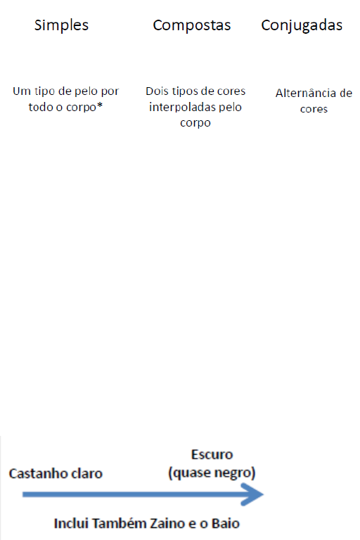 <p>Pelagem e Suas Particularidades</p><p>Cor dos pelos dos cavalos caracterizada pelo seu aspecto visual;</p><p>São mais de 2500 nomenclaturas para determinar pelagem.</p><p>*Exceto: crina, cauda e extremidades.</p><p>Pelagem – Alazão</p><p>Cor única;</p><p>Membros não possuem cor preta;</p><p>No geral, crina e cauda da mesma cor ou mais claro que o corpo;</p><p>Curiosidade:</p><p>Combinação de genes recessivos logo: Alazão vs Alazão – F1 = Alazão.</p><p>Variações:</p><p>-Alazão Tostado;</p><p>-Alazão Amarilho (Palomino);</p><p>-Alazão Amarilho (Sopa de Leite);</p><p>Curiosidade:</p><p>Variações possuem nomenclaturas fortemente marcadas por regionalismo.</p><p>Pelagem – Castanho</p><p>Cor única;</p><p>Membros possuem cor preta;</p><p>Crina e cauda possuem cor preta;</p><p>Pelagem – Variações de Baio</p><p>Pelagem – Preto</p><p>Cor única na cor preta;</p><p>Pelagem – Tordilho</p><p>Pelagem Composta (dois tipos de pelo no corpo do animal);</p><p>Pelos pretos e brancos interpolados;</p><p>Curiosidade:</p><p>Ao envelhecer o animal tende a ficar totalmente branco;</p><p>Obrigatoriamente é filho de um tordilho;</p><p>Pelagem – Rosilho</p><p>Pelagem composta (dois tipos de pelo no corpo do animal);</p><p>Pelos vermelhos e brancos interpolados;</p><p>Curiosidade:</p><p>Deve possuir pais ou avós com esta pelagem;</p><p>Pelagem – Lobuno</p><p>Pelagem Composta (dois tipos de pelo no corpo do animal);</p><p>Pelos marrons e pretos interpolados;</p><p>Curiosidade:</p><p>Mais comum em crioulo e campolina. Pode ocorrer também no mangalarga.</p><p>Pelagem – Pampa</p><p>Pelagem conjugada (dois tipos de pelo no corpo do animal);</p><p>Cores escuras formam uma malha sobre fundo branco;</p><p>Curiosidade:</p><p>Devem possuir pais ou avós com esta pelagem;</p><p>Particularidades:</p><p>Preto pampa – mais de 50% do corpo preto com manchas brancas.</p><p>Pampa de preto – mais de 50% do corpo branco com manchas da cor.</p><p>Dica: a predominante vem na frente do nome.</p><p>Castanho Pampa – mais de 50% do corpo castanho com manchas brancas.</p><p>Pampa de Castanho – mais de 50% do corpo branco com manchas de cor.</p><p>Tordilho Pampa</p><p>Dica: vai confundir com o tordilho ruço no futuro.</p><p>image1.png</p><p>image2.png</p>