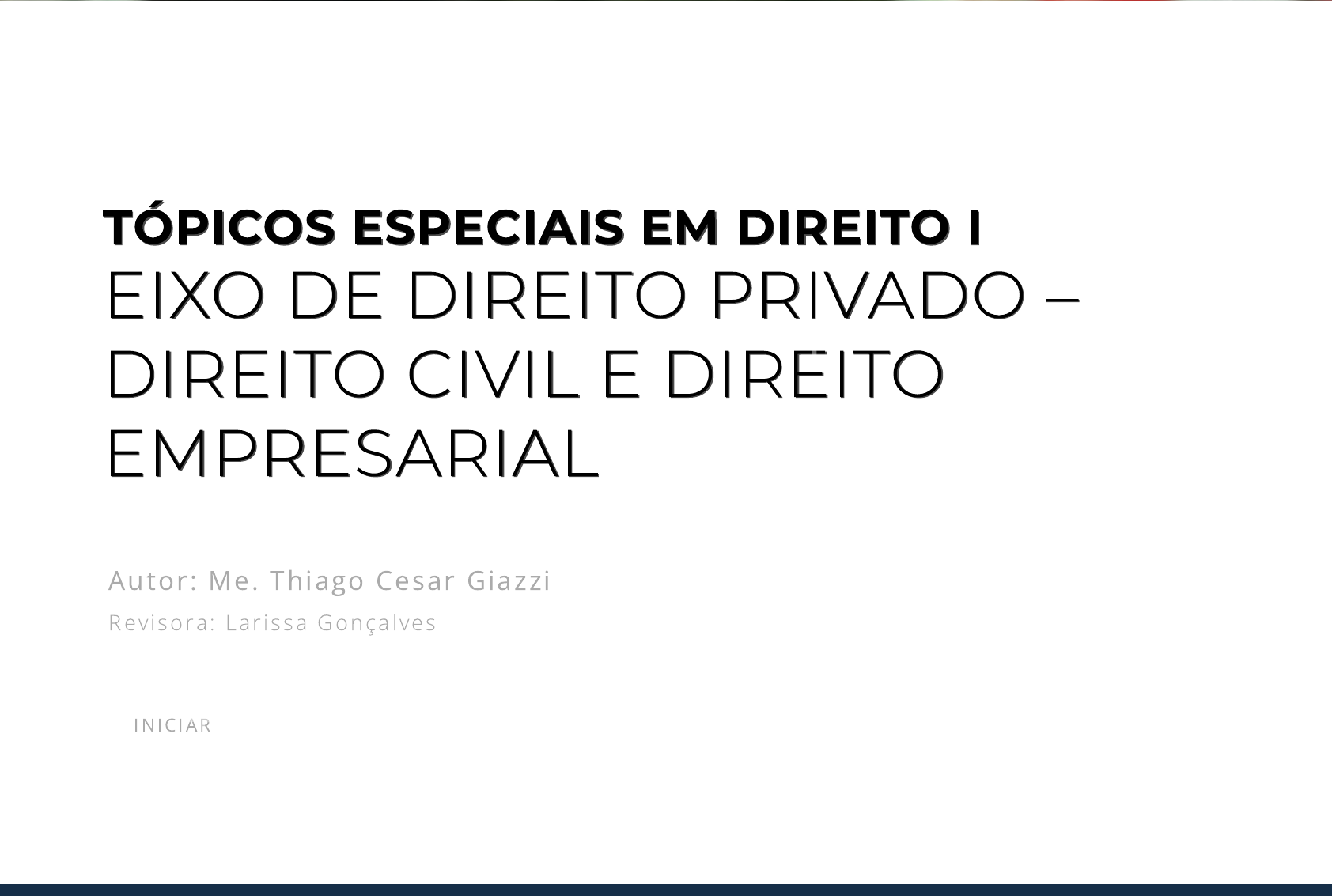 <p>TÓPICOS ESPECIAIS EM DIREITO ITÓPICOS ESPECIAIS EM DIREITO I</p><p>EIXO DE DIREITO PRIVADO –EIXO DE DIREITO PRIVADO –</p><p>DIREITO CIVIL E DIREITODIREITO CIVIL E DIREITO</p><p>EMPRESARIALEMPRESARIAL</p><p>Autor: Me. Thiago Cesar Giazzi</p><p>Revisora : Lar issa Gonçalves</p><p>IN IC IAR</p><p>Introdução</p><p>Nesta unidade, será tratado o conteúdo sobre as principais disciplinas do Direito Privado: Direito</p><p>Civil e Direito Empresarial. Abordaremos os temas conforme o recorte temático apontado pelos</p><p>exames da OAB, dando ênfase aos conteúdos cobrados de forma mais reincidente. Possibilita-se</p><p>uma macro revisão sobre todo o conteúdo de Direito Civil estudado na graduação, tais como a teoria</p><p>geral, a teoria das pessoas e bens, a teoria contratual, os negócios jurídicos, a responsabilidade civil,</p><p>o direito das famílias e o direito de sucessões. De semelhante modo, apresenta-se o conteúdo de</p><p>Direito Empresarial, tratando da teoria da empresa, do direito cambiário e da recuperação e falência</p><p>das empresas.</p><p>introdução</p><p>O Direito Civil é o ramo do Direito próprio para regulamentar, prever e tutelar os direitos inerentes</p><p>às atividades da vida privada, desde o momento do nascimento (estendendo as expectativas ao</p><p>nascituro), passando pelas aquisições de obrigações e deveres e encerrando com a morte. Neste</p><p>momento, com recorte para preparação e revisão dos assuntos que mais caem no exame da Ordem</p><p>dos Advogados, serão abordadas as disposições sobre as pessoas, suas obrigações e contratos e a</p><p>responsabilidade pelo descumprimento.</p><p>Teoria Geral do Direito Civil</p><p>Direito Civil – 1ª ParteDireito Civil – 1ª Parte</p><p>Tem-se o Código Civil, Lei nº 10.406/2002, como principal diploma normativo para tratamento dos</p><p>assuntos ligados à vida privada dos sujeitos. Ele estipula regras e princípios sobre os fatos jurídicos</p><p>ocorridos com pessoas naturais e jurídicas, bens e coisas, negócios jurídicos, contratos,</p><p>descumprimento dos contratos, realização de atos ilícitos (responsabilidade civil), fatos jurídicos das</p><p>famílias e direito de sucessões. Assim, tutela a vida humana privada desde o nascimento até as</p><p>consequências ocorridas após a morte.</p><p>Pessoas Naturais e Capacidade (Arts. 1º a 5º, CC)</p><p>As pessoas humanas, também chamadas, pelo Direito, de pessoas naturais , são o centro da</p><p>proteção jurídica e os principais atores de transformação da realidade, em razão de sua capacidade</p><p>de manifestação de vontade. Sendo assim, quando se adquire personalidade, torna-se uma pessoa</p><p>para o mundo jurídico, possuindo capacidade para ser sujeito de direitos. Em que pese a vida</p><p>intrauterina ter natureza humana, exclui-se da capacidade de ser sujeito de direito quando, no</p><p>momento do nascimento, não houver respiração (natimorto). Da mesma forma, enquanto em</p><p>estado de nascituro (vida intrauterina), �cam resguardados os direitos, aguardando o nascimento</p><p>com vida, quando receberá a personalidade.</p><p>Quadro 1.1 - Cronologia de capacidade de direito e capacidade plena</p><p>Fonte: Elaborado pelo autor.</p><p>#PraCegoVer : o quadro tem quatro colunas, sendo nomeada a primeira como “antes do</p><p>nascimento”, a segunda como “momento do nascimento”, a terceira “efeito jurídico” e a quarta</p><p>Antes do parto</p><p>(nascimento)</p><p>Momento do parto</p><p>(nascimento)</p><p>Efeito jurídico</p><p>Exercício de</p><p>capacidade plena</p><p>Nascituro:</p><p>expectativa de</p><p>direitos. Direitos</p><p>resguardados.</p><p>Respirou – nasceu</p><p>com vida.</p><p>Adquire capacidade</p><p>de Direito – recebe</p><p>os direitos do</p><p>nascituro que</p><p>estavam</p><p>resguardados.</p><p>Quando completar a</p><p>maioridade ou for</p><p>emancipado.</p><p>Antes dos 16 anos ou</p><p>sobrevindo alguma</p><p>causa prevista em lei</p><p>será plenamente</p><p>incapaz.</p><p>Não houve</p><p>in�amento dos</p><p>pulmões – não</p><p>respirou –</p><p>natimorto.</p><p>Não adquire</p><p>capacidade de</p><p>Direito – os direitos</p><p>do nascituro não se</p><p>efetivam, eram</p><p>apenas expectativas.</p><p>-</p><p>“exercício de capacidade plena”. Dessa forma, demonstra, nas três primeiras colunas, que,</p><p>antes do nascimento, o nascituro possui expectativas de direitos e seus direitos devem ser</p><p>resguardados para quando nascer com vida. Na segunda coluna, demonstra que, se nasceu</p><p>com vida, ou seja, se respirou após o parto, vai adquirir a capacidade de direito, recebendo os</p><p>direitos que estavam resguardados. Se nasceu sem vida, não adquiriu capacidade de direito,</p><p>portanto, não recebeu direitos civis. Na quarta coluna, explica-se que o sujeito que nasceu com</p><p>vida somente terá capacidade plena, ou seja, a de direito e a de fato juntas, após maioridade ou</p><p>emancipação.</p><p>A capacidade de direito é o nome dado à potencialidade de exercício da personalidade jurídica (ser</p><p>reconhecido pelo Direito como uma pessoa), entretanto, o sujeito de capacidade de direito pode não</p><p>possuir capacidade de exercício, não possuir capacidade de fato para exercer os atos da vida civil.</p><p>Quem possui tanto capacidade de direito quanto capacidade de fato possui capacidade plena</p><p>(plenamente capaz). Quem não é plenamente capaz é considerado relativamente incapaz ou</p><p>absolutamente incapaz (TARTUCE, 2020).</p><p>Por sua vez, a incapacidade é a restrição legal ao exercício dos atos da vida civil. Pode ser absoluta</p><p>ou relativa. A matéria sofreu profunda modi�cação com a Lei nº 13.146/15 (Estatuto da Pessoa com</p><p>De�ciência), que excluiu dos casos de incapacidade as pessoas com privação parcial ou total de</p><p>discernimento ou sem desenvolvimento mental completo.</p><p>A incapacidade 