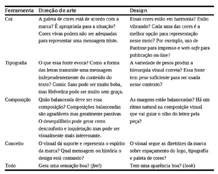 <p>Direção de arte e Desing gráfico</p><p>Fotografia, ilustração, tipografia, design, animação, motion, vídeo.</p><p>•O que é design gráfico?</p><p>Área de atuação na qual se trabalha com a comunicação visual, buscando soluções</p><p>estéticas e funcionais, aplicadas em peças gráficas.</p><p>O principal papel do design é a identificação: dizer o que é alguma coisa, ou de onde</p><p>ela veio.</p><p>Sua segunda função é fornecer informações e instrução, indicando a relação de uma</p><p>coisa com outra quanto à direção, posição e escala.</p><p>O seu terceiro uso consiste em apresentação e promoção, o design busca chamar a</p><p>atenção e tornar sua mensagem fácil de lembrar.</p><p>•Publicidade X design</p><p>Pub: interação/mensagem, criatividade visual em geral, estratégia e comunicação.</p><p>Design: criatividade gráfica, visual e forma.</p><p>•Direção de arte X design</p><p>Seja qual for a intenção ou a mensagem, diretores de arte ou criativos não transmite</p><p>ideias sem uma boa organização da firma, em outras palavras, sem uma boa</p><p>comunicação visual, o que toca o design. É cada vez mais urgente a direção de arte</p><p>não restringir seu foco ao aspecto visual, contemplando a integridade e visão global</p><p>de um projeto criativo.</p><p>→A comunicação visual é uma das bases fundamentais do trabalho do diretor de arte</p><p>É questionável se, diante do cenário tão fluido do meio digital, essas distinções entre</p><p>áreas permanecerão relevantes. Cada vez mais o perfil do diretor de arte se aproxima</p><p>daquele do diretor criativo, pois ele precisa compreender os modos de exposição e</p><p>composição do espetáculo no ambiente digital.</p><p>►Fundamentos do design</p><p>1. Linha</p><p>As linhas guiam o olhar e ajudam a estruturar o design. Podem ser retas, curvas ou</p><p>diagonais e influenciam o dinamismo e o movimento visual de uma peça.</p><p>2. Forma</p><p>Formas geométricas ou orgânicas são usadas para criar figuras e áreas de interesse. Elas</p><p>definem o espaço e podem evocar diferentes emoções e percepções.</p><p>3. Cor</p><p>A cor afeta o humor e o tom da peça. O uso adequado da teoria das cores (combinação</p><p>de cores complementares, análogas, etc.) é crucial para a criação de harmonia e</p><p>contraste.</p><p>4. Espaço (Negativo e Positivo)</p><p>Refere-se ao espaço ocupado pelos elementos (positivo) e o espaço vazio ao redor</p><p>deles (negativo). O espaço negativo é fundamental para equilibrar a composição e</p><p>evitar sobrecarga visual.</p><p>5. Textura</p><p>Textura se refere à qualidade de superfície de um elemento, podendo ser física (tátil)</p><p>ou visual (ilusória). A textura pode adicionar profundidade, riqueza e interesse à</p><p>composição.</p><p>6. Tipografia</p><p>O design tipográfico envolve a escolha e o uso das fontes, tamanhos, espaçamentos e</p><p>alinhamentos. A tipografia deve ser legível e adequada ao contexto, transmitindo a</p><p>mensagem de forma eficaz.</p><p>►Princípios de design</p><p>1.Contraste</p><p>Praticamente nos obriga a prestar atenção. Para se fazer o contraste, os elementos</p><p>devem ser diferentes. O propósito básico do contraste é duplo: criar interesse sobre</p><p>uma página e organizar informações. Podemos criar contraste com: cores; espessura</p><p>de linha; forma e direção.</p><p>Difere um elemento do outro, muito utilizado para direcionar o olhar do usuário, tem</p><p>um grande efeito sobre a legibilidade.</p><p>2.Alinhamento</p><p>Organização de elementos similares, todo elemento deve se alinhar ou relacionar com</p><p>outro elemento. O alinhamento confere ordem e sentido ao trabalho.</p><p>As linhas imaginárias criam conexões visuais e geram equilíbrio.</p><p>3.Proximidade</p><p>Se os itens estiverem relacionados entre si, agrupe-os em proximidade. Separe-os, se</p><p>eles não tiverem diretamente ligados. Varie o espaço entre os itens para indicar</p><p>proximidade.</p><p>Trabalha em conjunto com o alinhamento, relação entre elementos próximos,</p><p>diferença quando estão afastados.</p><p>Aproximar elementos que não tem nenhum tipo de relação pode confundir o usuário.</p><p>4.Repetição</p><p>Cria consistência e reforça a identidade visual, enquanto padrões podem ser usados</p><p>para dar textura e interesse, reconhecimento e categorização.</p><p>Deve ser considerada tanto para elementos gráficos, como para tipografia, uso</p><p>repetitivo de fontes ou mesmo cores.</p><p>→Resumindo: para criar um layout adequado, devemos trabalhar os contastes,</p><p>aproximar e agrupar elementos, alinhar objetos e explorar as repetições para gerar</p><p>identidade</p><p>►Princípios de gestalt</p><p>→Semelhança:</p><p>São percebidos juntos elementos mais similares e separados os menos similares. Pode</p><p>ser alcançada de formas variadas: tamanho, cor, textura e forma.</p><p>Através da lei da semelhança, é possível obter o efeito da anomalia (ou segregação):</p><p>quando um elemento diferente é encontrado dentro de um grupo de elementos</p><p>semelhantes.</p><p>→Continuidade</p><p>Elementos podem guiar o olhar do espectador.</p><p>Linha de leitura de um texto. No brasil, lê-se da esquerda para direita, de cima para</p><p>baixo.</p><p>Elementos diferentes são usados para direcionar o olhar. Mais óbvios: setas e dedos</p><p>apontando. Mais sutis: direção do olhar, caminhos, linhas de perspectiva.</p><p>→Fechamento</p><p>A mente fecha, ou seja, completa as partes que faltam no objeto.</p><p>Tendência a ignorar buracos e completar as linhas</p><p>Imagina-se a continuidade da estrutura, seguindo uma ordem espacial lógica.</p><p>→Proximidade</p><p>São percebidos como grupo os elementos próximos entre si; quando separados, são</p><p>percebidos individualmente.</p><p>Relações de proximidade geralmente dominarão sobre relações de semel