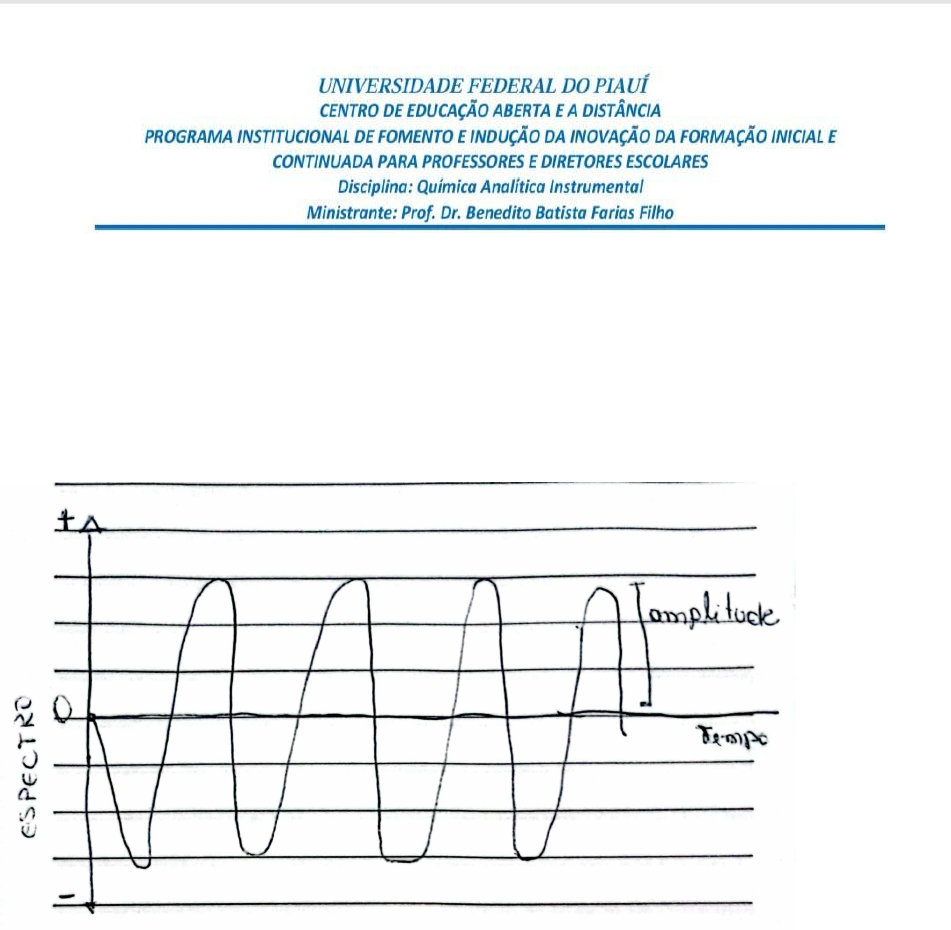 <p>Aluna: Ana Carla Rodrigues Barbosa</p><p>Curso: Quimica/PRIL</p><p>RESPOSTAS</p><p>1.</p><p>2.</p><p>A espectrofotometria de absorção molecular na região do visível utiliza diversos componentes</p><p>para medir a absorção de luz por substâncias em solução, especialmente entre 400 e 700 nm</p><p>(luz visível). Os principais componentes e suas funções são:</p><p>Fonte de luz: Emite luz na faixa de comprimento de onda do visível.</p><p>Monocromador: Seleciona um comprimento de onda específico da luz emitida pela fonte.</p><p>Pode ser um prisma ou uma grade de difração, que dispersa a luz em seus comprimentos de</p><p>onda individuais, permitindo que apenas uma faixa estreita atinja a amostra.</p><p>Fenda de entrada e saída: Controlam a quantidade de luz que entra no monocromador e a</p><p>que sai em direção à amostra, garantindo que apenas o feixe selecionado atinja a solução.</p><p>Cubeta: É o recipiente onde se coloca a amostra líquida. Normalmente, é feita de vidro ou</p><p>quartzo, e suas paredes são transparentes para permitir a passagem do feixe de luz através da</p><p>solução.</p><p>Aluna: Ana Carla Rodrigues Barbosa</p><p>Curso: Quimica/PRIL</p><p>Detector: Mede a intensidade da luz que atravessa a amostra e a converte em um sinal</p><p>elétrico. Os detectores mais comuns são os fotodiodos ou fotomultiplicadores, que detectam a</p><p>luz residual que não foi absorvida.</p><p>Sistema de leitura e processamento: Interpreta o sinal do detector e o transforma em dados,</p><p>geralmente exibidos como absorvância. Essa informação é usada para determinar a</p><p>concentração da substância na solução com base na lei de Beer-Lambert.</p><p>3.</p><p>A lei de Beer afirma que há uma relação entre a transmissão e a concentração de um objeto de</p><p>estudo quando este recebe uma faixa de radiação. No entanto, ela pode sofrer alguns desvios:</p><p>Desvio real → Limitações da aplicação da lei de Beer, ocasionado pela concentração de</p><p>matéria absorvente ou centros absorventes de energia, pois uma solução muito concentrada</p><p>causa interação eletrostática. Para solucionar esse problema seria necessário utilizar soluções</p><p>diluídas.</p><p>Desvio Químico → É devido a reações paralelas que ocorrem com o analito formando</p><p>complexos que interferem na determinação da absorção.</p><p>Desvio instrumental → Uso de uma radiação policromática; absortividade molar diferente</p><p>para dois comprimentos de onda; radiação perdida no material do equipamento ou do</p><p>ambiente que foi parar no detector. Para resolver esses problemas deve-se mudar abertura de</p><p>fenda; realizar varredura espectral; fazer medidas de branco em um ambiente que não</p><p>apresente alta iluminação, respectivamente.</p><p>4.</p><p>CI . VF . = CF . VF</p><p>5,94 mg/L . 5x10-3 L = CF .</p><p>50x10-3</p><p>CF= 0,594 mg/L</p><p>M= 0,594x10-3 / 55,85</p><p>g/mol</p><p>M= 1,063x10-5 g/mol</p><p>A= 7,00 x 103 cm-1mol-1 x</p><p>2,50cm . 1,063x10-5 mol/L</p><p>A= 0,186</p><p>Aluna: Ana Carla Rodrigues Barbosa</p><p>Curso: Quimica/PRIL</p><p>5.</p><p>A= 7,00X103 Lcm-1 x 1,0 cm x 3,75x10-5 mol</p><p>A= 0,2625</p><p>6.</p><p>Moléculas apresentam vários níveis de energia vibracional (Ev) e rotacional (Er), os quais são</p><p>pouco espaçados. Quando há uma absorção da radiação esses níveis de energia "sobrepõem"</p><p>aos níveis eletrônicos (Ee), e assim o instrumento traça um espectro sobre todo o padrão.</p>