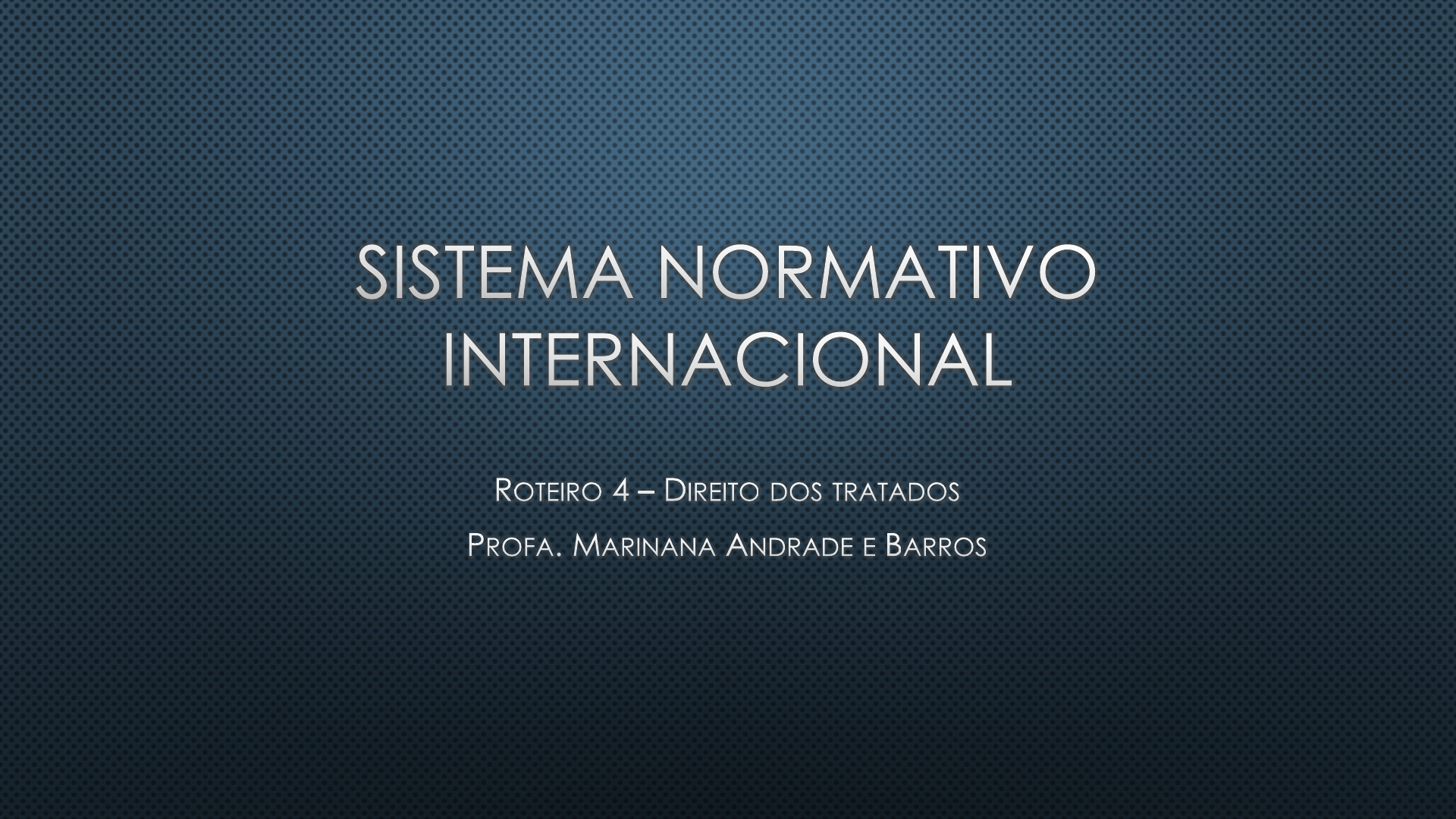 <p>• TERMINOLOGIA DOS TRATADOS</p><p>• ESTRUTURA DOS TRATADOS</p><p>. TÍTULO</p><p>. PREÂMBULO</p><p>. PARTE DISPOSITIVA</p><p>. FINAL</p><p>• CLASSIFICAÇÃO DOS TRATADOS</p><p>. QUANTO AO NÚMERO DE PARTES</p><p>. QUANTO À POSSIBILIDADE DE ADESÃO</p><p>. QUANTO À EXECUÇÃO NO TEMPO</p><p>Convenção de</p><p>Viena sobre</p><p>Direito dos</p><p>Tratados de 1969</p><p>Convenção de</p><p>Viena sobre</p><p>Direito dos</p><p>Tratados de 1986</p><p>Legislação e</p><p>jurisprudência</p><p>doméstica</p><p>Fonte: Mazzuoli, 2010</p><p>PROCESSO DE FORMAÇÃO DOS TRATADOS</p><p>Grande evento (tratados</p><p>multilaterais)</p><p>Tradução</p><p>Figura do depositário</p><p>Panorama das notificações</p><p>Art. 6º da convenção de Viena</p><p>de 1969 - Todo Estado tem</p><p>capacidade para concluir</p><p>tratados.</p><p>Art. 6º da Convenção de Viena</p><p>sobre direito dos tratados de</p><p>1986 - A capacidade de uma</p><p>organização internacional para</p><p>concluir tratados é regida pelas</p><p>regras da organização.</p><p>• ART. 2º - 1. PARA OS FINS DA PRESENTE</p><p>CONVENÇÃO: C)“PLENOS PODERES”</p><p>SIGNIFICA UM DOCUMENTO EXPEDIDO PELA</p><p>AUTORIDADE COMPETENTE DE UM ESTADO E</p><p>PELO QUAL SÃO DESIGNADAS UMA OU VÁRIAS</p><p>PESSOAS PARA REPRESENTAR O ESTADO NA</p><p>NEGOCIAÇÃO, ADOÇÃO OU AUTENTICAÇÃO</p><p>DO TEXTO DE UM TRATADO, PARA MANIFESTAR</p><p>O CONSENTIMENTO DO ESTADO EM OBRIGAR-</p><p>SE POR UM TRATADO OU PARA PRATICAR</p><p>QUALQUER OUTRO ATO RELATIVO A UM</p><p>TRATADO;</p><p>* DISPOSITIVOS DA CONVENÇÃO DE VIENA</p><p>SOBRE DIREITO DOS TRATADOS DE 1969</p><p>ART. 6º - 1. UMA PESSOA É CONSIDERADA REPRESENTANTE DE UM ESTADO</p><p>PARA A ADOÇÃO OU AUTENTICAÇÃO DO TEXTO DE UM TRATADO OU PARA</p><p>EXPRESSAR O CONSENTIMENTO DO ESTADO EM OBRIGAR-SE POR UM</p><p>TRATADO SE:</p><p>A)APRESENTAR PLENOS PODERES APROPRIADOS; OU</p><p>B)A PRÁTICA DOS ESTADOS INTERESSADOS OU OUTRAS CIRCUNSTÂNCIAS</p><p>INDICAREM QUE A INTENÇÃO DO ESTADO ERA CONSIDERAR ESSA PESSOA</p><p>SEU REPRESENTANTE PARA ESSES FINS E DISPENSAR OS PLENOS PODERES.</p><p>2. EM VIRTUDE DE SUAS FUNÇÕES E INDEPENDENTEMENTE DA</p><p>APRESENTAÇÃO DE PLENOS PODERES, SÃO CONSIDERADOS</p><p>REPRESENTANTES DO SEU ESTADO:</p><p>A)OS CHEFES DE ESTADO, OS CHEFES DE GOVERNO E OS MINISTROS DAS</p><p>RELAÇÕES EXTERIORES, PARA A REALIZAÇÃO DE TODOS OS ATOS</p><p>RELATIVOS À CONCLUSÃO DE UM TRATADO;</p><p>B)OS CHEFES DE MISSÃO DIPLOMÁTICA, PARA A ADOÇÃO DO TEXTO DE</p><p>UM TRATADO ENTRE O ESTADO ACREDITANTE E O ESTADO JUNTO AO QUAL</p><p>ESTÃO ACREDITADOS;</p><p>C)OS REPRESENTANTES ACREDITADOS PELOS ESTADOS PERANTE UMA</p><p>CONFERÊNCIA OU ORGANIZAÇÃO INTERNACIONAL OU UM DE SEUS</p><p>ÓRGÃOS, PARA A ADOÇÃO DO TEXTO DE UM TRATADO EM TAL</p><p>CONFERÊNCIA, ORGANIZAÇÃO OU ÓRGÃO.</p><p>Baseado em pré-projetos</p><p>Existe prazo para</p><p>negociação</p><p>Votação para aprovar o</p><p>que foi negociado</p><p>Quórum de 2/3 para</p><p>aprovação conforme art. 9o</p><p>da Convenção de Viena</p><p>Estados assinam para dar autenticidade</p><p>ao texto</p><p>Não traz ao país a obrigação de se filiar</p><p>A ação em desconformidade com o</p><p>objeto deve ser evitada</p><p>APROVAÇÃO PARLAMENTAR</p><p>CADA PAÍS</p><p>ENTREGARÁ O</p><p>TEXTO AO</p><p>PARLAMENTO</p><p>DE SEU ESTADO</p><p>DEVERÁ</p><p>COMPARAR A</p><p>LEGISLAÇÃO</p><p>ATUAL</p><p>SE REJEITADA</p><p>NÃO PODERÁ</p><p>ENTRAR EM</p><p>VIGOR</p><p>ARTIGO 49,I</p><p>DA</p><p>CONSTITUIÇÃO</p><p>FEDERAL DE</p><p>1988</p><p>CONSTITUIÇÃO FEDERAL DE 1988</p><p>Art. 49. É da competência exclusiva do Congresso Nacional:</p><p>I - resolver definitivamente sobre tratados, acordos ou atos internacionais que acarretem encargos ou</p><p>compromissos gravosos ao patrimônio nacional;</p><p>ACORDO EM FORMA SIMPLIFICADA</p><p>DISPENSA</p><p>APROVAÇÃO</p><p>PARLAMENTAR</p><p>TRATADO DE</p><p>DIREITOS</p><p>HUMANOS</p><p>EMENDA 45 DA</p><p>CF/88</p><p>EM DUAS</p><p>CASAS, DOIS</p><p>TURNOS, 3/5</p><p>DOS VOTOS</p><p>TRATADOS</p><p>COMUMS</p><p>MAIORIA</p><p>SIMPLES</p><p>CONSTITUIÇÃO FEDERAL DE 1988</p><p>Art. 5º. § 3º Os tratados e convenções internacionais sobre direitos humanos que forem aprovados, em cada</p><p>Casa do Congresso Nacional, em dois turnos, por três quintos dos votos dos respectivos membros, serão</p><p>equivalentes às emendas constitucionais.</p><p>ART. 2º - B)“RATIFICAÇÃO”, “ACEITAÇÃO”,</p><p>“APROVAÇÃO” E “ADESÃO” SIGNIFICAM, CONFORME O</p><p>CASO, O ATO INTERNACIONAL ASSIM DENOMINADO PELO</p><p>QUAL UM ESTADO ESTABELECE NO PLANO INTERNACIONAL</p><p>O SEU CONSENTIMENTO EM OBRIGAR-SE POR UM TRATADO;</p><p>Ato discricionário do Chefe de Estado/Chefe de</p><p>Governo</p><p>Ato internacional</p><p>Irretratável</p><p>Atos internos</p><p>Realizado pelo</p><p>Chefe de</p><p>Estado/Governo</p><p>Publicação do</p><p>texto (no Brasil,</p><p>DOU)</p><p>Promulgação</p><p>por Decreto</p><p>Executivo</p><p>ART. 80 - 1 - APÓS A SUA ENTRADA EM VIGOR, OS</p><p>TRATADOS SÃO TRANSMITIDOS AO SECRETARIADO</p><p>DA ORGANIZAÇÃO DAS NAÇÕES UNIDAS PARA</p><p>EFEITOS DE REGISTRO OU ARQUIVO E INSCRIÇÃO,</p><p>CONFORME O CASO, BEM COMO PARA</p><p>PUBLICAÇÃO.</p><p>Tratados devem ser registrados e publicados pelo SG da ONU</p><p>Art. 102, §1 da Carta da ONU</p><p>Impossibilidade de invocar-se disposição de tratado não-</p><p>registrado em órgão da ONU</p><p>Busca eliminar a existência de tratados secretos</p><p>• ART. 2 1. PARA OS FINS DA PRESENTE CONVENÇÃO: D)</p><p>“RESERVA” SIGNIFICA UMA DECLARAÇÃO UNILATERAL,</p><p>QUALQUER QUE SEJA A SUA REDAÇÃO OU DENOMINAÇÃO,</p><p>FEITA POR UM ESTADO AO ASSINAR, RATIFICAR, ACEITAR OU</p><p>APROVAR UM TRATADO, OU A ELE ADERIR, COM O OBJETIVO</p><p>DE EXCLUIR OU MODIFICAR O EFEITO JURÍDICO DE CERTAS</p><p>DISPOSIÇÕES DO TRATADO EM SUA APLICAÇÃO A ESSE</p><p>ESTADO;</p><p>* DISPOSITIVOS D