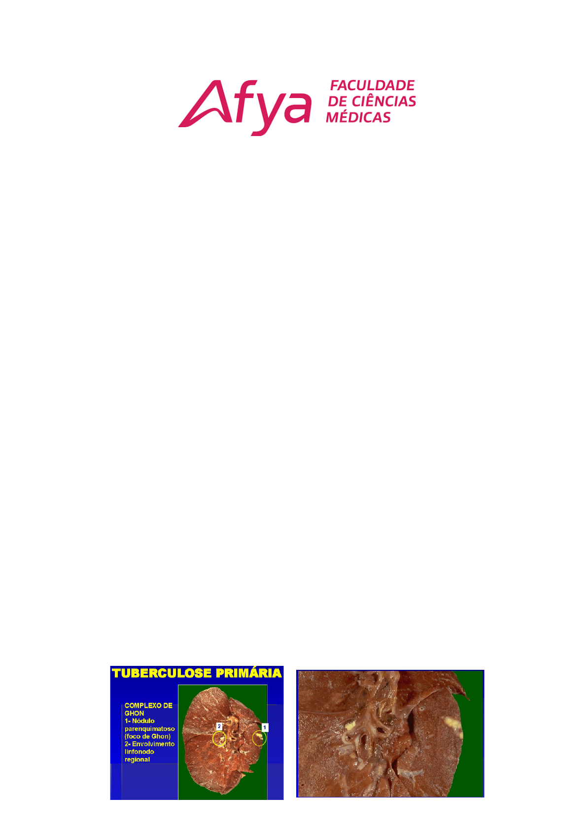 <p>FACULDADE DE CIÊNCIAS MÉDICAS DA PARAÍBA - FCM/AFYA</p><p>CURSO DE GRADUAÇÃO EMMEDICINA</p><p>SISTEMAS ORGÂNICOS INTEGRADOS III - SOI III</p><p>Laís de Araujo Cruz - 3º Período</p><p>O QUE É O COMPLEXO DE GHON? QUAL A IMPORTÂNCIA CLÍNICA DO MESMO?</p><p>A infecção pulmonar pelo M. tuberculosis ocorre quando os bacilos atingem com</p><p>sucesso uma via aérea terminal, resultando em um processo inflamatório pulmonar localizado</p><p>chamado de foco parenquimatoso (foco de Ghon). A partir desse foco, os bacilos se</p><p>disseminam através do sistema linfático local para os linfonodos regionais.</p><p>O complexo primário (ou complexo de Ghon) é caracterizado por linfangite</p><p>tuberculosa local e envolvimento de linfonodos regionais. Essa combinação é conhecida</p><p>como complexo primário. A partir dos linfonodos regionais, os bacilos entram na circulação</p><p>sistêmica diretamente ou via ducto linfático. Essa disseminação hematogênica oculta ocorre</p><p>antes que uma resposta imune adequada consiga prevenir o desenvolvimento da tuberculose</p><p>ativa. Após a disseminação, os bacilos podem sobreviver dentro dos órgãos-alvo por longos</p><p>períodos. O curso futuro da tuberculose ativa depende do equilíbrio dinâmico entre a</p><p>imunidade do hospedeiro e o patógeno.</p><p>Esse foco é pequeno e arredondado, periférico e de consistência amolecida,</p><p>com 1 a 2 mm de diâmetro. Na maioria dos casos, o centro desse foco sofre necrose</p><p>caseosa. Os bacilos da tuberculose, tanto livres como no interior de fagócitos, são</p><p>drenados para os nodos regionais, os quais também frequentemente</p><p>sofrem caseação. Essa combinação de lesão parenquimatosa pulmonar e envolvimento</p><p>nodal é referida como complexo de Ghon. o complexo de Ghon desenvolve fibrose</p><p>progressiva, frequentemente seguida de calcificação radiologicamente detectável</p><p>(complexo de Ranke), e, apesar da disseminação para outros órgãos, não são desenvolvidas</p><p>lesões.</p><p>Tal manifestação é importante para que seja possível diferenciar</p><p>a tuberculose e diagnosticar e tratar a mesma. Além disso, é possível utilizar</p><p>o complexo de Ghon nos achados radiológicos para um diagnóstico mais preciso.</p><p>REFERÊNCIAS</p><p>CARVALHO, A. C. C.; CARDOSO, C. A. A.; MARTIRE, T. M.; MIGLIORI, G. B.;</p><p>SANT’ANNA, C. C. Epidemiological aspects, clinical manifestations, and prevention of</p><p>pediatric tuberculosis from the perspective of the End TB Strategy. Jornal Brasileiro de</p><p>Pneumologia, v. 44, n. 2, p. 134–144, 2018. Disponível em:</p><p>https://doi.org/10.1590/S1806-37562017000000461. Acesso em: 22 set. 2024.</p><p>ABBAS, A. K.; FAUSTO, V.; FAUSTO, N. Robbins & Coltran – Patologia: bases</p><p>patológicas das doenças. 10. ed. Rio de Janeiro: Elsevier, 2013.</p><p>https://doi.org/10.1590/S1806-37562017000000461</p><p>https://doi.org/10.1590/S1806-37562017000000461</p>